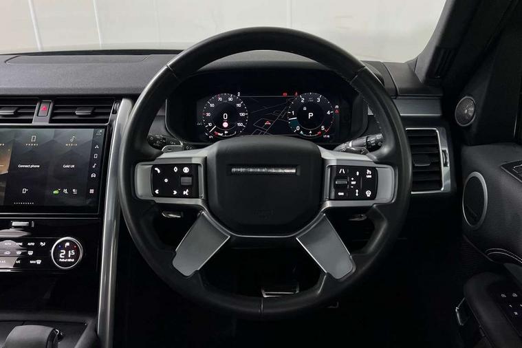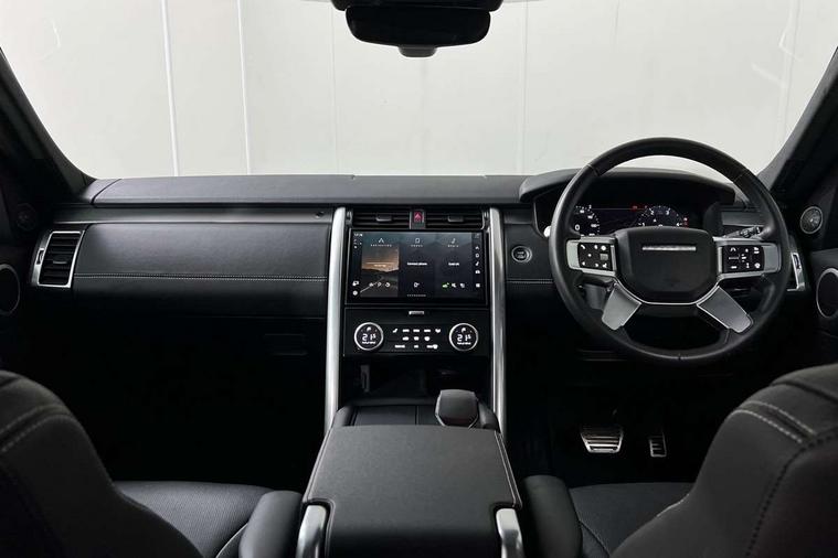 11.4" touchscreen, 3D surround camera, Adaptive cruise control, Android Auto, Apple car play, Blind spot assist, Driver condition monitor, Electric power assisted steering (EPAS), Emergency services call system, Front and rear parking aid, Interactive driver display, Lane keep assist, Power inner tailgate, Power tailgate/boot lid, Push button start, Rear collision monitor, Rear traffic monitor, Remote, Remote boot release, Service interval indicator, Speed proportional steering, Sportshift selector, Stop/start system, Traffic sign recognition with adaptive speed limiter, Trip computer, Wade Sensing, Adaptive dynamics, Dynamic stability control, Electronic air suspension, Front axle open differential, Digital Audio Broadcast radio-DAB, Dynamic volume control, Pivi pro connected, USB/aux input socket, Acoustic laminated windscreen, Animated directional indicators, Auto dimming interior rear view mirror, Auto high beam assist, Automatic headlight levelling, Automatic headlights, Body colour bumpers, Body colour door handles, Centre high mounted stop light, D300 badge, Electric heated/power fold memory door mirrors with approach lights and auto dimming driver side, Electric windows with one touch open/close and anti-trap, Heated rear window, Heated windscreen, LED darkend tail lights, LED headlights with signature DRL, Narvik black Discovery script, Privacy glass, Puddle lights, Rain sensing windscreen wipers, Rear fog lights, Rear side wing doors, Rear wash/wipe, Trailer stability assist, Variable intermittent wiper, 12V power sockets, 12V USB charging socket in loadspace, 18 way heated electric memory driver seats with captains armrest + manual height adjust headrest + 4way power lumbar support, 2 seat bench in 3rd row, 3 seat bench in 2nd row, Central hinged twin lidded storage, Ebony morzine headlining, Electric adjustable steering column, First and second row door bins, Footwell lights, Front and rear 12V with front USB, Front passenger seat isofix location point, In-facia storage, Isofix child seat preparation for front passenger seat, Loadspace cover, Loadspace Hook, Loadspace light, Lockable glovebox, Lower centre console storage, Luggage tie downs in loadspace, Multi function steering wheel, Overhead lighting console, Premium carpet mats, Premium non-leather steering wheel, Rear ISOFIX, Shopping bag hook, Single front passenger seat, Storage glovebox, Sunvisors with illuminated vanity mirrors, Third row storage, Treadplates with metal inserts, Twin front cupholders with cover, USB with 12V socket in centre console, Black exterior pack - Discovery Dynamic SE/HSE, Online pack with data plan - Discovery, 3x3 point rear seatbelts, Anti-lock braking system (ABS), Brake pre-fill technology, Cornering brake control, Curtain airbags, Customer configurable autolock, Driver and passenger airbags, EBD - Electronic brakeforce distribution, Electronic traction control, Emergency brake assist, Emergency braking, ESP, Front side airbags, Gradient acceleration control, Hill descent control, Hill launch assist, Power operated child locks, Rear airbags, Roll stability control, Seat belt reminder, Torque vectoring brake, Tyre pressure monitoring system, Immobiliser, Intrusion sensor, Keyless entry, Locking wheel nuts, Remote central locking, All terrain tyres,