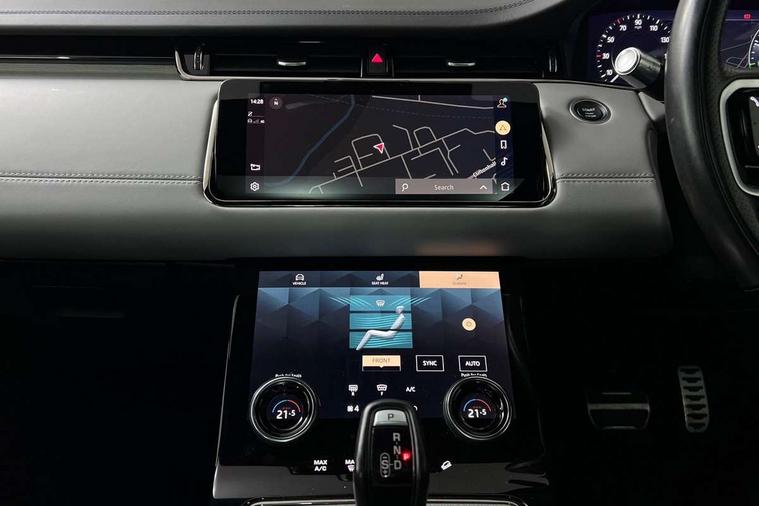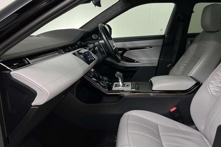 10" deployable touchscreen with lower touchscreen, Adaptive cruise control, Android Auto, Apple car play, Blind spot assist, Bluetooth connectivity, Brake pad wear indicator warning light, Clear exit monitor, Driver condition monitor, eCall emergency system, Electronic power assisted steering (EPAS), Front and rear parking aid, InControl remote, Land Rover InControl apps, Lane keep assist, Pivi pro connected includes upgraded infotainment, connected navigation pro, Nuance speech licence, Powered gesture tailgate/boot lid, Push button starter, Rear collision monitor, Rear traffic monitor, Traffic sign recognition with adaptive speed limiter, Voice control system, 7 kW onboard charger, All terrain progress control, Configurable dynamics, Electric rear axle drive, Home charging cable, Large fuel tank, Passive suspension, Public charging cable, Terrain Response 2 Auto, Digital Audio Broadcast radio-DAB, Meridian surround sound system with 650W subwoofer and 14 speakers, Steering wheel mounted controls, Auto headlights, Autobiography badge, Automatic headlight levelling, ClearSight interior rear view mirror, Electric windows with one touch open/close and anti trap, Evoque and R-Dynamic badge, Flush deployable exterior door handles, Heated rear window with timer, Heated washer jets, Heated windscreen, Matrix LED headlights with signature DRL, intelligent high beam assist, signature Hi-Line tail lights and animated directional indicators, Power fold, auto-dimming, heated door mirrors with approach lights and auto dimming driver side, R-Dynamic branding illuminated metal tread plates in loadspace and row 1 with brand name script and non illuminated metal in row 2, Rain sensing windscreen wipers, Rear fog lights, Rear side wing doors, Rear wiper, Tailgate spoiler, Third brake light, 14 way electric heated/cooled front and rear seats with driver memory, 2 way man headrest, electric 4 way lumbar support, bolsters + headrest adj, 40:20:40 split folding rear seats with centre headrest and armrest, Ambient interior lighting, Bright metal pedals, Electrically adjustable steering column with memory function and easy entry/exit, Full extended leather upgrade, Heated steering wheel, Isofix system on outer rear seats, Overhead lighting console, Overhead stowage for sunglasses, Passive front head restraints, Perforated full leather steering wheel, Premium cabin lighting, Premium carpet mats, Rear air vents, Rear centre headrest, Rear head restraints, Satin chrome gearshift paddles, Single passenger seat, Sunvisors with illuminated vanity mirrors, Twin sliding front centre armrest, 3 rear 3 point seatbelts, Anti-lock braking system (ABS), Customer configurable autolock, DSC - Dynamic Stability Control, Electronic brake force distribution, Electronic parking brake, Electronic traction control, Emergency braking, Front and rear seatbelt reminder, Hill descent control, Hill launch assist, Low traction launch, Power operated child locks, Red brake calipers, Roll stability control, Six airbags - Driver and passenger airbags/driver knee airbag/front side airbag and curtain airbags, Torque vectoring brake, Tyre pressure monitoring system, Alarm, Immobiliser, Intrusion sensor, Keyless entry, Locking wheel nuts,