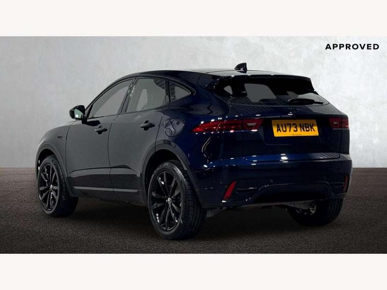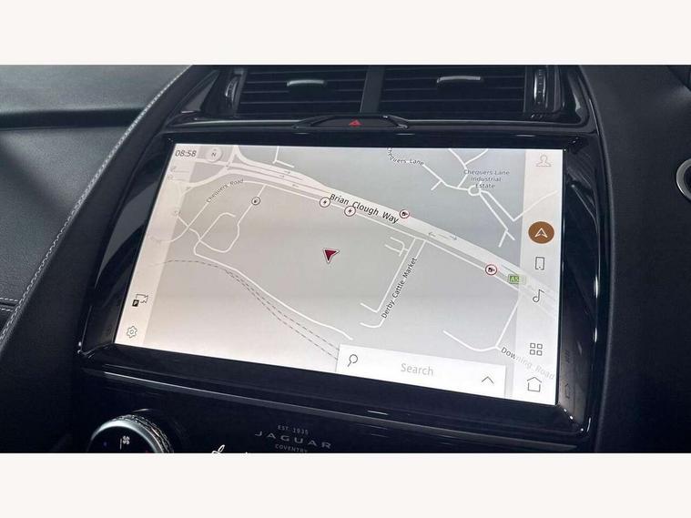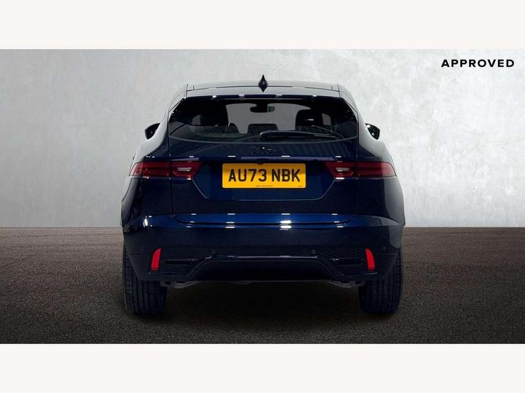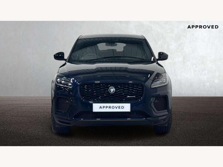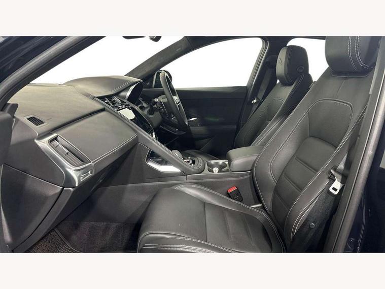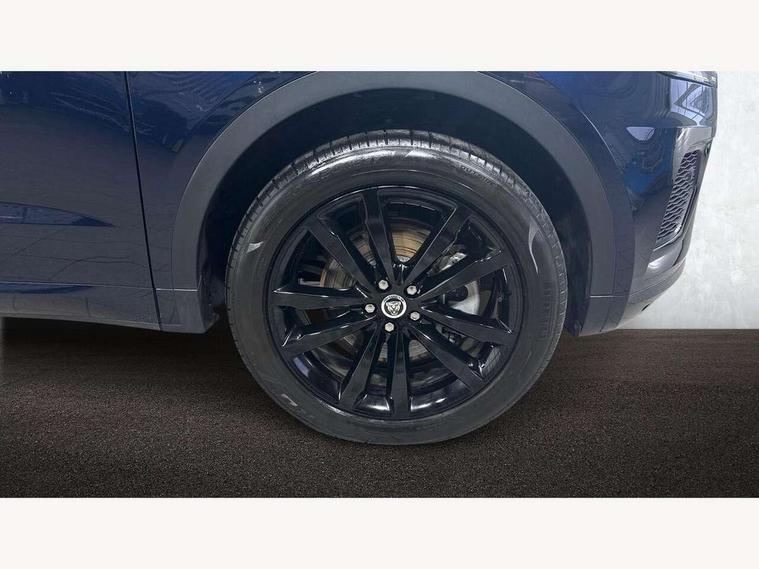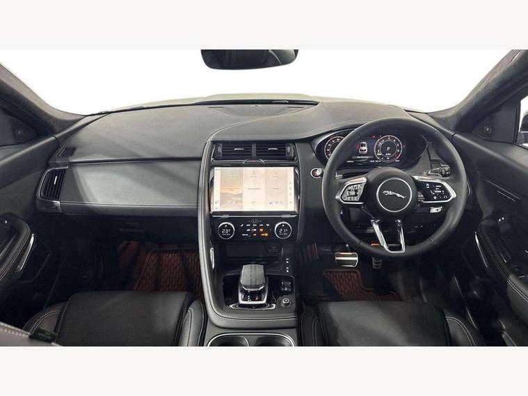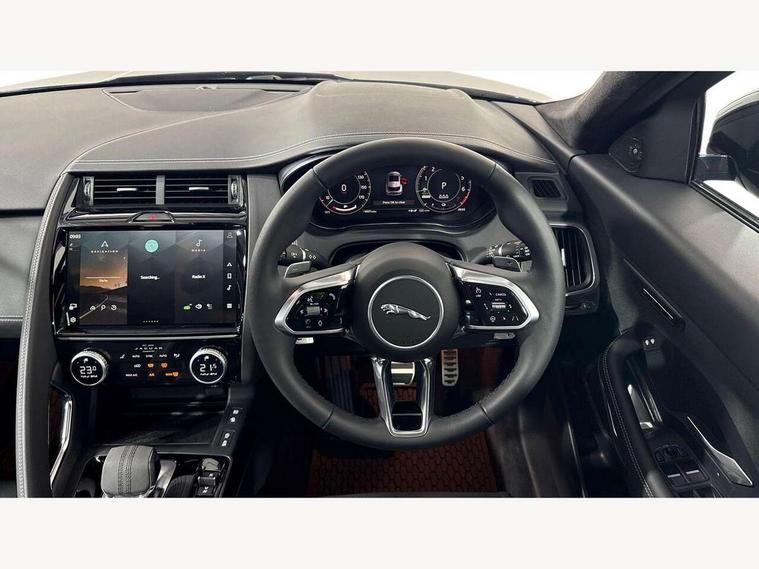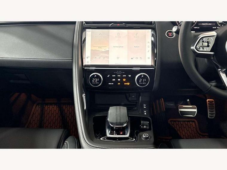 11.4" touchscreen with central ICP, Adaptive cruise control, Android Auto, Apple car play, Blind spot assist, Driver condition monitor, Eco driving style assistant, Electric power assisted steering, Emergency services call system, Front and rear parking aid, InControl remote, Interactive driver display, Jaguar drive control with adaptive surface response, Jaguar Toggle sport shift selector, Lane keep assist, Outside temperature gauge, Pivi pro connected infotainment system with smart settings and navigation pro, Push button start, Rear collision monitor, Rear traffic monitor, Speed proportional steering, Traffic sign recognition with adaptive speed limiter, Trip computer, Voice control system, Wireless device charging, 7 kW onboard charger, Configurable dynamics, Electric rear axle drive, Gasoline particulate filter, Home charging cable Mode 2, Large fuel tank, Passive suspension, Public charging cable Mode 3, Bluetooth connectivity including audio streaming, DAB digital audio broadcast, Dynamic volume control, 3 flash lane change indicators, Approach Illumination, Automatic headlights, Body colour door handles, Body colour front and rear lower bumper main moulding and lower side cladding, Body colour upper spoiler, Body coloured side sills, Centre high-mounted stop light, Dark satin grille tips, Electric front/rear windows with one touch/auto up/down, Electric heated/power fold memory door mirrors with approach lights and auto dimming driver side, Fixed panoramic glass sunroof, Heated washer jets, Heated windscreen, Jaguar script and leaper, Leaper for duo leather and embossed leaper for windsor leather, LED tail lights, LED third brake light, Metal load space scuff plates, Narvik black antenna pod and side pillar finisher, R Dynamic badge, R Dynamic body colour bumpers, Rain sensor windscreen wipers, Rear fog lights, Rear side wing doors, Rear wash wiper, Satin black grained front outer grille, low grill mesh and low bumper valence, side fender vent mesh and finisher, rear tow eye cover and grille mesh, Twin exhaust tailpipe, Variable front intermittent wipers, 16 way heated and cooled, electric adj driver memory front seats with 2 way manual headrests and heated rear seats with centre armrest, 3 rear head restraints, 3 seat bench in 2nd row, 40:20:40 rear seat fold, Bright metal pedals, Carpet mats, Centre console with armrest, Ebony suede cloth headlining, Enhanced ambient lighting, Hooks loadspace, ISOFIX on outer rear seats, Leather steering wheel, Loadspace cover, Loadspace light, Loadspace storage net, Luggage tie-downs in loadspace, Manual height/reach adjust steering wheel, Multifunction steering wheel, Overhead lighting console, Passive front head restraints, Power sockets, Premium cabin lighting, Rear air vents, Rear bench seats, Satin chrome gearshift paddles, Single front passenger seat, Sunvisors with illuminated vanity mirrors, Twin front cupholders, Two zone climate control, Windsor leather upholstery + sport seats, Online pack with data plan - E-Pace, 3x3 point rear seatbelts, ABS, All surface progress control (ASPC), Child locks on rear doors, Customer configurable autolock, DSC - Dynamic Stability Control, Electronic brake force distribution, Electronic parking brake, Emergency brake assist, Emergency braking, Front airbags with passenger seat occupant detector, Front and rear curtain airbags, Front and rear seatbelt reminder, Front passenger airbag deactivation, Front seatbelt pretensioners, Front side airbags, Height adjustable front seatbelts, Hill start assist, Low friction launch, Power child locks, Torque vectoring brake, Tyre pressure monitoring system, Intrusion sensor and alarm, Keyless entry, Locking wheel nuts, Remote central locking,