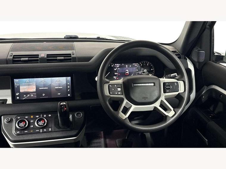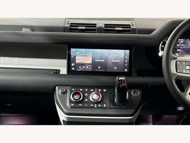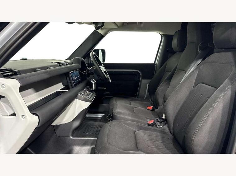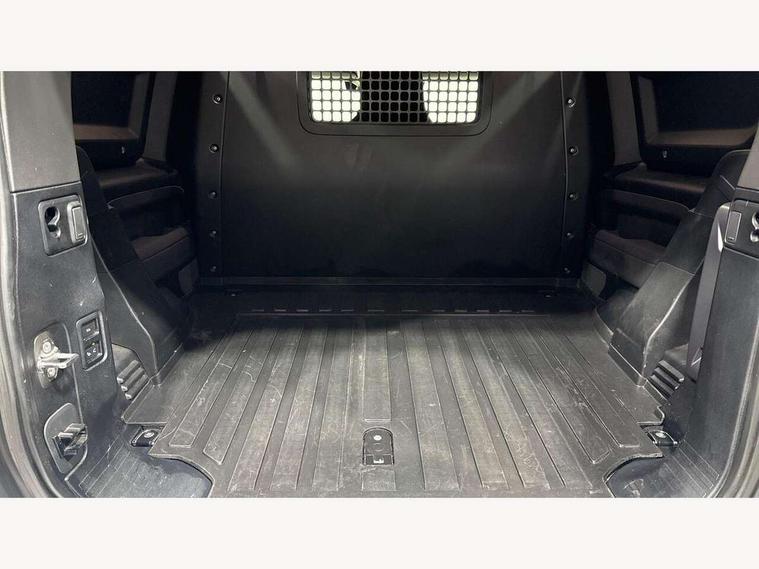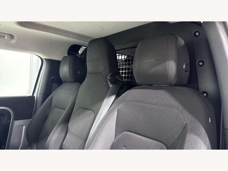 Customer Configurable Autolock, 360 parking aid, 3D Surround Camera with 360 View, 180 Rear View, Front Traffic Detection, Forward Vehicle Guidance, Tow Hitch Assist and clear sight Ground View, Brake Hold, Driver condition monitor, Electric power assisted steering (EPAS), Lane keep assist, Less wireless charger, Low traction launch, Pivi pro connected, Traffic sign recognition adaptive speed limiter, Trip computer, Tyre pressure monitor, Wade Sensing, Android Auto, Apple CarPlay, DAB Radio (Digital Audio Broadcasting), Sound system with 140W and 4 speakers, Alpine lights, Assisted tailgate, Centre high mounted stop light, ClearSight interior rear view mirror, Electric heated/power fold door mirrors with approach lights and auto dimming driver side, Electric windows with one touch open/close and anti-trap, Exterior signage panel, Follow me home lighting, Heated rear window with timer, LED tail light, Privacy glass, Puddle lights, Rain sensing wipers, Rear fog lights, Rear wash wiper, Side-hinged tailgate, Standard roof, Standard tread plates, 40:20:40 fixed rear seats, 8 way heated semi powered front seats with manual headrest, Cabin lighting, Carpet mats, Dual zone climate control, Durable rubber cabin flooring, Fabric upholstery, Footwell lights, Front jump seat and folding front centre armrest, Glovebox storage, High sided rubber mats, Loadspace hooks, Loadspace rubber mat, Manual adjustable steering column, Overhead stowage for sunglasses, Rear centre headrest, Rear reading light, Sunvisors with illuminated vanity mirrors, Twin front cupholders, Online pack - Defender with data plan, Brake pad wear indicator, Electronic traction control, Emergency braking, Front airbags, with passenger seat occupant detector, Power operated child locks, Remote for (e-Call, Optimised assistance call, InControl app, Climate, beep and flash and door), Seat belt reminder, Intrusion sensor, Locking wheel nuts, ABS and EBA, CBC - (Cornering brake control), Coil suspension system, Dynamic stability control, Electronic park brake, Gradient acceleration control, Hill Descent Control, Hill start assist, Particulate filter (DPF), Push button start, Roll stability control, Trailer stability assist,