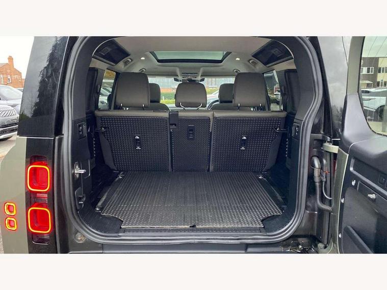 360 degree parking aid, 3D Surround Camera with 360 View, 180 Rear View, Front Traffic Detection, Forward Vehicle Guidance, Tow Hitch Assist and clear sight Ground View, Adaptive cruise control, Android Auto, Apple CarPlay, Assisted tailgate with soft close, Blind spot assist, Bluetooth system, Brake pad wear indicator, Clear exit monitor, Connected navigation pro, Driver condition monitor, Electric power assisted steering (EPAS), Interactive driver display, Lane keep assist, Push button start, Rear traffic monitor, Traffic sign recognition with adaptive speed limiter, Trip computer, Wade Sensing, 8 speed automatic transmission, All wheel drive system, Twin speed transfer box, DAB Radio (Digital Audio Broadcasting), Pivi pro connected, Automatic headlight levelling, Automatic headlights, Black exposed rear recovery eyes, Centre high mounted stop light, Electric heated/power fold door mirrors with approach lights and auto dimming driver side, Electric windows with one touch open/close and anti-trap, Follow me home lighting, Heated rear window with timer, Heated windscreen, LED tail lights, Privacy glass, Puddle lights, Rain sensing windscreen wipers, Rear fog lights, Rear side wing doors, Rear wiper, Side hinged tailgate, Trailer stability assist, X-Dynamic badge, 12V power socket in loadspace, 3 seat bench in 2nd row, Alpine lights, Durable rubber cabin flooring, Durable rubber loadspace flooring, Footwell lights, Front passenger isofix child seat attachment, Loadspace cover, Loadspace Hook, Multifunction steering wheel, Overhead stowage for sunglasses, Premium cabin lighting, Rear headrests, Rear ISOFIX, Rear reading lights, Single front passenger seat, Standard seat configuration, Storage glovebox, Sunvisors with illuminated vanity mirrors, Online pack with data plan - Defender, 5 x 3 point seatbelts, ABS, Brake hold function, Cornering brake control (CBC), Customer configurable autolock, DSC - Dynamic Stability Control, EBD - Electronic brakeforce distribution, Electric parking brake (EPB), Emergency brake assist, Emergency braking, ESP + traction control, Front airbags with passenger seat occupant detector, HDC - Hill descent control, Hill launch assist, Low traction launch, Power operated child locks, Remote for (e-Call, Optimised assistance call, InControl app, Climate, beep and flash and door), RSC - Roll stability control, Seat belt reminder, TPMS (Tyre pressure monitoring system), Alarm, Immobiliser, Intrusion sensor, Keyless entry, Locking wheel nuts,