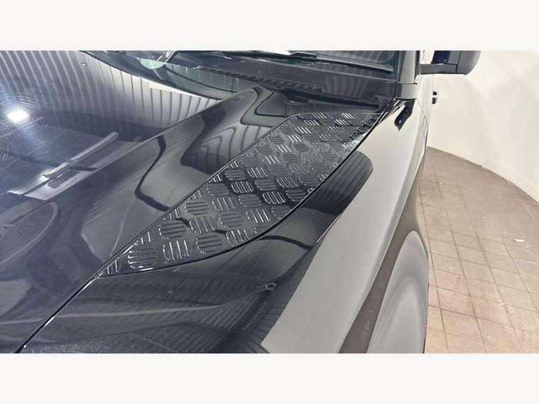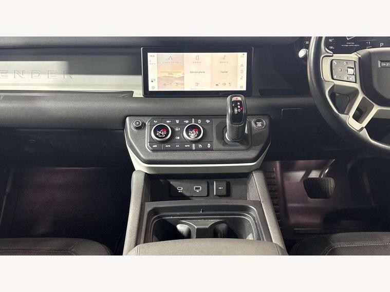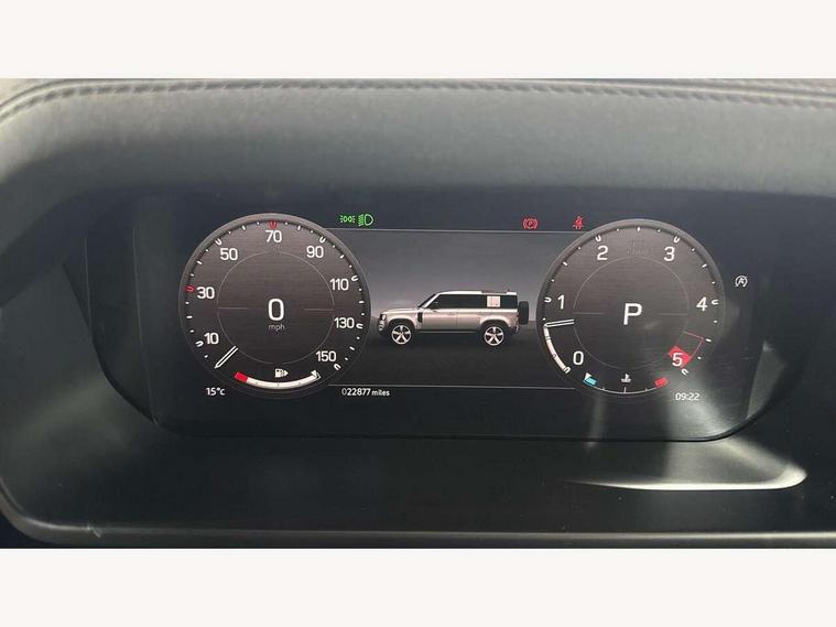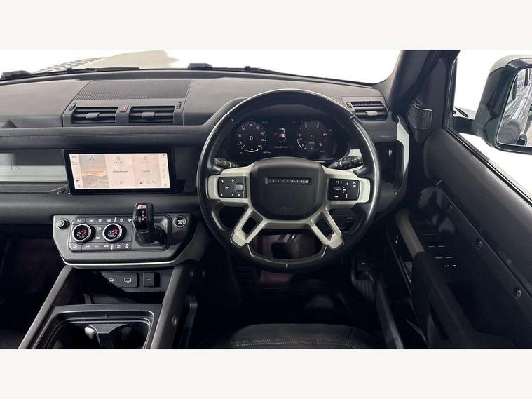 360 degree parking aid, 3D Surround Camera with 360 View, 180 Rear View, Front Traffic Detection, Forward Vehicle Guidance, Tow Hitch Assist and clear sight Ground View, Adaptive cruise control, Android Auto, Apple CarPlay, Assisted tailgate with soft close, Bluetooth system, Brake pad wear indicator, Connected navigation pro, Driver condition monitor, Electric power assisted steering (EPAS), Lane keep assist, Push button start, Traffic sign recognition with adaptive speed limiter, Trip computer, Wade Sensing, 8 speed automatic transmission, All wheel drive system, Twin speed transfer box, DAB Radio (Digital Audio Broadcasting), Meridian 400w sound audio system with 11 speakers and subwoofer, Pivi pro connected, Auto high beam assist, Automatic headlight levelling, Automatic headlights, Centre high mounted stop light, Electric heated/power fold door mirrors with approach lights and auto dimming driver side, Electric windows with one touch open/close and anti-trap, Follow me home lighting, Front fog lights, Heated rear window with timer, Heated windscreen, LED tail lights, Premium LED headlights with signature DRL, Privacy glass, Puddle lights, Rain sensing windscreen wipers, Rear fog lights, Rear side wing doors, Rear wiper, Side hinged tailgate, Trailer stability assist, X-Dynamic badge, 12V power socket in loadspace, 3 seat bench in 2nd row, Alpine lights, Durable rubber cabin flooring, Durable rubber loadspace flooring, Footwell lights, Front head restraints, Loadspace cover, Loadspace Hook, Multifunction steering wheel, Overhead stowage for sunglasses, Rear headrests, Rear ISOFIX, Rear reading lights, Single front passenger seat, Standard seat configuration, Storage glovebox, Sunvisors with illuminated vanity mirrors, Online pack with data plan - Defender, 5 x 3 point seatbelts, ABS, Brake hold function, Cornering brake control (CBC), Customer configurable autolock, DSC - Dynamic Stability Control, EBD - Electronic brakeforce distribution, Electric parking brake (EPB), Emergency brake assist, Emergency braking, ESP + traction control, Front airbags with passenger seat occupant detector, HDC - Hill descent control, Hill launch assist, Low traction launch, Power operated child locks, Remote for (e-Call, Optimised assistance call, InControl app, Climate, beep and flash and door), RSC - Roll stability control, Seat belt reminder, TPMS (Tyre pressure monitoring system), Alarm, Immobiliser, Intrusion sensor, Keyless entry, Locking wheel nuts,