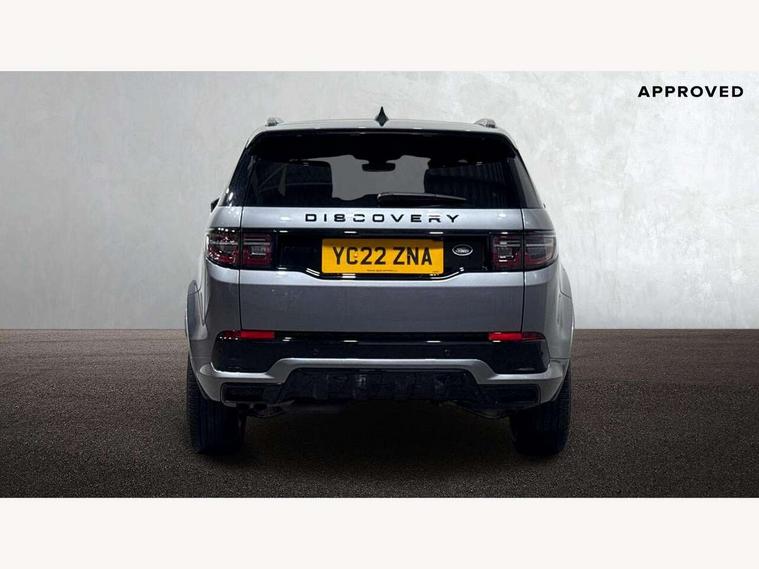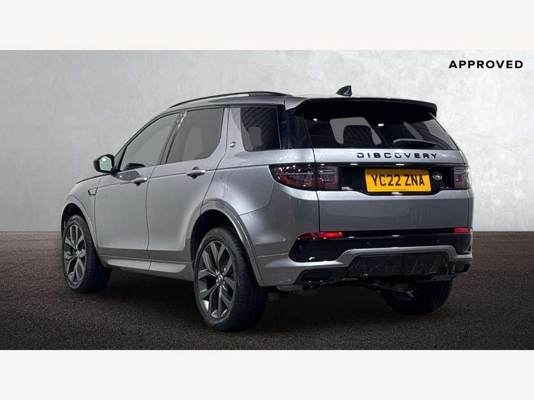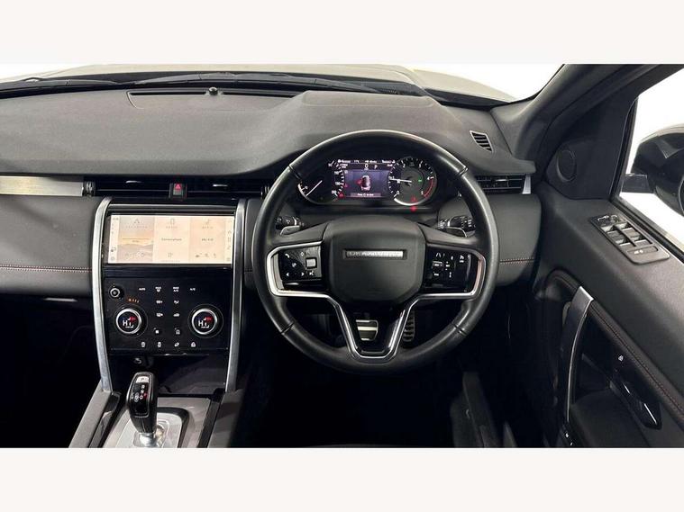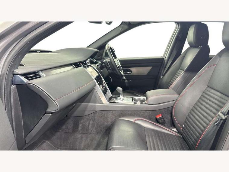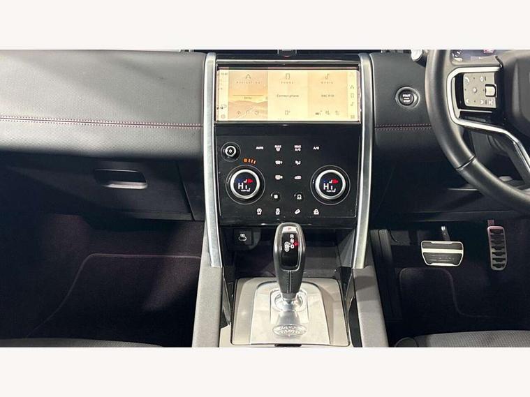10" touch screen, Adaptive cruise control, Android Auto, Apple CarPlay, Blind spot assist, Clear exit monitor, Driver condition monitor, eCall emergency call system, Front and rear parking aid, InControl remote premium, Lane keep assist, Locking fuel flap, PAS, Pivi Pro connected navigation system with upgraded Infotainment, Powered tailgate/boot lid, Push button start, Rear collision monitor, Rear traffic monitor, Service interval indicator, Traffic sign recognition with adaptive speed limiter, Trip computer, Wade Sensing, All terrain progress control, Coil suspension system, Diesel particulate filter, Dynamic stability control, Terrain Response 2, Bluetooth connectivity including audio streaming, Digital Audio Broadcast radio-DAB, Steering wheel mounted audio controls, 3rd brake light, Automatic headlight levelling, Automatic headlights, Electric front/rear windows, Electric heated/power fold door mirrors with approach lights and auto dimming driver side, Fixed panoramic sunroof with powered sunblind, Front and rear recovery eyes, Heated rear window, Heated windscreen including heated washer jets, No badges, Privacy glass, R Dynamic badge, Rain sensing windscreen wipers, Rear fog lights, Rear side wing doors, Rear wing door, Rear wiper, 5 seats, Bright metal pedals, Centre console with armrest, Footwell lights, Front and rear grab handles, Front passenger isofix child seat attachment, Loadspace cover, Loadspace light, Overhead lighting console, Overhead stowage for sunglasses, Rear headrests, Satin chrome gearshift paddles, Sunvisors with illuminated vanity mirrors, Tilt/reach adjustable steering wheel, Black exterior pack - Discovery sport R-Dynamic SE/HSE, Online pack with data plan - Discovery, 3 point seatbelts on all seats, ABS, Brake hold function, Child locks on rear doors, Collision mitigation braking system, Cornering brake control (CBC), Driver/Front Passenger airbags, Drivers knee airbag, Electronic brake force distribution, Electronic parking brake, Emergency brake assist, ESP + traction control, Hill descent control, Hill launch assist, Pedestrian airbag system, Rear seat ISOFIX, Roll stability control, Side and curtain airbags for front and 2nd row seats, Trailer stability control, Tyre pressure monitoring system, Battery Back Up System (BBUS) with tilt sensor, Global lock and unlock switch on driver door, Intrusion sensor, Keyless entry, Locking wheel nuts, Centre stack rails in noble chrome,