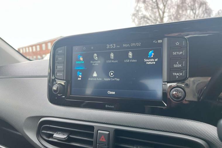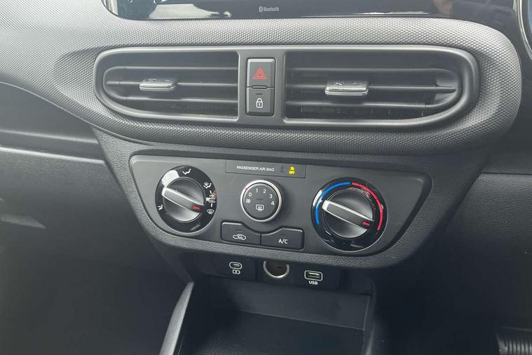 Apple car play/Android Auto, Bluelink mobile remote connectivity, Bluetooth connectivity with voice recognition, Cruise control, Driver attention alert system, eCall emergency call system, Forward Collision-Avoidance Assist (FCA) - Pedestrian/Cyclist, Front USB-C charging and USB-A data, Full-width 4.2" LCD instrument cluster, Intelligent speed limit assist, Lane departure warning system with lane keep assist - LKAS, Lane follow assist, PAS, Rear parking sensors, Rear view camera with guidelines, Roadside assistance, Start/Stop function, Tailgate, Trip computer, 2 front/2 rear speakers, Rear USB-C device charger, Steering wheel audio, phone and cruise controls, 1 speed non intermittent rear windscreen wiper, Black finish on B pillars, Body colour door handles, Body coloured bumpers, Body coloured door mirrors, Electric front windows, Electric rear windows, Electrically adjustable and heated door mirrors, Flat metal emblem, Front grille in matte black, Front intermittent wipers, Halogen daytime running lights, Halogen headlights, Headlights inner with Black Blade design, Heated rear window, High beam assist, Indicator light on door mirrors, Rear roof spoiler with integrated LED brake light, Rear side wing doors, 12v power outlet - front, 3 seat bench in 2nd row, 60/40 split folding flat to floor rear seats, Air conditioning, Auto light control, Bottle holders in front/rear doors + front centre console, Cabin and luggage compartment interior lighting, Cloth upholstery, Driver + passenger vanity mirrors, Driver's seat height adjustment, Driver/passenger sunvisors with ticket holders, Floor mats, Front door pockets, Front Head Restraints - Vertical and Horizontal Adjustment, Glove compartment, Height adjustable steering column, Isofix child seat preparation, Leather multifunction steering wheel, Rear door pockets, Single front passenger seat, Vertical adjustment rear head restraints, 3x3 point rear seatbelts, Airbags - front, front side and curtain airbags, Anti-lock brake system (ABS), Autonomous emergency braking (AEB) with forward collision warning system, Brake assist function, Childproof rear door locks, Electronic stability control, Front and rear seatbelt reminder, Front seatbelt pretensioners, Hill start assist control (HAC), Passenger airbag deactivate switch, Traction control, Tyre pressure monitoring system, Immobiliser, Perimeter alarm, Rear occupant alert, Remote central locking, Second remote key, Speed sensitive auto door locking, 15" Alloy wheels, Tyre repair kit,
