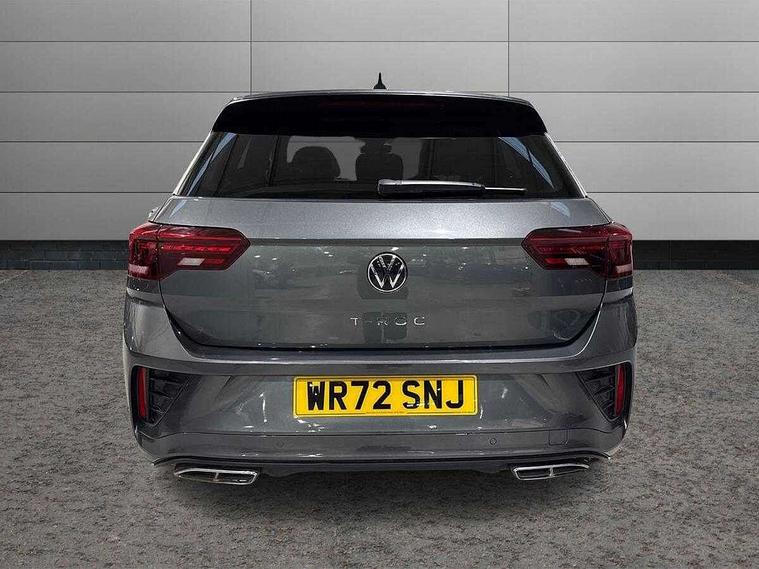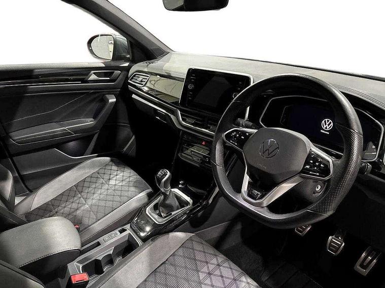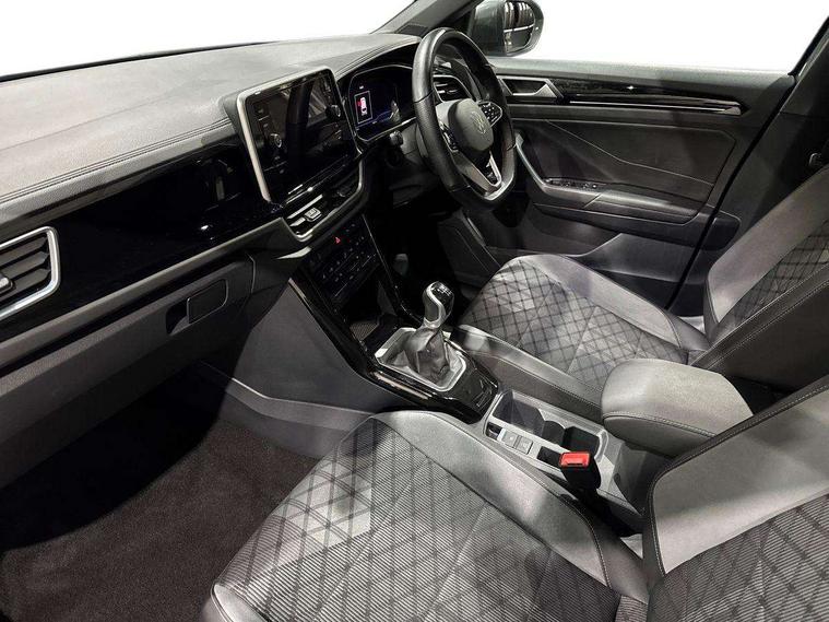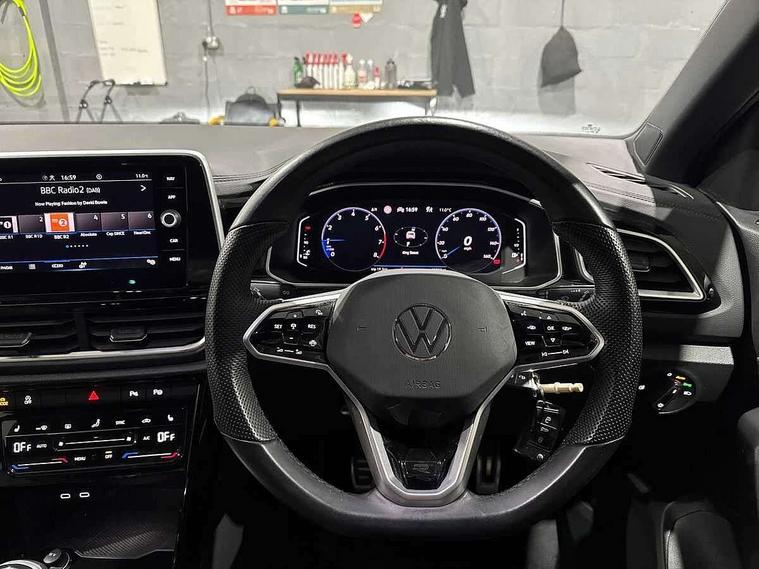 10.25" Digital cockpit pro, Bluetooth mobile phone interface, Driver alert system with fatigue detection, Driver tips and journey analysis, Emergency call service, Lane keeping system Lane Assist, Modified key software - reduce switch off time for key status change to Long no motion, Online services, Park assist including front and rear parking sensors, Service interval indicator, Tailgate/trunk lid release from outside, Think blue trainer driver tips and journey analysis, Warning sound and light for front seatbelts unfastened, Wireless app connect, Battery regeneration during braking, Start/stop function with battery regeneration, Diversity antenna for FM reception, Front and rear 6 speakers, Music playback - MP3, WMA and AAC files, Premium USB cable in choice of either Apple or Android smartphone compatibility, SD card slot, Simultaneous pairing of 2 compatible mobile devices, Title and cover art display, We Connect and We Connect Plus functionality, 3rd brake light, Auto dimming interior rear view mirror, Automatic hazard lights activation under emergency braking, Automatic headlight control with LED separate daytime running lights with coming/leaving home function, Extended roof spoiler, Exterior mirrors aspherical on driver side, convex on front passenger side, External USB type C socket and charging sockets, Front windscreen wiper with intermittent wipe and 4 position delay, Heated rear window, LED Plus headlamps, LED rear combination lamps, LED rear number plate lights, LED tail lamp rear comination lamps, Power windows with comfort operation and circuit breaker, R-Line design body coloured bumpers, Rain sensor, Rear exhaust tailpipe, Rear fog light on one side and reversing lights on both sides, Rear side wing doors, Rear wash/wipe with intermittent wipe setting, Remote electrically foldable door mirrors, puddle lights and reverse activated passenger's door mirror, 12V power socket in centre console, 3 rear head restraints, 3 seat bench in 2nd row, 4 load lashing points in luggage compartment, Air care climatronic air conditoning system with active combination filter and 2-zone temperature control, Black roof lining, Chrome plated radiator grille inserts, air vent surrounds and light switch surrounds, Door and side trim panel with leatherette insert, Drawer under drivers seat, Front + rear carpet mats, Front centre armrest, Front cupholders x 2, Front footwell illumination, Front reading light, Front scuff plates with R logo, Instrument lighting, white adjustable panel illumination, Interior ambient lighting and surround lighting, Interior light delay, Isofix child seat preparation, Leather gearshift handle, Load-through provision with cup holder when folded down ('Unsplit rear seat bench, split folding backrest, with centre armrest), Luggage compartment lighting, Single front passenger seat, Stainless steel pedals, Storage compartment in left and right luggage area, Storage compartment in rear doors, Storage compartments in driver and front passenger doors, Sunvisors with illuminated vanity mirrors, Variable boot floor, height adjustable and removable, Driver assistance pack without proactive passenger protection - T-Roc, 3 point height adj front seatbelts + pretensioners, 3 point seatbelts in outer rear with ECE label, ABS, Child locks on rear doors, Driver and front passenger airbag with front passenger airbag deactivation, Driver and front passenger safety-optimised head restraints, Drivers seatbelt reminder, Electronic parking brake, Electronic Stability Control (ESC) inc EDL (Electronic Differential Lock) and ASR (Traction Control), Front and rear passengers curtain airbag system including front side airbags, Front assist with city emergency braking and pedestrian monitoring, Front seat side impact airbags, Hill start assist, Predictive pedestrian protection, Rear disc brakes, Single tone horn, Tyre pressure loss indicator, Volkswagen roadside assistance, Alarm with interior protection, Anti-theft alarm system with interior monitoring, backup horn, and towing protection, Remote central locking with SAFELOCK, radio remote control with 2 remote control folding keys, Trims for alloy wheels,