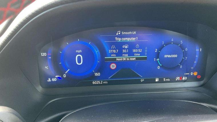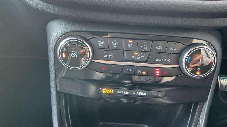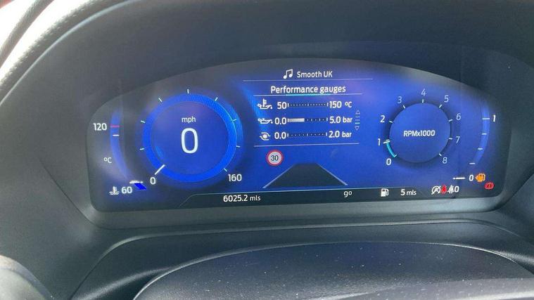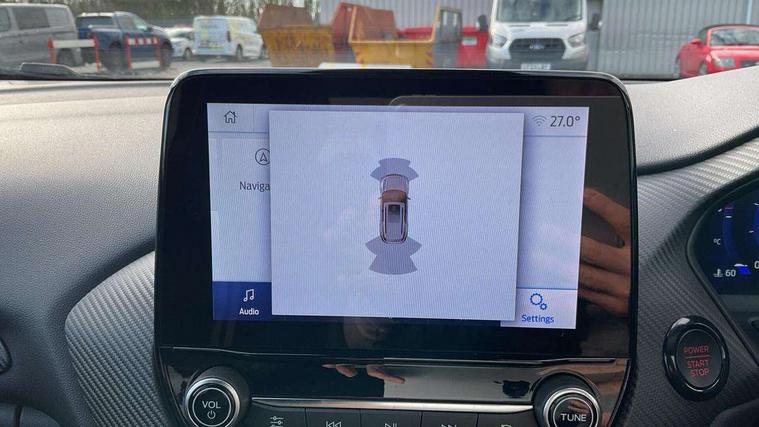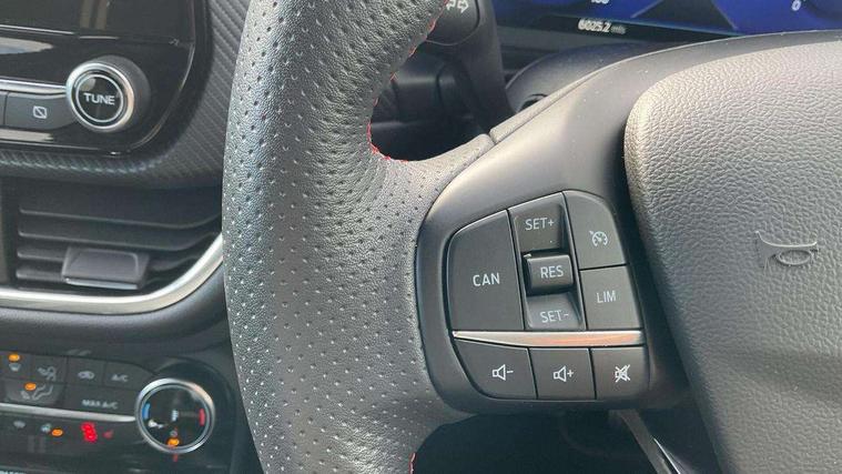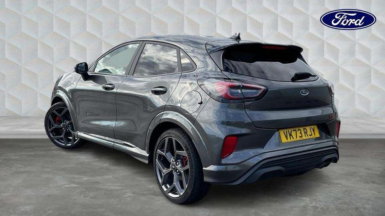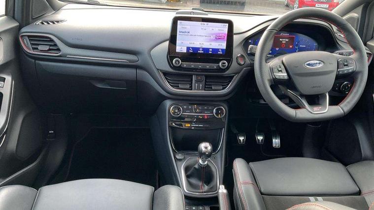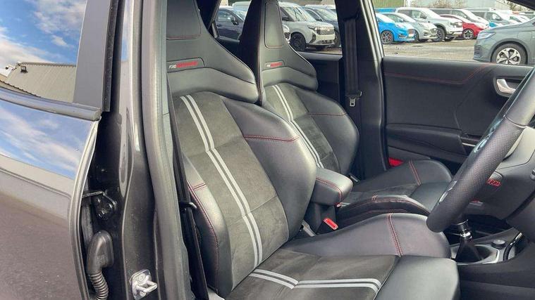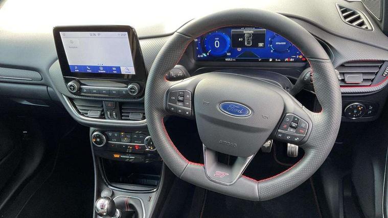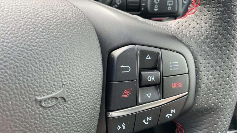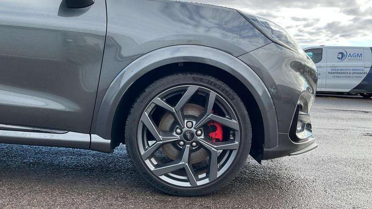 Cruise control with Intelligent speed assist, Driver impairment monitor, Emergency call service, Ford easy fuel, Front and rear parking sensors, Full digital 12.3" instrument cluster, Lane keeping aid with lane departure warning, Power assist steering, Selectable drive modes (normal, sport, eco, track), Speed sign recognition, Engine sound enhancer, ST suspension, Automatic headlights with auto high beam, Automatic rain sensing wipers, Dual chrome exhaust, Fixed LED signature headlamps, Front fog lamps, LED daytime running lights, LED rear lamps, Power foldable heated door mirrors with puddle lamps and puma logo protection, Privacy glass to side rear windows and tailgate glass, Quickclear heated windscreen, Rear side wing doors, Rear wiper, ST scuff plates, Third brake light, Unique ST body styling kit including contrast black roof, large rear spoiler and wing mirrors, plus Ford Performance embossed splitter, 3 seat bench in 2nd row, Alloy sports pedals, Centre console with armrest and stowage, Ford megabox extended bootspace, Ford Performance sensico partial premium leather upholstery with metal grey stitching, Front and rear floor mats, Front and rear head restraints, Manual 6 way driver seat adjust with lumbar adjustment, Manual 6 way passenger seat with lumbar seat adjustment, Single front passenger seat, ST flat bottomed steering wheel with metal grey stitching, ST logo projection, Unique ST gear shift knob, Wireless charging pad with electronic air temperature control (EATC), B&O Premium Audio system + Ford SYNC 3 navigation pack - Puma, Winter pack - Puma, 3 rear seatbelts, Child safety lock, Electronic stability control (ESC) and hill start assist, Pedestrian/cyclist detection & post-collision braking, Pre collision assist system, Red brake calipers, Tyre pressure monitoring system (TPMS), Keyless entry and power start button, Thatcham alarm, Carbon look interior deco spears, 19" 5 Spoke magnetite dark finished alloy wheel, Tyre inflation kit,