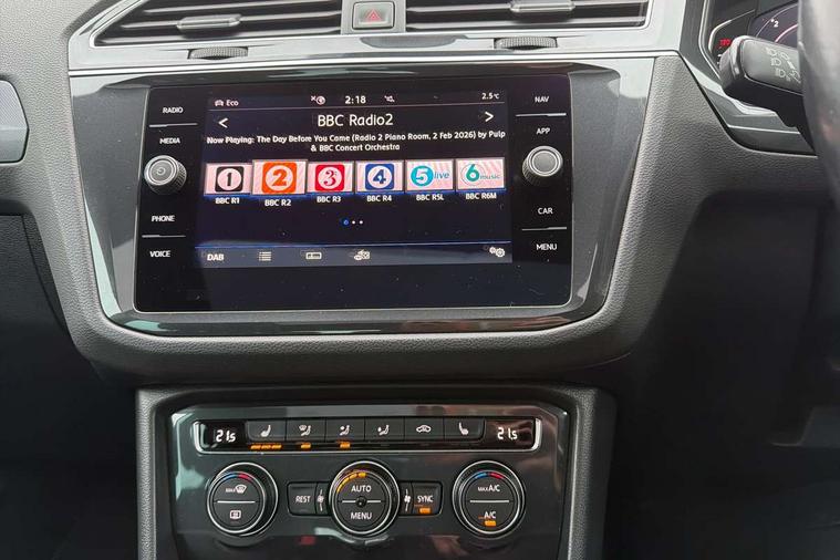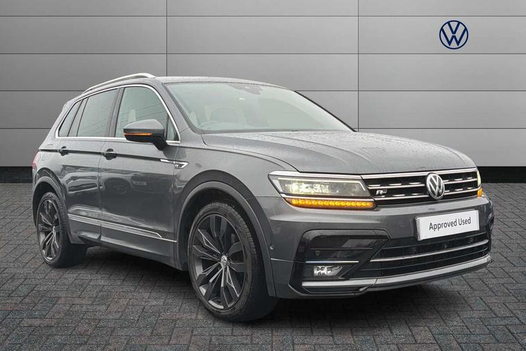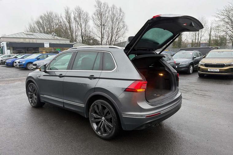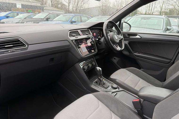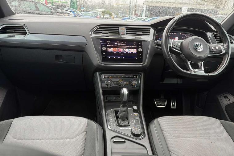 App-Connect, Active information display, Adaptive cruise control, Area view with park assist steering and front and rear parking sensors, Bluetooth phone integration system, Car-Net Security and Service, Coasting function, Distance control assist, Drive mode selector, Driver profile selection, Fatigue detection system, Front assist, radar sensor controlled distance monitor, city emergency braking + predictive pedestrian protection, Fully electric tailgate + keyless entry and start, Instrument cluster, Lane assist, Low washer fluid warning light, Outside temperature display, Progressive power assisted steering, Service interval indicator, Speed limiter, Start/Stop function, Warning lights, Diesel particulate filter, Misfuel prevention device for diesel engine, XDS electronic differential lock, 2x USB sockets in front, 4 X 20 watt output, DAB Digital radio, SD card slot, Simultaneous pairing of 2 compatible mobile devices, SMS functionality - read, compose and send SMS messages using touch-screen display, Title and cover art display, 3D effect cherry red LED rear tail lights, Auto dimming interior mirror, Automatic activation of hazard warning lights, Body colour door handles, Body colour door mirrors, Body colour rear spoiler, Body colour side skirt, Body coloured bumpers, Chrome side window surrounds, Chrome trimmed radiator grille, Coming/leaving home lighting function, Dusk sensor + auto driving lights, Electric folding door mirrors, Electric heated + adjustable door mirrors, Electric panoramic sunroof with sunblind, Front air intake with chrome strip, Front and rear electric windows, Heated rear window, High level 3rd brake light, LED headlights with dynamic light assist daytime running lights and cornering front fog lights, LED rear number plate lights, Piano black rear diffuser, R Line body kit, R Line side sills, Rain sensor windscreen wipers, Rear tinted glass from B-pillar backwards approx 65% tinted, Rear windscreen washer and wiper with interval delay, Side skirts and rear bumper with chrome insert, Silver roof rails, Silver under body guard, Trailer Stability Programme, Windscreen wipers/ intermittent wipe + 4 position delay, 12V Accessory socket in centre console, 3 rear headrests, 3 spoke leather multifunction steering wheel with paddle shift, 3 zone climate control, 4 load lashing points, 40:20:40 split folding rear seats, Bag hook in luggage compartment, Black headlining, Foldable passenger seatback, Front + rear carpet mats, Front centre armrest with 12v socket, Front centre armrest with storage + rear 2 air vents + cupholders, Front seat back storage pockets, Front seatback folding tables, Height/reach adjust steering wheel, Illuminated driver/passenger vanity mirrors, Illuminated scuff plates, Instrument lighting white adjustable panel illumination, Interior light with delay, Isofix Preparation 2 Rear child seats, Leather gear knob, Load through provision with 2 cupholders when folded, Lockable cooled glovebox, Luggage compartment lighting, Luggage compartment side storage, Map pockets on front seats, Passenger seat height adjuster, Rear cupholders, Removable luggage cover, Sliding/reclining rear seats, Stainless steel pedals, Storage compartment in driver's door, Storage compartment in passenger's door, Storage compartment in rear doors, Storage tray on dashboard, Sunglasses storage, Unique R Line door sill protectors, Variable boot floor, Ambient lighting pack - Tiguan, Winter pack - Tiguan/Tiguan Allspace, 3 rear 3 point seatbelts, ABS+EBD+Brake assist, Active bonnet, Active pedestrian safety system, Curtain airbags, Driver/Front Passenger airbags, Driver/Passenger whiplash optimised head restraints, Drivers knee airbag, DTC - Drag torque control, Electronic parking brake with auto hold, ESP with EDL + ASR, First aid kit, Front side airbags, Front ventilated disc brakes and rear disc brakes, Head airbag system, Height adjustable front 3 point seatbelts + pretensioners, Hill hold control, Passenger airbag deactivate switch, Passenger knee airbag, Proactive preventive occupant protection, Rear side airbags, Rigid safety cell with front and rear crumple zones, Seatbelt warning lamp and buzzer, Two tone horn, Warning triangle, Alarm with interior protection, Electronic engine immobiliser, Remote central locking with 2 remote folding keys, Aluminium decorative inserts, Chrome door trim inserts, 20" Suzuka alloy wheels + anti theft wheel bolts, Steel space saver spare wheel,