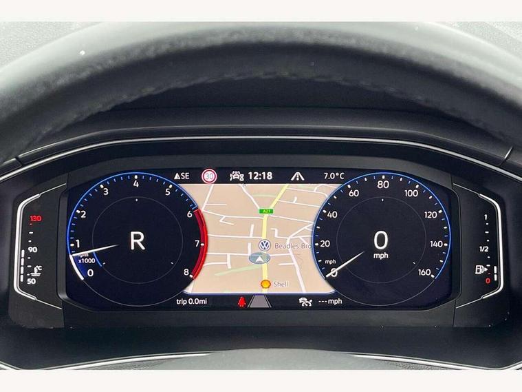 'Lights On' Reminder warning buzzer, Adaptive cruise control, Bluetooth telephone and audio connection for compatible devices, Car information display, Digital Cockpit Pro - Active info display, Driver alert system with audible and visual fatigue detection system, Driver tips and journey analysis, Emergency call service, Lane assist with warning text instrument cluster, Modified key software - reduce switch off time for key status change to Long no motion, Multifunction camera, Multifunction computer with visual gear change recommendation for fuel consumption, Navigation system discover media including streaming and internet, Service interval indicator, Think blue trainer driver tips and journey analysis, Traffic sign recognition, Voice activation, Warning sound and light for front seatbelts unfastened, Wireless app connect for apple carPlay, Battery regeneration during braking, Start/stop function with battery regeneration, DAB Digital radio, Diversity antenna for FM reception, Music playback - MP3, WMA and AAC files, Premium USB cable in choice of either Apple or Android smartphone compatibility, SD card slot, Simultaneous pairing of 2 compatible mobile devices, SMS functionality - read, compose and send SMS messages using touch-screen display, Storage compartment with longitudinal and height adjustable in armrest and two rear air vents, Three route options - Fast, Short, Eco, Title and cover art display, USB-C Interface and USB charging socket, Auto dimming interior rear view mirror, Automatic coming/leaving home lighting function and daytime running lights, Automatic hazard lights activation under emergency braking, Black grained lower door protectors, Black grained wheel arches, Body colour door handles, Body colour sports bumpers with silver metallic underbody fascia, Chrome effect left and right trapezoid exhaust tailpipe fascia surround, Chrome plated moldings, Chrome trim on upper and lower radiator grille, Dusk sensor, Dynamic headlight range control with self adjusting whilst driving, Electrically foldable, adjustable and heated door mirrors with puddle lights and reverse activated kerb-view adjustment on passenger's door mirror, External USB type C socket and charging sockets, Front and rear electric windows, Front fog lights with static cornering function, Front windscreen wiper with intermittent wipe and 4 position delay, Fully galvanised body, Heated rear window, High level 3rd brake light, LED darkened rear light clusters, LED headlamps with automatic range adjustment and unique signature LED separate daytime running lights, LED rear number plate lights, LED tail lamp rear comination lamps, Privacy glass, Rain sensor, Rear tinted glass from B-pillar backwards approx 65% tinted, Rear wash/wipe with intermittent wipe setting, Silver anodised roof rails, Volkswagen roundel, 12V socket in centre console storage area, 3 rear head restraints, 4 load lashing points in luggage compartment, Branded points of interest, Chrome plated radiator grille inserts, air vent surrounds and light switch surrounds, Climate control - 2 zone electronic air conditioning with automatic air recirculation and allergy filter, Door and side trim panel, Drawer under drivers seat, Front centre armrest, Front cupholders x 2, Front seat back storage pockets, Glovebox, Height adjustable front seats, Height/reach adjust steering wheel, Instrument lighting, white adjustable panel illumination, Interior light delay, Interior light in footwell, Isofix easy fit child seat preparation for 2 outer rear seats, LED interior light with switch off delay/dimmer and 2 front/rear LED reading lights, Load through provision with single cup holder when folded down, Luggage compartment cover, removable, Luggage compartment lighting, Split folding rear seat backrests with centre armrest, Storage compartment in left and right luggage area, Storage compartment in rear doors, Storage compartments in driver and front passenger doors, Sunvisors with illuminated vanity mirrors, 3 rear three point seatbelts, ABS, Curtain airbags, Driver and front passenger safety-optimised head restraints, Drivers and front passengers airbags with passengers deactivation switch, Drivers seatbelt reminder, Electronic parking brake with auto hold, Electronic stability control (ESC) includes ASR, EDL, EDTC and trailer stabilisation function, Front assist with city emergency braking and pedestrian monitoring, Front seat side impact airbags, Hill start assist, Predictive pedestrian protection, Rigid safety cell with front and rear crumple zones, Single tone horn, Three point height adjust front seatbelts + pretensioners, Tyre pressure loss indicator, Ventilated front and rear disc brakes, Volkswagen roadside assistance, Alarm with remote central locking and interior protection, Electronic engine immobiliser, Remote central locking with SAFELOCK, radio remote control with 2 remote control folding keys,