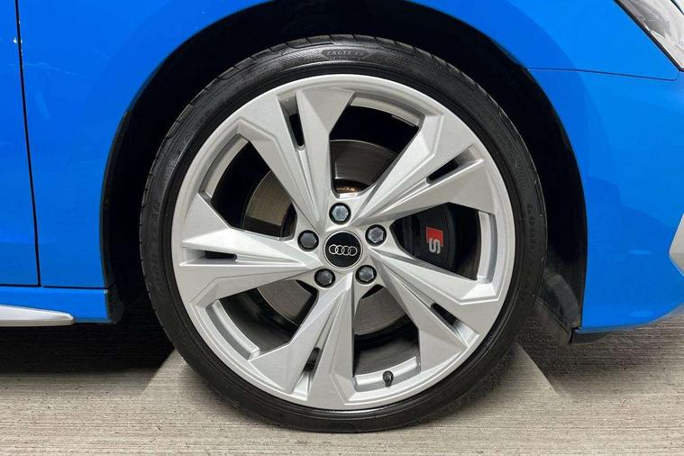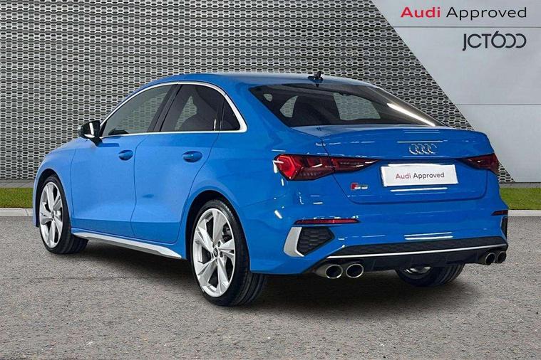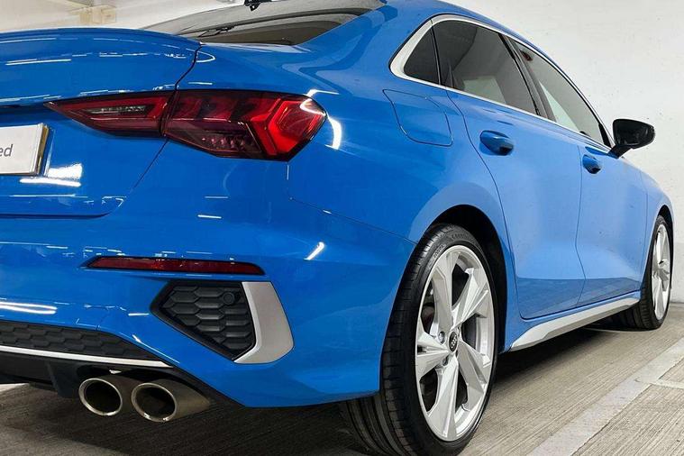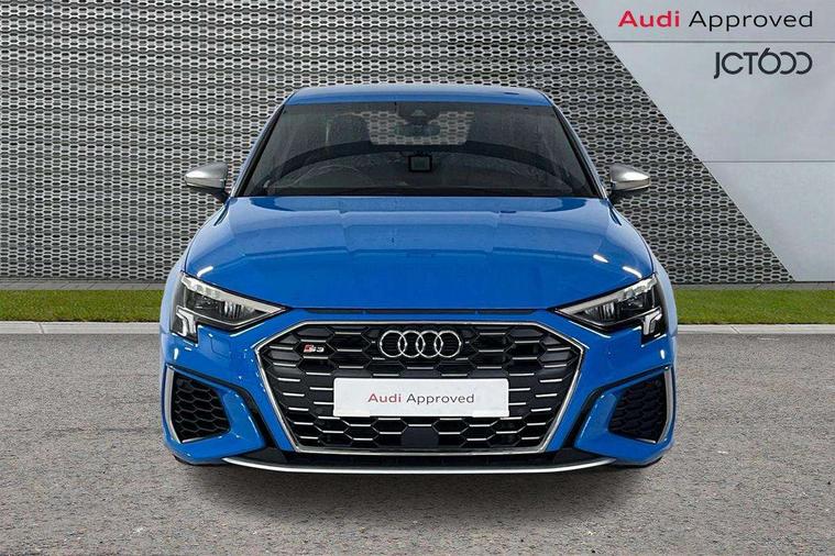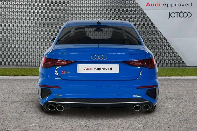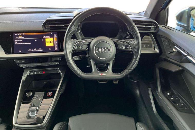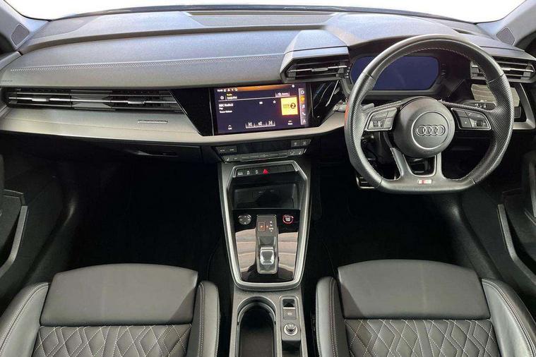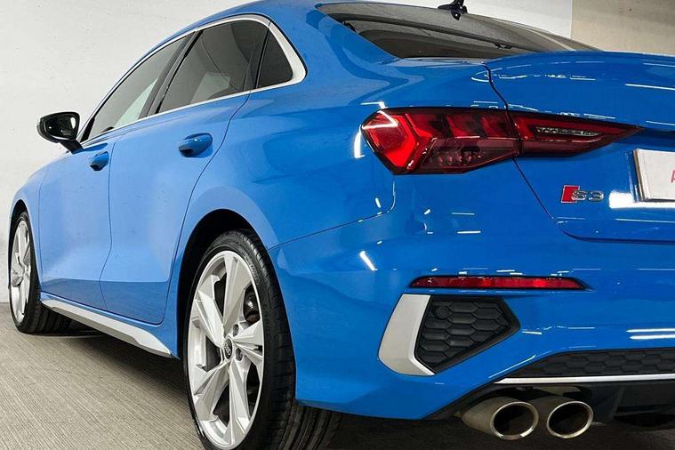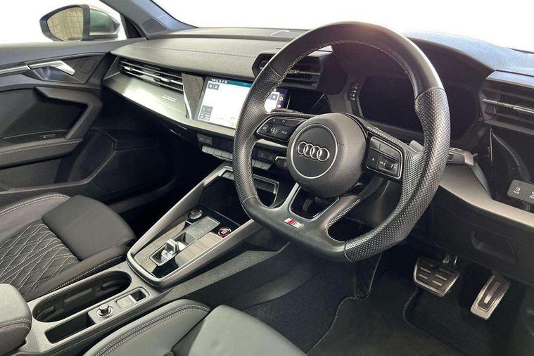 Audi connect emergency call and service, Audi drive select (Auto, Comfort, Dynamic, Efficiency and Individual), Audi smartphone interface, Audi Virtual Cockpit - 10.25" digital and colour instrument cluster, Automatic start/stop system with recuperation, Bluetooth interface, Collision avoidance assistant, Lane departure warning system, MMI Navigation Plus with high resolution 10.1" colour touch screen display, Progressive steering, Service indicator, Voice control system with natural language interaction, Quattro permanent all wheel drive, S sport suspension with spring damper adjustment and lowering by 15mm, 2x USB Type C ports (for charging and data transfer), 6 passive loudspeakers, CD player, DAB Digital radio, 3rd brake light, Acoustic glass windscreen, Audi Beam uses LEDs to project the Audi logo onto the ground as you exit your S3, Auto dimming frameless rear view mirror, Electrically adjustable/heated/folding/auto dimming door mirrors with integrated LED indications + kerb view function for passenger side, Front electric windows, Headlight washers, Illuminated door sills with aluminium inserts at the front with S logo, LED daytime running lights, LED headlights with LED rear lights and dynamic rear indicators, Light and rain sensors, Model and engine designation badges at rear, Privacy glass - dark tinted rear window, rear door and side windows, Rear boot, Rear electric windows, Rear side wing doors, 12V socket and storage compartment in front centre console, 3 seat bench in 2nd row, 40/20/40 split folding rear seat bench with cupholder, Black cloth headlining, Dual zone electronic climate control, Front and rear centre armrest in leather, Front and rear headrests, Front/rear floor mats, Heated front seats, Height and reach adjustable steering wheel, Illuminated vanity mirror, Interior lighting - glove compartment light and right hand side, Luggage compartment floor covering, Single front passenger seat, Stainless steel pedals and front footrest in black, Body styling design pack - S3, LED interior lighting pack - A3 Saloon, Storage pack - A3/S3 Saloon, 3x3 point rear seat belts, Driver and front passenger airbag with passenger airbag deactivation, Electronic Stabilisation Control (ESC) including ABS, ASR and EDL, First aid kit with warning triangle and 2 safety vests, Front side airbags with head airbags and interaction airbag, Hill hold assist, Pre-sense front with pedestrian and cyclist detection, Seatbelt monitoring, Tyre pressure loss indicator, Anti theft alarm, Anti-theft wheel bolts, Electronically operated child locks, Immobiliser, Remote control central locking, Aluminium air vent surrounds, Aluminium trim elements, Dark spectrum aluminium inlays, accent surfaces in the dashboard and centre console in platinum grey silk effect paint finish,