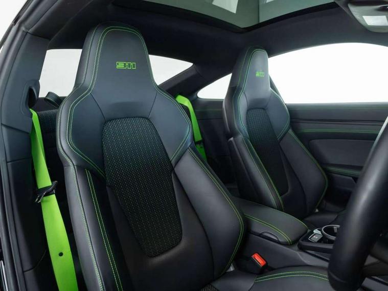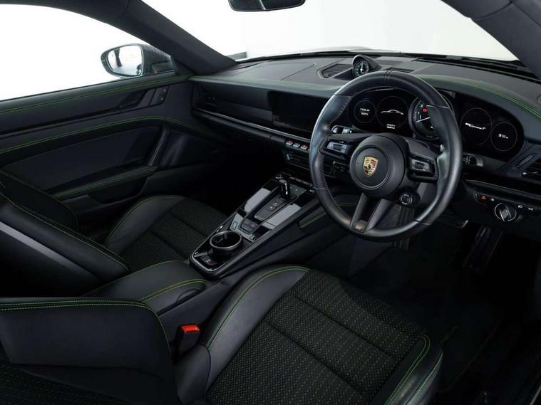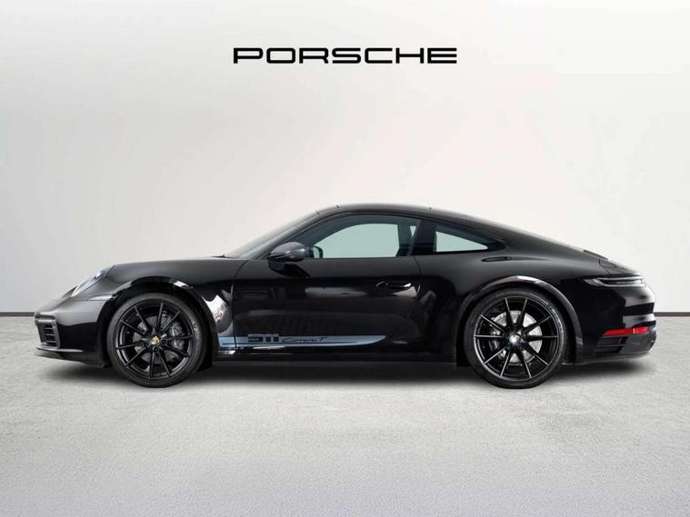 10.9 inch centre display, Automatic start/stop system, eCall emergency system, Gear indicator in rev counter, Instrument cluster with central analogue rev counter and two 7-inch TFT displays, Porsche Communication Management (PCM) including online navigation module, mobile phone preparation, audio interfaces and voice control system, Porsche WET Mode, Service indicator, Smartphone integration with Apple CarPlay and Android auto, Stationary management with HOLD function, Trip computer, Warn and brake assist including pedestrian protection, 8 Speed Porsche Doppelkupplung (PDK), Aluminium block and cylinder heads, Direct fuel injection (DFI), Expansion intake manifold, Four valve per cylinder, Integrated dry-sump lubrication with an on-demand oil pump, McPherson front axle with anti roll bar, Multi-link suspension with anti-roll bar at rear, PASM sport suspension 10mm lowered with helper springs added to rear, Porsche Stability Management (PSM), ABS with extended brake functions, Rear wheel drive, Twin turbocharger intercooled, Two gasoline particulate filter, Two three-way catalytic converters and on-board diagnostics for monitoring emission control system, VarioCam Plus variable valve timing and switchable valve lift, Water cooled with thermal management, 2 USB-C connectivity and charge ports in the centre console storage compartment, DAB Digital radio, "PORSCHE" lettering integrated in taillight strip, 911 Carrera T decorative side logo in agate grey, Auto deploying rear spoiler, Automatic headlight activation including welcome home lighting, Automatically dimming interior and exterior mirrors with integrated rain sensor, Black trim strips, Body coloured bumpers, Electrically adjustable heated exterior mirrors on door waist rails, aspherical on driver's side, Green tinted thermally insulated glass, Heated rear windscreen, Intelligent lightweight body in Aluminium/Steel composite construction, LED auxiliary light units in the front end with position lights, direction indicators and side indicators, Power windows with one touch operation and door seal protection, Rear boot, Retractable door handles, Side air intakes at front with active cooling flaps and air blades, Side skirts trim in black, Slat Inlays on rear lid painted in in high gloss agate grey, Sports exhaust system tailpipes in black, Taillight strip including integral parking lights and rear fog light, Trims on sideskirts in black, Windscreen washer system with aero wiper blades and washer jets, 12V socket in front passenger footwell, 2-zone automatic climate control with separate temperature settings for driver and front passenger, Ascending centre console with storage compartment, Clothes hooks on seat backrests, Driver and front passenger illuminated vanity mirrors, Embossed leather on front center seat, side bolsters and front seat headrests, Front head restraints, Heated front seats, ISOFIX child seat mounting points on passenger seat, Leather headrests embroidered with 911 logo in black, LED door lights, LED footwell lights, LED glove compartment lighting, LED ignition light, LED luggage compartment lighting, LED orientation light, LED reading lights, Lockable glove compartment, Luggage compartment at front, Luggage compartment lid release, Particle/pollen filter with active carbon filter, PDK gear selector with automatic mode, manual gear selection via shift paddles on the steering wheel, Single front passenger seat, Smooth finish leather on steering wheel rim, door handles, door panel armrests and centre console storage compartment lid, Split folding rear seats, Storage compartments in each doors, Two individual cupholders 1x as inlet in centre console and 1x passenger side, 4 piston aluminium monobloc fixed + brake calipers at front and rear + brake calipers with black finish, Brake discs with 330mm diameter at front and rear, internally vented and cross-drilled, Electric parking brake, Electromechanical power brake, Full size two stage airbags for driver and front passenger, Porsche side impact protection system includes side impact protection in doors, curtain, head/thorax airbags for driver/front passenger in each door, Tyre pressure monitoring system, Dashcam prep, Engine immobiliser with remote central locking and alarm system with ultrasonic sound based interior surveillance, Porsche vehicle tracking system (PVTS Plus), Tyre repair kit with sealing compound and electric air compressor,