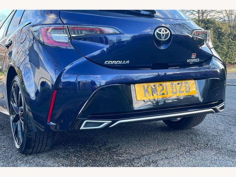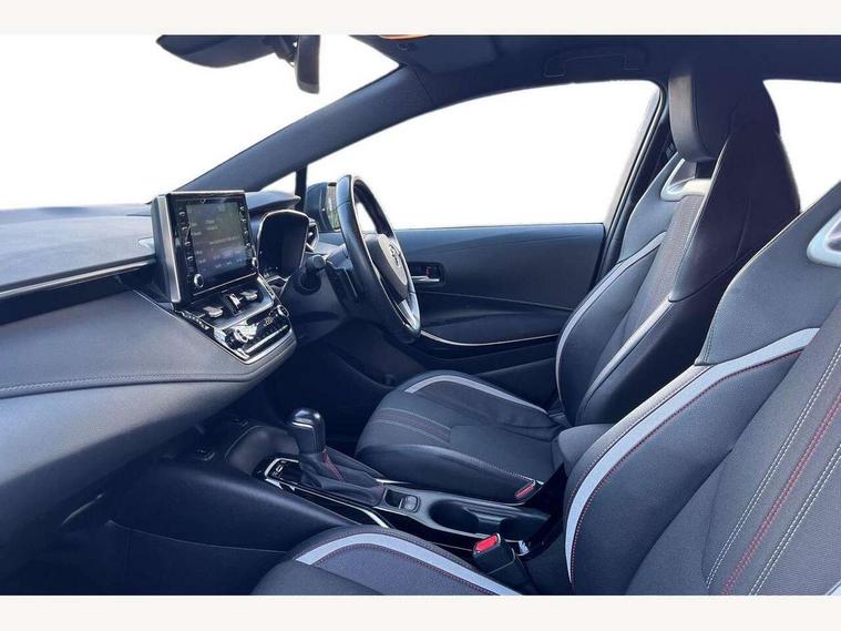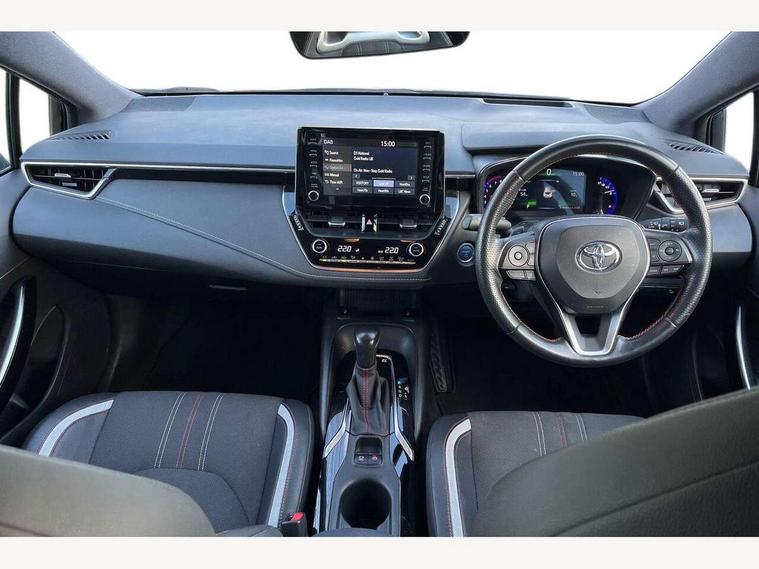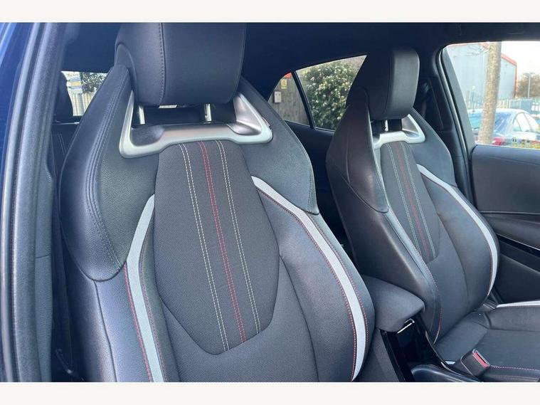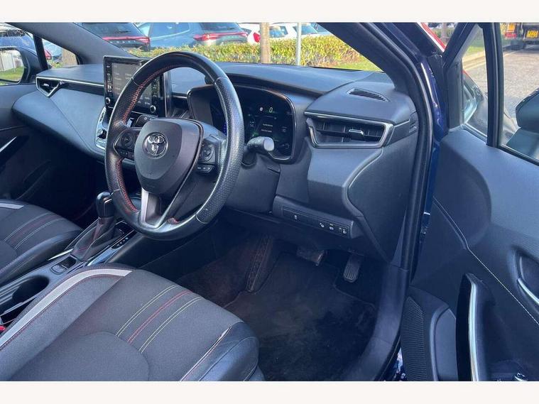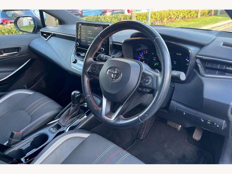 7" Multi information display screen, Bluetooth telephone connectivity, Connected car functionality upgrade, tracker, remote status and e-care, Dynamic radar cruise control (with RSA) including switch on steering wheel, E-call, Electrically assisted power steering, EV drive indicator, Head up Display, Intelligent park assist, Lane Departure Alert (LDA) switch on steering wheel, Memory on adjustable speed limiter, Push button start, Reversing camera, Smartphone integration with Apple CarPlay and Android auto, Gasoline particulate filter, Vehicle Stability Control (VSC), 6 speakers, 8" Touchscreen with MM19 Multimedia system and voice recognition, AM/FM radio, DAB Digital radio, Toyota touch 2 with go navigation system, USB and Aux in connectors + 12V front outlet, Anti-jam protection on power windows, Auto dimming inside rear view mirror, Auto up and down function on all power windows, Automatic folding mirrors, Automatic headlights with high beam assist, Black toyota logo in front, Black window frames, Body colour rear spoiler, Body coloured bumpers, Body coloured door mirrors, Body coloured outside door handles, Follow me home headlights, LED daytime running lights, LED front fog lights, LED High mounted stop light, LED multi-reflector headlights with manual headlight levelling, LED rear combi lights with LED lightguide, Piano black surround on lower front grille with dark chrome mesh effect, Power adjustable heated door mirrors, Power front windows, Power rear windows, Rain sensing wipers, Rear bumper with satin chrome plated inserts, Rear privacy glass, Rear window defogger, Rear window wiper, Reverse tilting door mirrors, Shark fin antenna, Time adjustment on intermittent wiper, Turning signal integrated indicators in door mirrors, Unique lower skirt, Unique side rocker with black insert, UV-filter on driver and passenger windows, 3 rear headrests, 3 spoke leather steering wheel + gear knob, 60/40 split folding rear seat, Adjustable speed limiter switch on steering wheel, Alcantara/partial leather upholstery, Audio, multimedia and telephone switches on steering wheel, Boot light, Centre room light, Clean air filter, Driver and front passenger personal light, Driver and passenger assist grip, Driver and passenger seatback pockets, Driver and passenger sun visor with mirror and light, Dual zone automatic air conditioning with ECO mode switch, Fabric armrests, Front and rear cup and bottle holders, Front door pockets, Front head restraints, Heated driver and front passenger seats, Illuminated entry system in room lamp, ISOFIX seat fixing (2 fixings on rear outer seats), Leather gear shift with satin chrome on gear shift console, Manual height adjustable for driver and front passenger seat, Paddle shifts, Parcel shelf, Pollen filter, Power adjustable lumbar support on driver seat, Power window switches with satin chrome inserts, Rear armrest with 2 cupholders, Rear passenger coat hooks (2), Satin chrome inside door handles, Shopping bag hooks in luggage compartment, Sliding armrest on centre console box, Slow opening glovebox with lights, Tilt/telescopic steering column, Voice recognition switch on steering wheel, Whiplash Injury Lessening (WIL) feature (active headrest) for seats, Parking pack - Corolla, Toyota safety sense 2 pack - Corolla, 3x3 point rear seatbelts, Adjustable driver and front passenger seat belt extender to top anchor point, Anti lock braking system + Electronic brake force distribution, Brake assist function, Downhill Assist Control (DAC), Electronic parking brake, Emergency brake light signal (EBS), Front passenger airbag on/off switch, Front seatbelt reminder, HAC - Hill start assist control, Rear seat belt reminder, Seatbelt pretensioners and force limiters, Supplemental restraint system (SRS) 7 airbags - dual driver, dual side curtain, side impact and driver knee airbags, Traction control, Tyre pressure warning system, Acoustic vehicle alert system (AVAS), Alarm with motion sensor and immobilizer, Remote central locking + deadlocks, Satin chrome dash trim, Soft touch texture on upper dashboard, Unique wheel finish with red wheel cap,