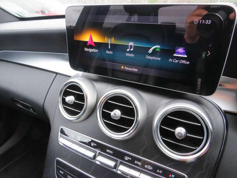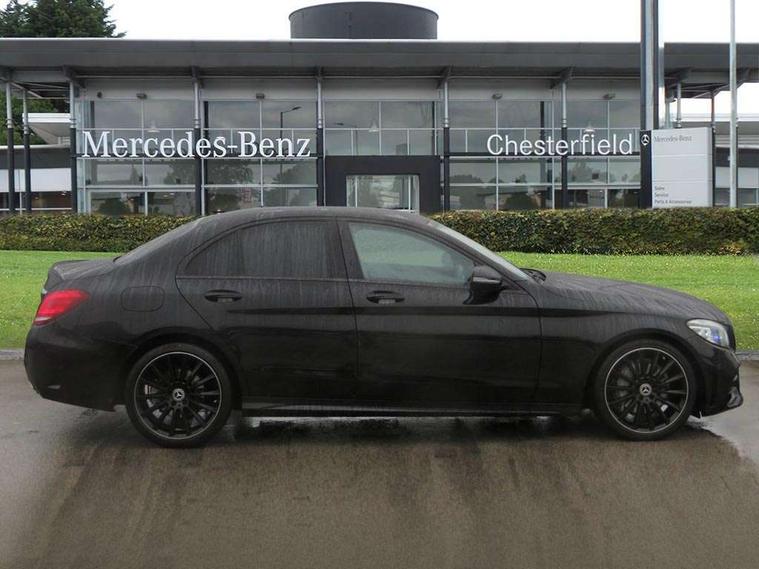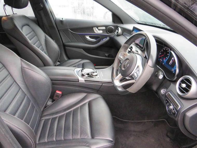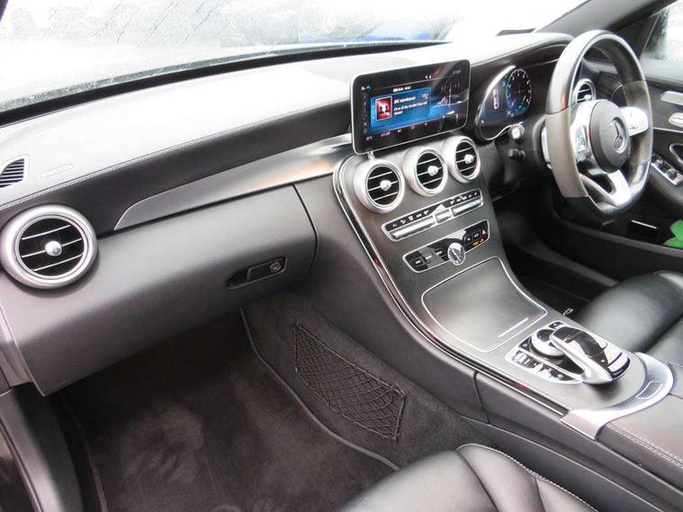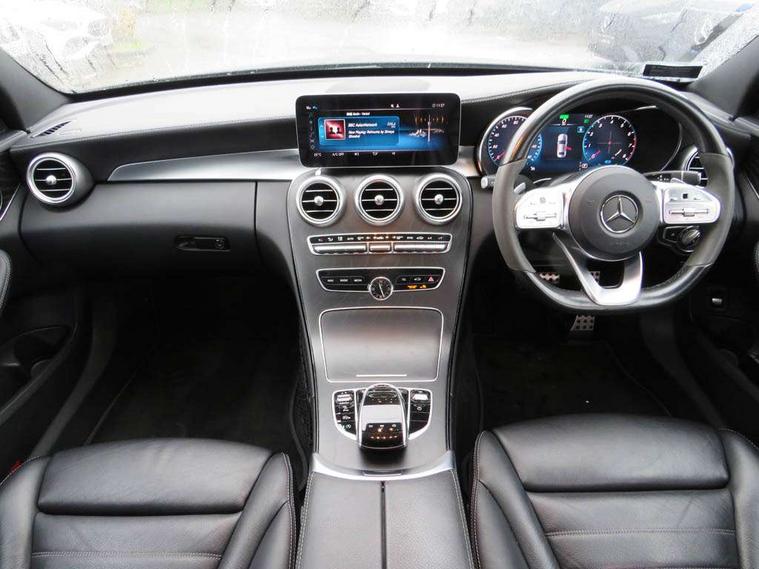 Active park assist with parktronic system, Attention assist, Bluetooth system, Collision prevention assist plus, Comand Online HDD Nav with media interface, radio/CD/DVD/MP3, 10.25 screen, linguatronic voice control, DYNAMIC SELECT with a choice of driving modes (ECO, Comfort, Sport, Sport+ and Individual), Multi function trip computer, Outside temperature gauge, Remote boot release, Reversing camera, Service indicator (ASSYST PLUS), Smartphone integration with Apple CarPlay and Android auto, Wireless charging, Petrol Particulate Filter, 2 USB ports in centre console, DAB Digital radio, Mid-range sound system with 7 speakers and 225W amplifier, SD card slot, Steering wheel mounted audio controls, Adaptive brake lights, Aerial in rear window, AMG body styling, Body coloured bumpers, Body coloured door mirrors, Chrome pins diamond radiator grille with integrated stars, Electric windows one touch open/close, Electrically adjustable and heated door mirrors, Green tinted glass, Heated windscreen washers, LED daytime running lights, LED Indicators, LED tail lights, LED third brake light, Multi beam LED headlights, Rain sensor windscreen wipers, Side windows surround in polished aluminium, Twin exhaust pipes, 2 cupholders in front centre console, 3 spoke flat bottom AMG steering wheel in nappa leather, 40:20:40 split folding rear seats, AMG floormats, AMG sports seats, Auto Mercedes-Benz child seat recognition sensor, Dual zone automatic climate control, Electric front seat height adjustment, Front and rear head restraints, Front centre armrest with storage compartment, Front door sills with Mercedes Benz lettering, Gearshift paddles, Heated front seats, Illuminated glovebox, Interior lighting - 64 colour Ambient lighting, Multifunction steering wheel, Rear top tether child seat ISOFIX attachment, Sports pedals with stainless steel surfaces and rubber studs, Sunvisors with illuminated vanity mirrors, Lighting pack - C class, Mirror pack - C Class, Seat comfort pack - C Class, Stowage space pack - C Class, 3 rear 3 point seatbelts, ABS with Brake Assist, Active bonnet, Adaptive brake system, Black seat belts, Brake calipers with Mercedes-Benz lettering + perforated brake discs, Child proof door locks, Crash sensor, Drivers knee airbag, Drivers pelvis airbag, Dual stage driver/passenger airbags, Electronic parking brake, ESP with ASR, Front passenger seat occupancy sensor, Front side airbags, Hill start assist, Rear seatbelt warning indicator, Tyre pressure monitoring system, Warning triangle and first aid kit, Window airbags, Alarm system/interior protection/immobiliser, Chrome surround in electric key, Remote central locking, Tyre inflation kit,