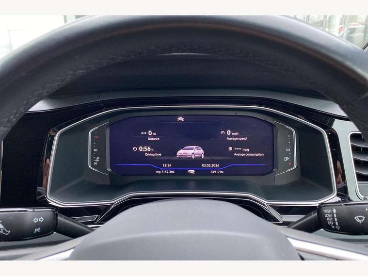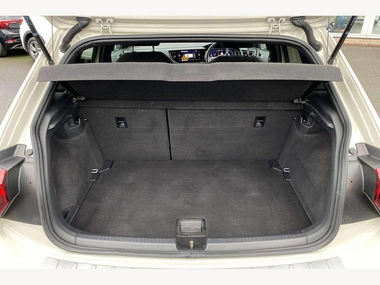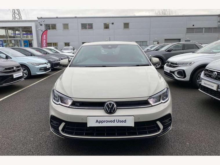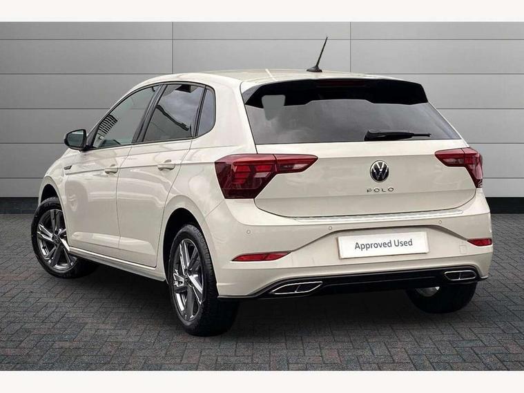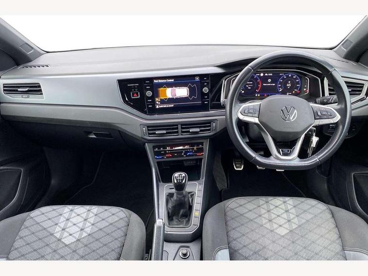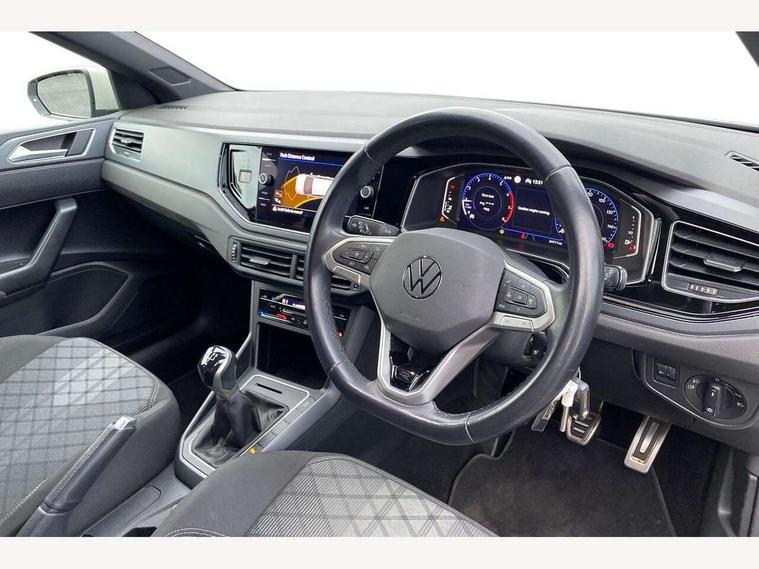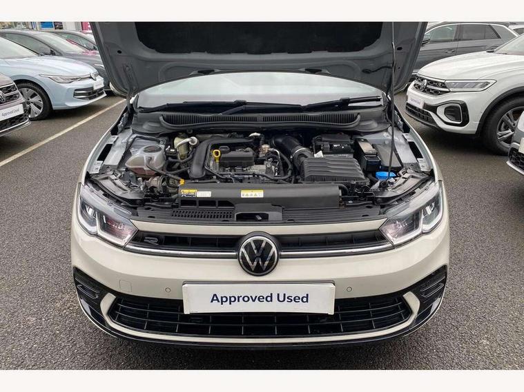 Adaptive cruise control without follow-to-stop and speed limiter, Bluetooth mobile phone interface, Digital Cockpit Pro with 10.25" Display, Driver alert system, Dynamic road sign display, Emergency call service, Power assisted speed sensitive steering, Preparation for We connect and We connect plus, Speedo and rev counter, electronic odometer, trip, service interval display and fuel gauge, Standard rear axle, Travel Assist - Lane keeping system and traffic jam assist, Travel assist including emergency assist, Trip computer, Warning signal and warning light for front and rear seatbelts not fastened, Washer fluid level indicator, Wireless app connect, Front wheel drive, Rear shock absorpion, Start-stop system with battery regeneration (recuperation - energy recovery during braking), DAB Digital radio, Diversity antenna for FM reception, Front and rear 6 speakers, Body colour bumpers, Body colour door handles, Body colour door mirrors, Electric front windows, Front scuff plates with R-Line logo, Heat insulating darkened glass in side and rear windows, Heat insulating glass windscreen, Power folding adjustable/heated exterior mirrors and front passenger exterior mirror lowering function, Rear electric windows, Rear fog light, Rear side wing doors, Rear tinted glass from B-pillar backwards approx 65% tinted, Rear windscreen washer and wiper with interval delay, Third brake light, 12V power socket in centre console, 2 USB-C ports in the front, 2 USB-C charging sockets on the center console in the rear, 3 rear head restraints, 60/40 split folding rear seat and rear seat bench not split, Air care climatronic air conditoning system with active combination filter and 2-zone temperature control, Black roof lining, Ceramique headliner, Chrome plated radiator grille inserts, air vent surrounds and light switch surrounds, Door and side trim panel, Driver and front passenger seat height adjustment, Driver/passenger sunvisors with illuminated vanity mirrors, Front + rear carpet mats, Front centre armrest, Front footwell illumination, Front seat backrest storage pockets, Front sports comfort seats, Handbrake lever handle in leather, Isofix child seat preparation easy-fit (for two outer rear seats, and front passenger seat) compatible with I-size, Karoso artvelours cloth upholstery, Leather trimmed gear knob, LED interior light with switch off delay and dimmer, 2 reading lights front and rear, Luggage compartment cover, Luggage compartment floor, Luggage compartment lighting, Lumbar adjustment for front seats, Multifunction steering wheel, Single front passenger seat, Stainless steel pedals, Standard pedal cluster, Light and sight pack - Polo R-Line/Black Edition, 3 point height adj front seatbelts + pretensioners, 3x3 point rear seatbelts, ABS, Driver and front passenger airbag with front passenger airbag deactivation, Drivers and front passengers safety optimised head restraints, ESC (Electronic stability control) + EDL (Electronic Differntial lock) and ASR (Traction control), Extended and predictive pedestrian/ cyclist protection, Front curtain and side airbags with center airbag, Hill hold control, Manual child lock in rear doors, Single tone horn, Tyre pressure loss indicator, Alarm with interior protection, Anti-theft alarm system with interior monitoring, backup horn, and towing protection, Anti-theft wheel bolts, Electronic engine immobiliser, Chrome applications on rotary light, mirror adjustment, window regulator switches, outlet with frame in black, Dark grey anodised matt decorative inserts in dash and front door panels, Low rolling resistance tyres,
