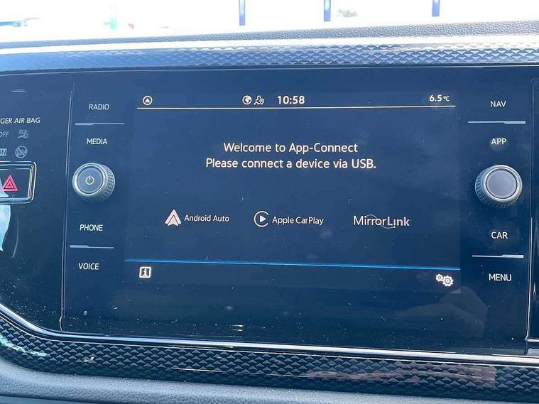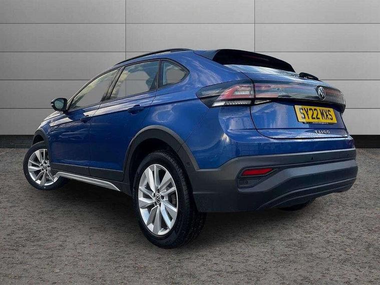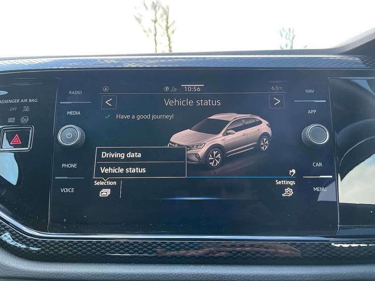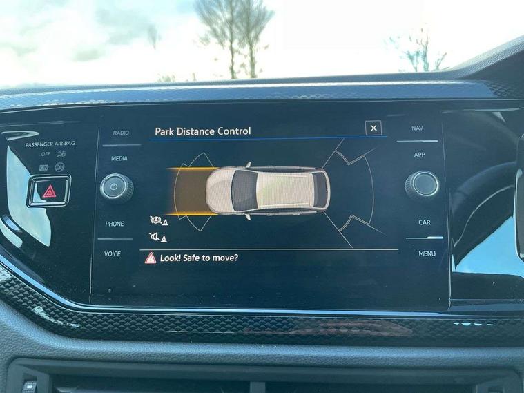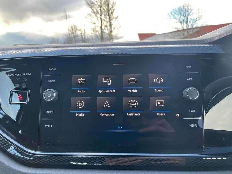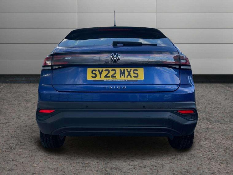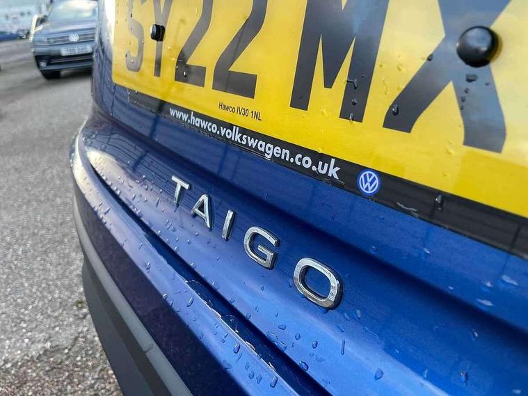App-Connect including App-Connect Wireless, Driver alert system, e-Call (emergency call), Power Steering, Travel assist including emergency assist, Washer fluid level indicator, Wireless Charging including Bluetooth, Start-stop system with battery regeneration (recuperation - energy recovery during braking), Digital radio reception (DAB+), Diversity antenna for FM reception, WeConnect plus, Ambient lighting with logo projection, Aspherical driver's exterior mirror, Body coloured bumpers, Body coloured exterior mirror housings and door handles, Electric windows, External USB type C socket and charging sockets, Front fog lamps with cornering function, Headlight range control, Heat insulating glass windscreen, LED headlamps, LED rear combination lamp, LED third brake light, Left convex exterior mirror, Power folding adjustable/heated exterior mirrors and front passenger exterior mirror lowering function, Rear fog light on one side, reversing light on both sides, Rear wash/wipe with intermittent wipe setting, 'Slash/ Austin' Cloth upholstery, 12V socket in centre console, 2 front reading lights, 3 rear head restraints, Black carpets, Child seat anchor for child seat system i-Size, 2x top tether and child seat anchor in front on front passenger side, Door and side trim panels in titan black, Driver and front passenger seat height adjustment, Front centre armrest, Handbrake lever handle in leather, Height and reach adjustable steering wheel, Leather trimmed gear knob, Leather wrapped multifunction steering wheel, Luggage compartment floor, Luggage compartment light, Lumbar support for driver's and front passengers seat, Seat covers in titanium black, Split folding backrest with centre armrest and unsplit rear seat bench, Storage compartment under front seats, Sun visors with illuminated vanity mirrors, Chrome Package - Taigo, Drivers assistance pack - Taigo, Light and Sight pack including High beam assist - Taigo, 2 x 3-point seatbelts/outer rear seats with ECE label, 3-point seat belts in front with pretensioner and height adjustment, 3-point seatbelt for centre rear seat, Driver and front passenger airbags with front passenger airbag de-activation, front side and curtain airbags, Driver and front passenger safety-optimised head restraints, Electronic stability control, Extended and predictive pedestrian/ cyclist protection, Front and rear disc brakes, Front curtain and side airbags with center airbag, Hill start assist, Single tone horn, Tyre pressure loss indicator, Anti-theft alarm system with interior monitoring, backup horn, and towing protection, Anti-theft wheel bolts, Lava stone black gloss/matt decorative inserts in dash and front door panels, Low rolling resistance tyres,