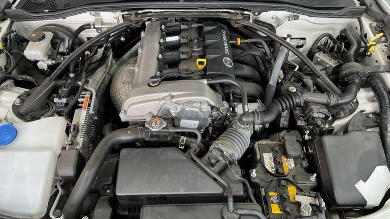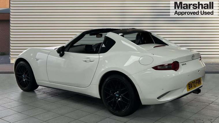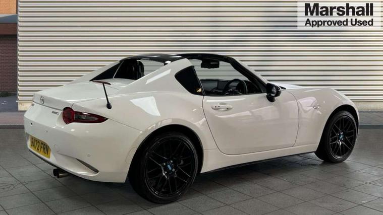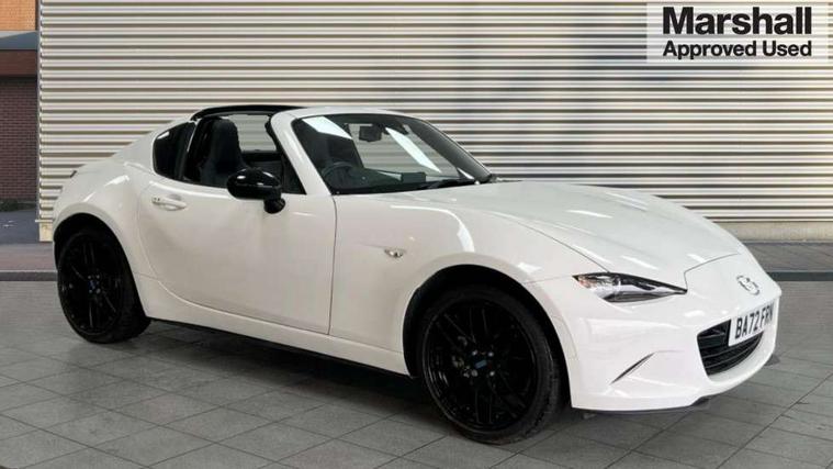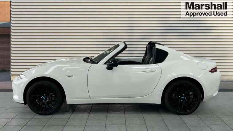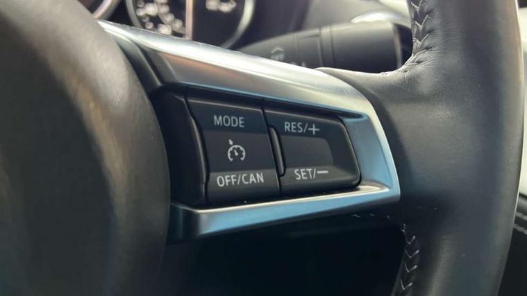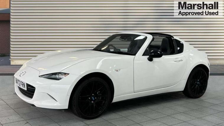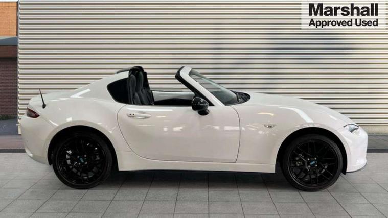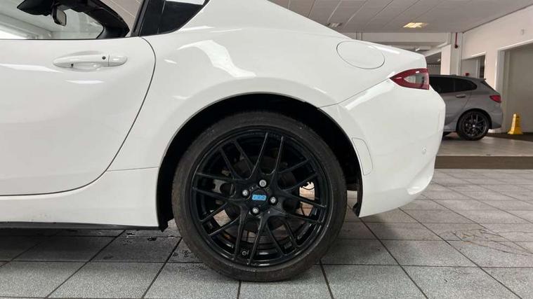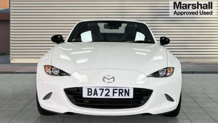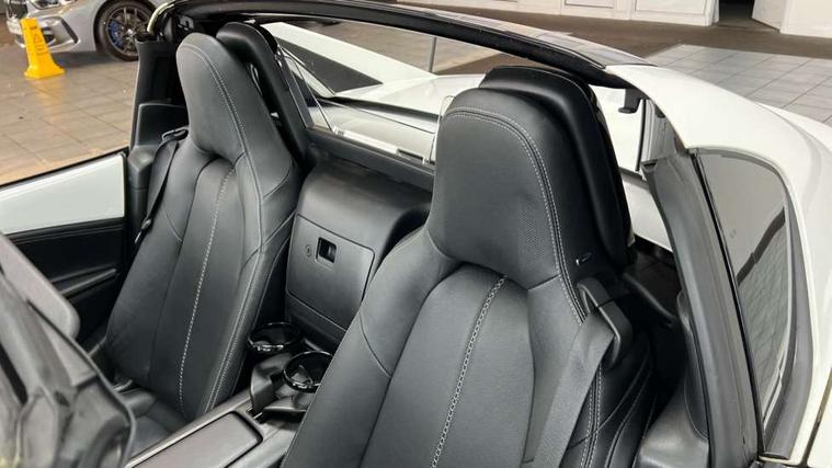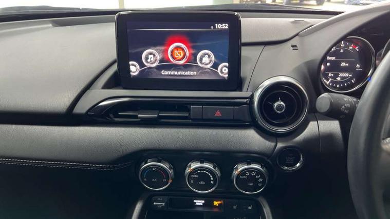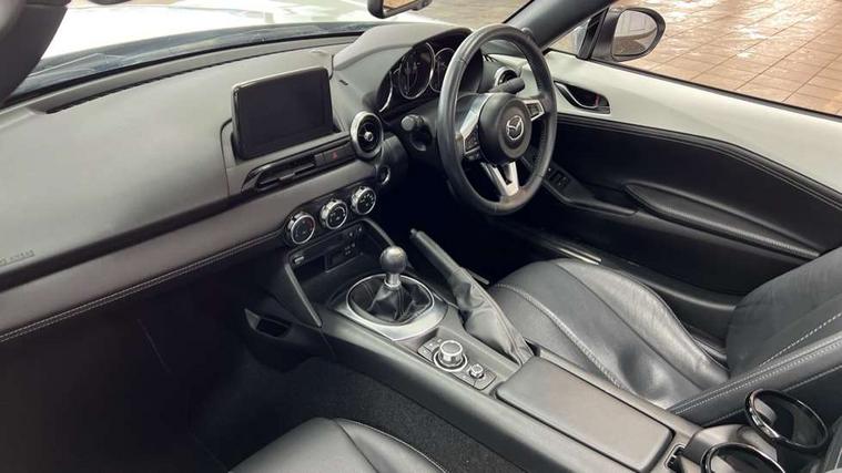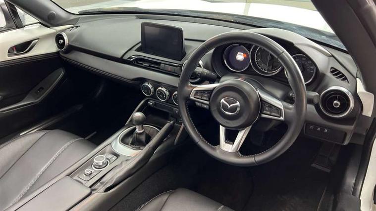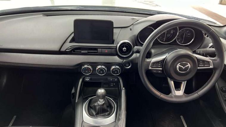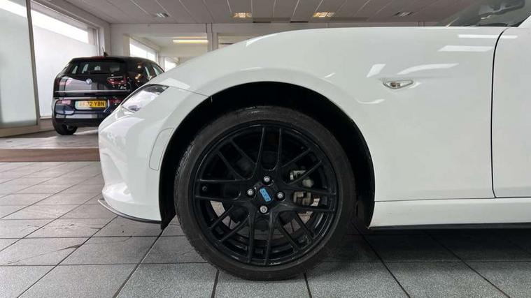 7" colour touch screen with Mazda connect infotainment, Aha and stitcher app, Analogue speedometer, Apple car play/Android Auto, Blind spot monitoring with rear cross traffic alert, Cruise control + speed limiter, Driver alert system, eCall emergency call system, Emergency stop signalling system, Engine start/stop button, Hands free phone preparation, Integrated bluetooth with hands-free calling, bluetooth audio and easy access to phone contacts, Integrated navigation system, Lane departure warning system, Multi dot display tachometer and electric odometer, PAS, Rear parking sensor, Reversing camera, Service indicator, Traffic sign recognition, Trip computer, Water temperature gauge, I-ELOOP, i-stop, Limited slip differential, Sports suspension featuring Bilstein dampers, 2 USB/aux input socket, Multimedia Commander including separate volume dial, Premium Bose sound system with 9 speakers with 2 in each front headrest, AM/FM/DAB radio and MP3, Steering wheel mounted audio/bluetooth controls, Adaptive LED Headlights, Auto dimming rear view mirror, Automatic headlamp levelling, Black scuff plates with stainless steel insert, Body colour bumpers, Body colour co ordinated interior upper door trim, Body coloured electric/heated door mirrors, Coming/leaving home lighting function, Dual exhaust pipes, Dusk sensitive headlamps, Electric front windows/one touch facility, Electrically operated body colour retractable hard top with heated rear glass window, High mounted rear brake light with Black coloured cover, LED 3rd brake light, LED daytime running lights, LED indicator lights, LED rear lights, Piano Black fashion bars, Rain sensing front wipers, Rear boot, 12V socket, Centre console storage box, Chrome Air conditioning dials, Climate control air conditioning, Coin Box, Driver and front passenger sunvisors with covered vanity mirror and driver ticket holder, Driver seat manual slide, recline and tilt adjustment, Front centre armrest, Front head restraints, Gear shift indicator, Heated front seats, in 3 heat levels, Interior courtesy light, ISOFIX front passenger seat child seat compliance, Leather gear knob, Leather handbrake lever, Leather steering wheel, Lockable rear centre box with lid, Passenger seat + manual slide/recline adjust, Perforated leather upholstery, Side door trim in black vinyl with silver stitching, Single front passenger seat, Sports seats, Strut brace, Tilt/telescopic steering column, Transparent windblocker, Two cupholders, 3 point ELR front seatbelts with pretensioners, ABS+Electronic Brake force Distribution, Deployable Hood System (DHS), Driver and front passenger airbags, Driver and passenger seatbelt reminder audible warning, Front dynamic yaw stability control, Hill hold assist, Passenger airbag deactivate switch, SCBS - Smart City Brake Support, rear plus front with autonomous emergency braking, Side airbags, Traction control, Tyre pressure monitor, Remote central locking with deadlocking and remote boot release, Smart keyless entry, Superlocking, Thatcham category 1 alarm + immobiliser, Chrome air vent surrounds, Chrome meter rings, Dashboard panel - vinyl leather Black, 17" Bright Silver alloy wheels, Tyre puncture repair kit,