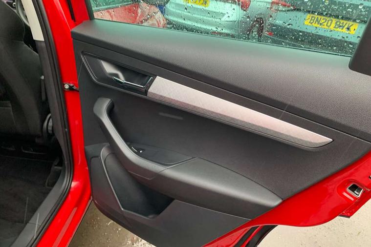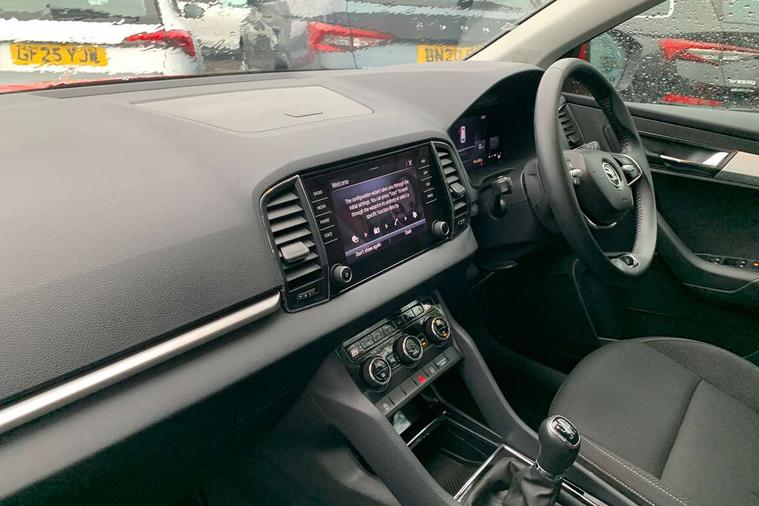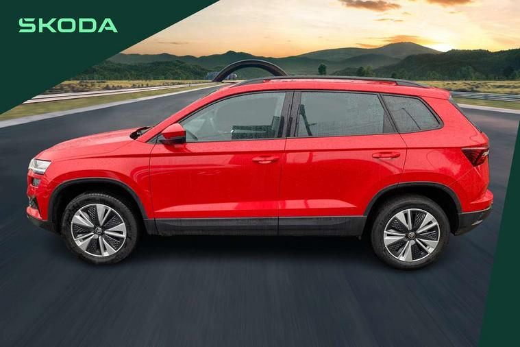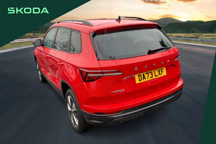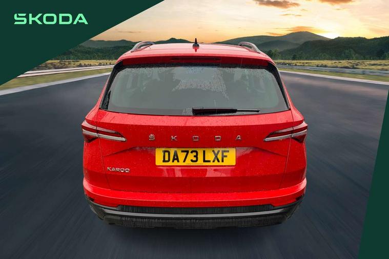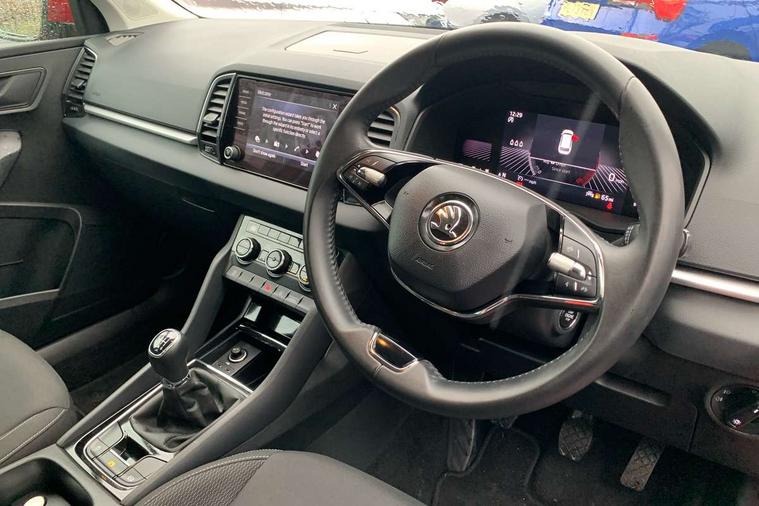 8" Digital display, Amundsen satellite navigation with 8" touchscreen display with maps Europe, WLAN and web radio, Care connect, Driver fatigue sensor, Electro-mechanical PAS, Emergency services call system, Outside temperature gauge, Service interval indicator, SmartLink wireless for Apple and wired for Android, Start/stop system with regenerative braking, USB C Port x 2 in front centre console, Diesel particulate filter, 8 Speakers, DAB radio with Bluetooth, USB connection, Acoustic glass, Aero front windscreen wipers with intermittent function, Auto dimming rear view mirror with light and rain sensors, Black electric window control buttons, Body colour door mirrors and handles, Dynamic headlight range control with cornering light function, Electric front and rear windows with child proof lock, Electrically adjustable heated folding and auto dimming door mirrors, Front fog lights, Heated rear windscreen, LED daytime running lights, LED Headlights, LED rear lights with high functionality welcome effect and dynamic indicators, Light assistant (coming/leaving home/tunnel light), Plastic scuff plates, Privacy glass, Rear side wing doors, Rear window wiper with washer system and intermittent control, Safety reflectors on front doors, Third brake light, 1.5 litre bottle holders in driver and front passenger door panels, 12V socket in boot, 12v socket in front centre armrest with storage compartment and rear air vents, 2 x Tablet holder, 3 rear height adjustable headrests, 3 seat bench in 2nd row, 4 foldable roof handles with rear coat hooks, Black floor carpet, Chrome inner door handles, Double sided boot floor, Driver/front passenger reading lights, Foldable hooks in the boot, Folding tables on the front seat backrests, Front head restraints, Height adjustable driver and passenger seat, Height adjustable front three point seats belts with tensioners, Height/reach adjust steering wheel, Ice scraper, Illuminated glovebox, Illuminated luggage compartment, Interior noise suppression, Isofix child seat preparation for front passenger seat, Isofix child seat preparation outer rear, Manual lumbar support for front seats, Pearl grey interior ceiling, Pen holder, Pollen filter, Rear boot cover, Rear reading lights, Rubbish bin door, Safety vest holder, Single front passenger seat, Storage box in upper central dashboard closed, Sunvisors with illuminated vanity mirrors, Textile floor mats, Ticket holder, Umbrella under passenger seat, Boot pack - Karoq, Automatic door unlocking in case of crash, Automatic fuel cut off in case of crash, Child locks on rear doors, Driver airbag, Electronic parking brake with auto hold function, Emergency rear braking signal, ESC including ABS, MSR, ASR, EDS, HBA, DSR, RBS, MKB and traction control, Front side airbags, Hill hold control, Knee airbags, Passenger airbag with switch-off function, Pedestrian monitor, Seatbelt reminder signalisation and pretensioner for all seats, Three point seatbelts rear, Two tone horn, Tyre pressure display, Tyre pressure monitor, Alarm with interior monitoring, back up horn and tilt sensor with safe function, Electronic engine immobiliser, Remote central locking with 2 remote folding keys, Black centre console, Chrome framed air vents, Satin black dashboard, Satin black door trim, Anti-theft wheel bolts protection, Storage on wheel cover, Tool kit,