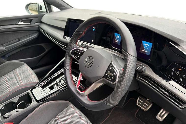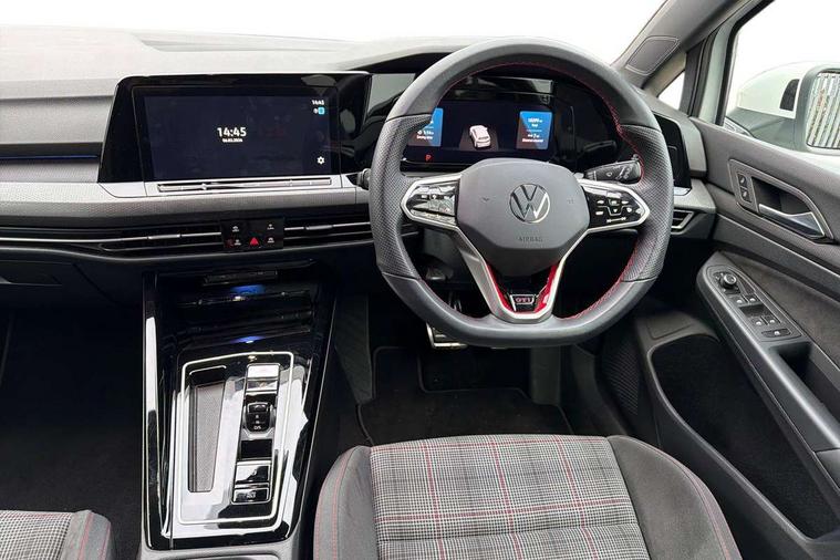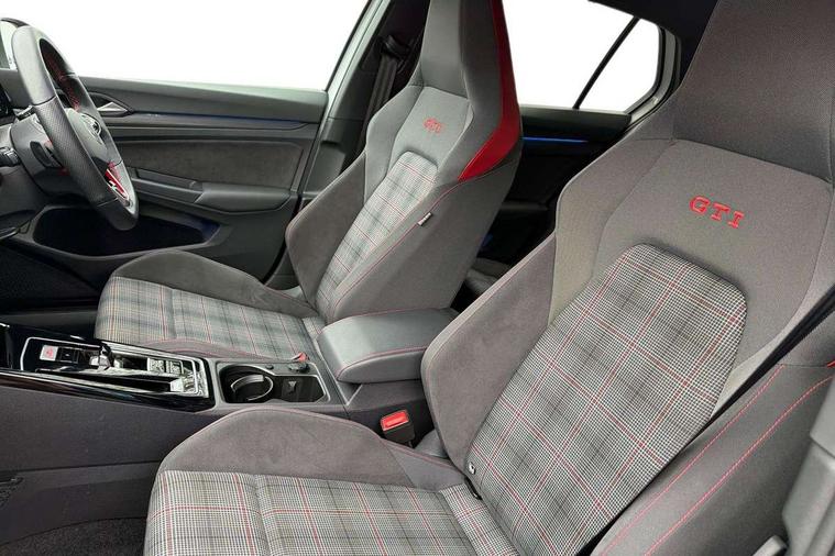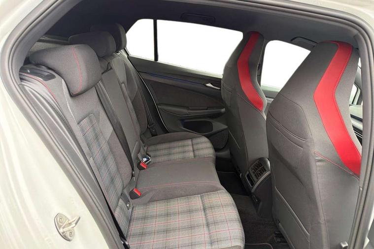 Adaptive cruise control (ACC) with speed limiter and front assist (reacting to vehicles pedestrians and cyclists), Car2X communication, Digital cockpit pro - 10.25" high resolution TFT dash display screen with customizable menus and information, Driver alert system, Dynamic road sign display, eCall - Emergency call service for SOS calls to emergency response, Lane assist, Lane change assistant, Mobile phone interface with wireless inductive charging function, Multifunction camera for distance control, PAS, Speedo, rev counter, electronic odometer, trip, service interval display, exterior temperature and fuel gauge, Start/Stop function, Travel assist with emergency side assist with electrically foldable door mirrors, USB-C ports in the front and rear centre console with increased charging performance, Warning buzzer and light for front seatbelts unfastened, Wireless app connect, Front differential lock, Petrol Particulate Filter, XDS electronic differential lock for improved traction and handling, Premium USB cable in choice of either Apple or Android smartphone compatibility, Ambient lighting, exterior illuminated styling elements at the sides, Auto dimming rear view mirror, Automatic headlamp activation with Coming home and Leaving home feature, Automatic headlights, Body colour bumpers, Body colour door handles, Body colour door mirrors with integrated indicators, Body colour rear roof spoiler, Chrome plated tailpipes (1 either side), Front and rear electric windows, GTI style bumpers, Heat insulating glass windscreen, Heated rear windscreen, High level 3rd brake light, Highway light, Illuminated front grille, IQ.Light - LED Matrix headlights, dynamic headlight control with advanced high beam control matrix dipped main beam + LED DRL + 22 LED lights, LED front fog lights with 5 honeycomb design, LED License plate illumination, LED rear combination lamp inlcuding dynamic turn signal, Rain sensor, Rear fog light on one side and reversing lights on both sides, Rear side wing doors, Rear tinted glass 65% light absorbing from B pillar backwards, Rear windscreen washer and wiper with interval delay, Remote electrically heated, adjustable and foldable door mirrors, including door mirror puddle lights and reverse activated kerb-view adjustment on pa, Welcome light, 12V socket in front centre console, 12V socket in luggage compartment, 3 rear head restraints, 3 seat bench in 2nd row, 3 zone climate with controls in the rear, Aluminium gear knob, Ambient lighting - Customisable 30 colour ambient lighting, Brushed stainless steel pedals, Chrome plated surround to electric mirror button, window switch and air vent surrounds, Drivers and front passengers sun visors with vanity mirrors, Front + rear carpet mats in recycled material, Front centre armrest with storage compartment, Front cupholders x 2, Front passenger seat, Front reading lights x 2 incorporating LED technology, Front seat lumbar support adjuster, Front sports seats, Glovebox, GTI logo on backrest, Height adjustable front seats, Height and reach adjustable steering wheel, Isofix child seat preparation for 2 rear child seats and front passenger seat, Leather wrapped multifunction sports heated steering wheel with red stitiching + paddle shift, Leatherette door armrests and centre armrest, Luggage compartment lighting, Removable luggage compartment cover, Soul black instrument panel, Soul black roof lining, Split folding backrest with centre armrest and unsplit rear seat bench, Woven fabric storage compartments in front and rear doors, 3 point height adj front seatbelts + pretensioners, 3 rear three point seatbelts, ABS, Child locks on rear doors, Driver and front passenger airbag with front passenger airbag deactivation, Drivers and front passengers safety optimised head restraints, Electronic parking brake with auto hold, ESC (Electronic Stability Control), Extended pedestrian protection measures, Front and rear passengers curtain airbag system including front side airbags, Front centre airbag, Front disc brakes, Front side airbags with curtain airbags, Rear disc brakes, Two tone horn, Tyre pressure monitoring system, Alarm with interior protection and deactivation via infotainment system, Electronic engine immobiliser, Keyless entry with start/stop button on centre console, Black metal chrome decorative inserts in dash and front door trim panels, High gloss black centre console,