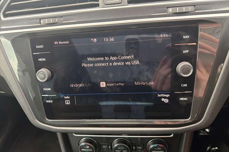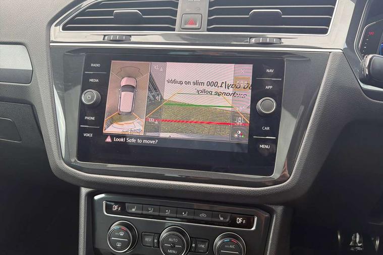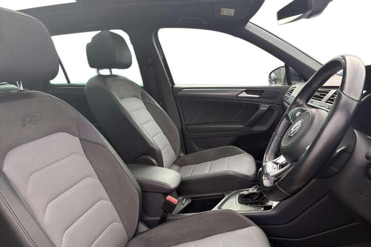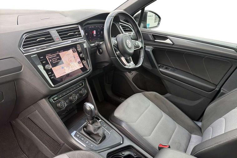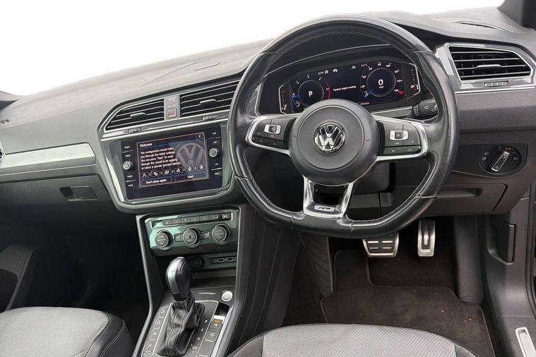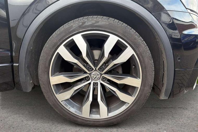 2D/3D map view, Active information display, Adaptive cruise control, App-Connect, Area view with park assist steering and front and rear parking sensors, Bluetooth phone integration system, Car information display, Distance control assist, Driver alert system with fatigue detection, Driver profile selection, Front assist, radar sensor controlled distance monitor, city emergency braking + predictive pedestrian protection, Fully electric tailgate + keyless entry and start, Instrument cluster, Lane assist, Lights on warning, Multifunction computer with visual gear change recommendation for fuel consumption, Outside temperature display, Progressive power assisted steering, Service interval indicator, Speed limiter, Start/Stop function, Warning sound and light for doors and tailgate open, Battery regeneration during braking, Diesel particulate filter, Misfuel prevention device for diesel engine, XDS electronic differential lock for improved traction and handling, 2 x USB connection + USB charging socket, 4 X 20 watt output, DAB Digital radio, SD card slot, Simultaneous pairing of 2 compatible mobile devices, SMS functionality - read, compose and send SMS messages using touch-screen display, Title and cover art display, 3D effect cherry red LED rear tail lights, Aluminium decorative inserts in dash and door panels, Auto dimming interior mirror, Automatic activation of hazard warning lights, Body colour door handles, Body colour door mirrors, Body colour rear spoiler, Body colour side skirt, Body coloured bumpers, Chrome side window surrounds, Chrome trimmed radiator grille, Coming/leaving home lighting function, Dusk sensor + auto driving lights, Electric panoramic sunroof with sunblind, Electrically heated and foldable door mirrors, door mirror puddle lights and reverse activated kerb view adjustment on passenger's door mirror, Front and rear electric windows, Heated rear window, High level 3rd brake light, LED headlights with dynamic light assist daytime running lights and cornering front fog lights, LED rear number plate lights, Piano black front air intake and rear diffuser, R Line body kit, R Line side sills, Rain sensor windscreen wipers, Rear tinted glass from B-pillar backwards approx 65% tinted, Rear windscreen washer and wiper with interval delay, Side skirts and rear bumper with chrome insert, Silver front underbody protection and rear diffuser, Silver roof rails, Trailer Stability Programme, Unique R Line badging, Windscreen wipers/ intermittent wipe + 4 position delay, 12V socket in centre console storage area, 2 cup holders in front, 3 rear headrests, 3 zone climate control, 4 load lashing points, 40:20:40 split folding rear seats, Bag hook in luggage compartment, Black headlining, Foldable front passenger seat backrest, Front + rear carpet mats, Front centre armrest with 12v socket, Front centre armrest with storage + rear 2 air vents, Front seat back storage pockets, Front seat R Line logo with rear seat backrest, Front seatback folding tables, Height/reach adjust steering wheel, Illuminated driver/passenger vanity mirrors, Illuminated scuff plates, Instrument lighting white adjustable panel illumination, Interior light with delay, Isofix Preparation 2 Rear child seats, Leather gear knob, Load through provision with 2 cupholders when folded, Lockable cooled glovebox, Luggage compartment lighting, Map pockets on front seats, Passenger seat height adjuster, Removable luggage cover, Sliding/reclining rear seats, Stainless steel pedals, Storage compartment in driver's door, Storage compartment in passenger's door, Storage compartment in rear doors, Storage compartments in luggage area left and right, Storage tray on dashboard, Sunglasses storage, Three spoke leather trimmed multifunction steering wheel with aluminium inserts and R Line Logo including paddle shift, Unique R Line door sill protectors, Variable boot floor, height adjustable and removable, Ambient lighting pack - Tiguan, R Line styling pack - Tiguan, 3 rear 3 point seatbelts, ABS+EBD+Brake assist, Active bonnet, Active pedestrian safety system, Curtain airbags, Driver/Front Passenger airbags, Driver/Passenger whiplash optimised head restraints, Drivers knee airbag, DTC - Drag torque control, Electronic parking brake with auto hold, ESC with EDL, ASR, EDTC and trailer stabilisation function, First aid kit, Front seat side impact airbags, Front side airbags, Front ventilated disc brakes and rear disc brakes, Head airbag system, Height adjustable front 3 point seatbelts + pretensioners, Hill hold control, Passenger airbag deactivate switch, Passenger knee airbag, Pre crash preventive occupant protection, Rear side airbags, Rigid safety cell with front and rear crumple zones, Two tone horn, Warning sound and light for front seat belts if unfastened, Warning triangle, Alarm with interior protection, Electronic engine immobiliser, Remote central locking with 2 remote folding keys, Chrome door trim inserts, Dark grey decorative inserts in dash and door panel, Piano black decorative inserts in centre console, 20" Suzuka alloy wheels with mobility self sealing tyres + anti theft wheel bolts, Steel space saver spare wheel,