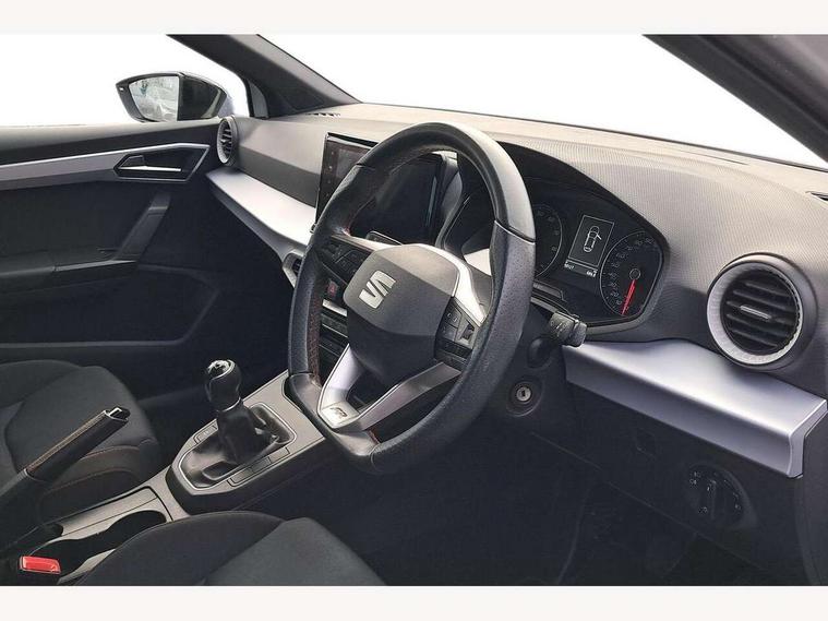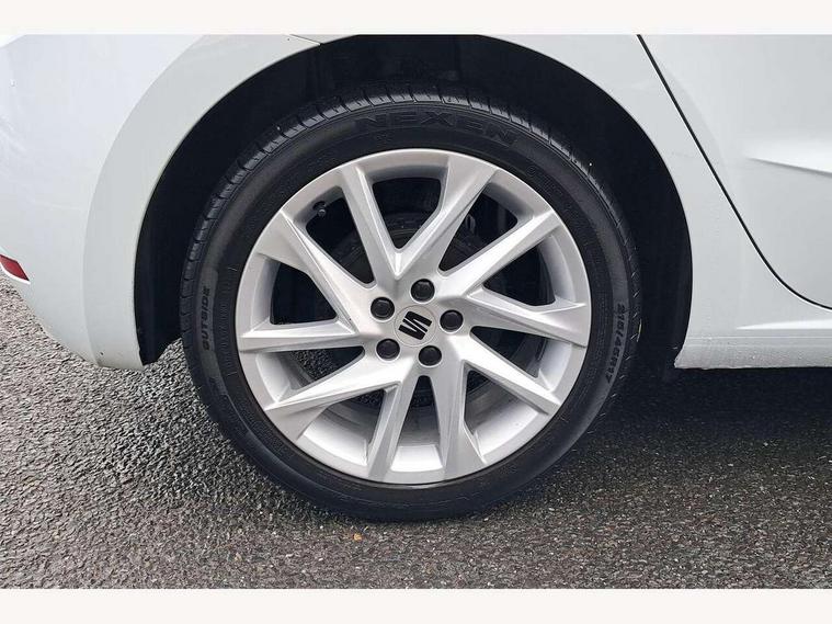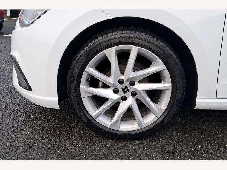 'Lights On' Reminder warning buzzer, 9.2" touchscreen navigation system with type C USB socket, Voice control and DAB/AM/FM radio, Auto start and stop system, Bluetooth audio streaming with handsfree system, Digital clock, E-call, Full link smartphone integration with mirror link, wireless apple carplay, Google android auto + USB Type C cable for apple and android devices, Lane assist, Low fuel warning light, Outside temperature gauge, Power Steering, Seat connect with safety, service, remote and online, SEAT drive profiles and ECO function, SEAT logo boot release, Speed limiter, Trip computer, Sports suspension, Auxiliary input socket, Radio/MP3 player, SD card slot, Steering wheel mounted controls, Anti theft roof antenna, Auto dimming rear view mirror, Automatic rain sensing wipers, Black door mirrors, Body colour bumpers, Body colour door handles, Brilliant black window surrounds, Dark tinted rear windows, Electric adjustable/heated/folding door mirrors, Electric front windows, Electric headlight adjustment, Electric rear windows, Front/rear fog lights, FULL LED automatic headlights with dynamic headlight range control, coming and leaving home, LED daytime running lights, LED tail lights, Rear roof spoiler with FR twin exhausts, Rear side wing doors, Rear wiper, Third brake light, 3 seat bench in 2nd row, 60/40 split folding rear seat, Ambient interior lighting, Chrome detailing and black headlining, Cloth upholstery, Dual zone climate control with combination filter, Front courtesy lights, Front cupholders x 2, Front reading lights, Gear shift indicator, Glovebox, Height adjustable front and rear headrests (five), Height adjustable front seats, Height/reach adjust steering wheel, Illuminated air vent surrounds, Illuminated boot, Instrument lighting with brightness control, Isofix, Leather multifunction flat bottomed sports steering wheel, Passenger sunvisor, Single front passenger seat, Sports seats, Sunvisors with mirror and driver side card holder, 3 point seatbelts on all 3 rear seats, ABS, Active front headrests, Child locks on rear doors, Electronic stability control, Energy recovery system, Front assist forward collision warning and autonomous emergency braking, Front driver and passenger side airbags with curtain airbag and front passenger airbag deactivation, Hill hold control, Multi-Collision braking, Seat belt reminder for front and rear seats, Tiredness recognition system, Tyre pressure monitoring system, Electronic engine immobiliser, Locking wheel bolts, Perimeter alarm and interior monitoring with backup horn and tow away protection, Remote central locking + deadlocks, 17" Alloy wheels in Brilliant silver,