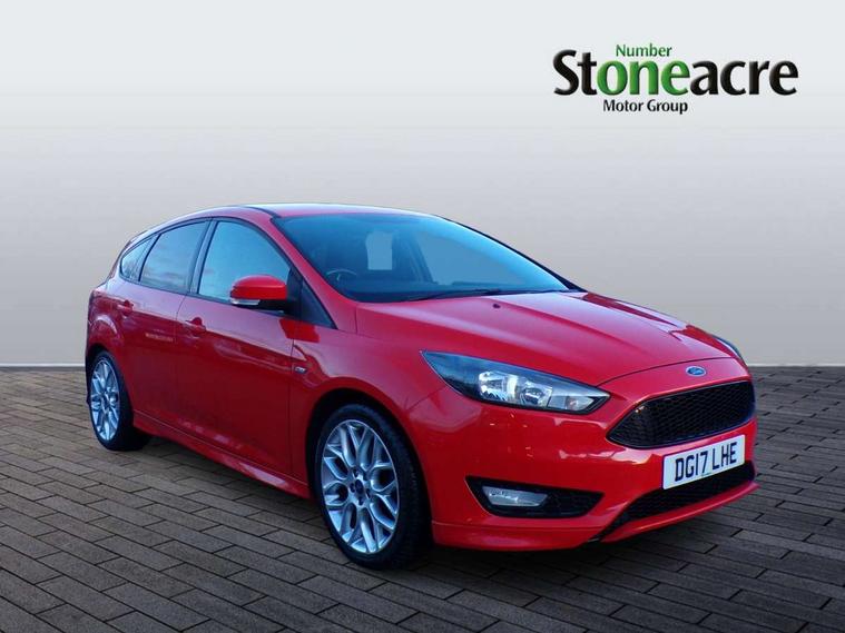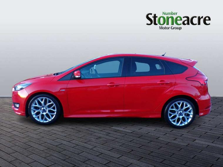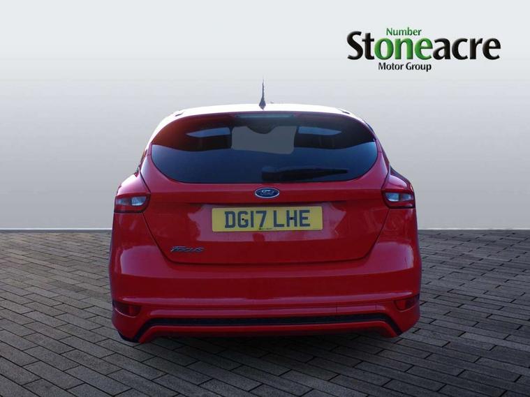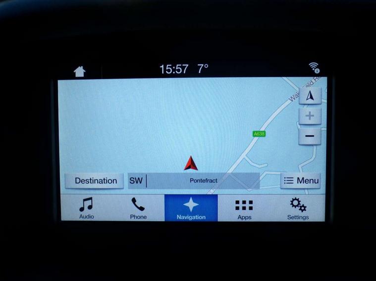 Digital clock, Easy fuel capless refuelling system, Eco mode, Electric boot release, PAS, TFT cluster screen, Trip computer, Diesel particulate filter, Sports suspension, Aux input, Steering column with mounted audio controls, SYNC 2 DAB radio/CD, 8" colour touch screen, emergency assistance, Bluetooth connection, advanced voice control, USB connection, 'Quickclear' heated windscreen/heated washer jets, Black honeycomb front grille, Body colour bumpers, Body colour door handles, Body colour door mirrors, Body colour rear spoiler, Body colour side skirt, Body styling kit, Chrome finish on upper door line, Electric adjustable heated door mirrors, Front fog lights, Front variable intermittent wipers with electric wash, Heated rear window, LED daytime running lights, Tailgate wash/wipe, 3 spoke sports leather steering wheel, 60/40 split back and cushion rear seats with 2 height adjustable headrests, Air conditioning - CFC-free, Black headlining, Centre console with sliding front armrest, Cloth upholstery, Driver's seat manual height adjust, Driver's seat with adjustable lumbar support, Front floor mats, Height adjustable front headrests, Isofix child seat preparation, Reach + rake adjustable steering column, Sports pedals, Sports style front seats, Stainless Steel Scuff Plates, ABS+Electronic Brake force Distribution, Driver airbag, ESP with traction control + emergency brake assist, Front inertia reel height adjustable seatbelts with pre-tensioners, Front passenger airbag, Front side airbags, Hill start assist, Side curtain airbags, Three rear inertia reel lap/diagonal seatbelts, Torque vectoring brake, Tyre pressure monitoring system, Immobiliser-Passive Anti-Theft System (PATS), Keyless Start, MyKey system, Remote central double locking, Thatcham Cat.1 alarm, Contrast stitching - Red, Mini steel spare wheel,