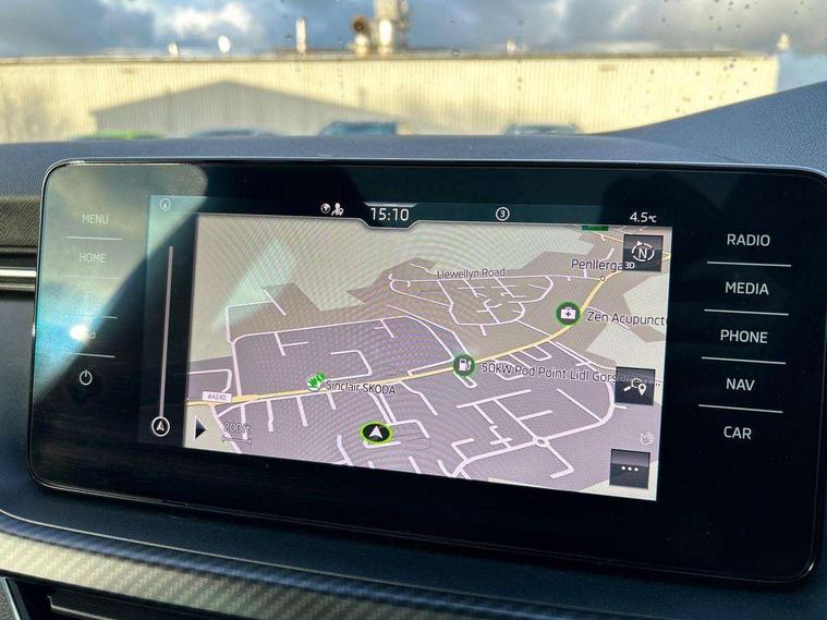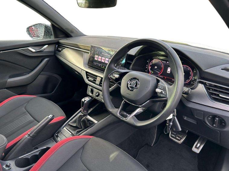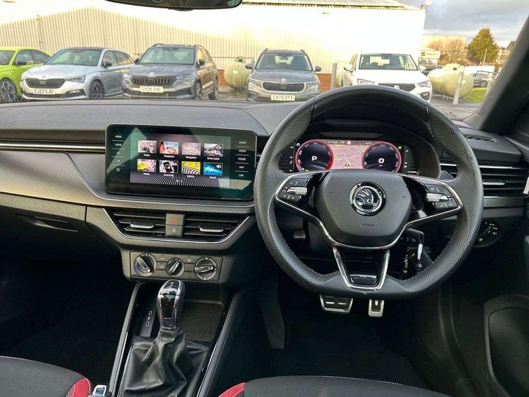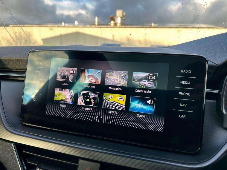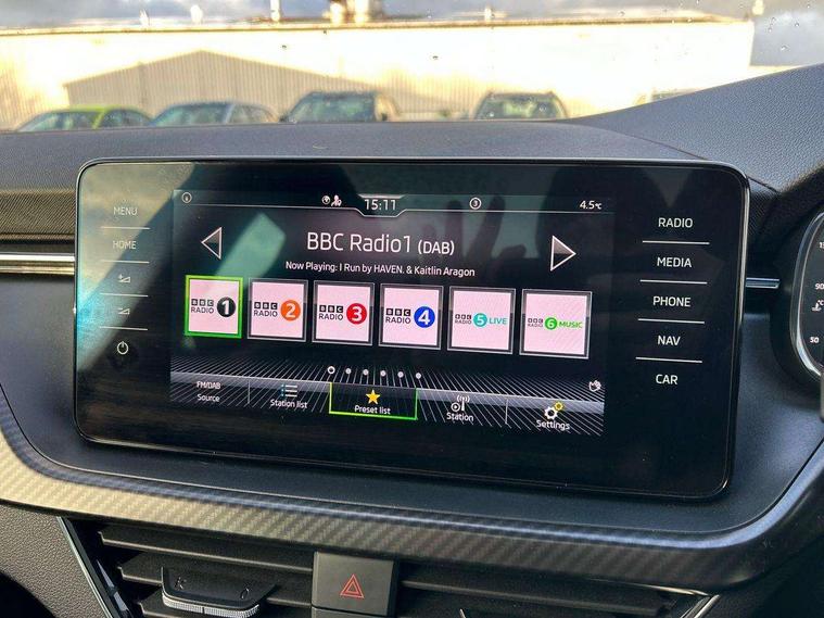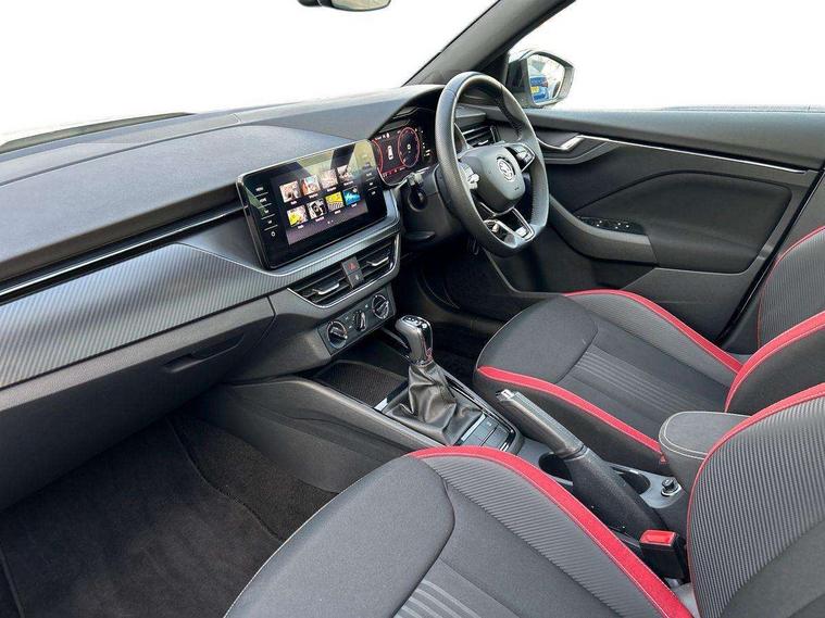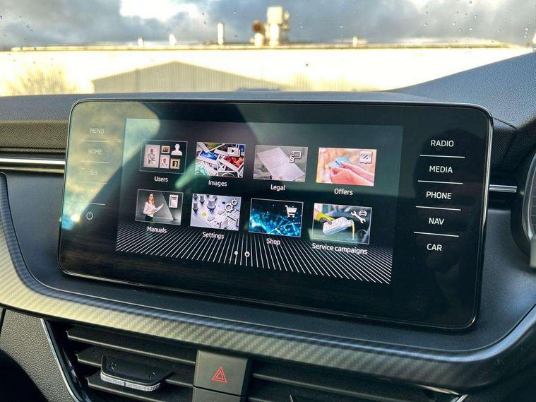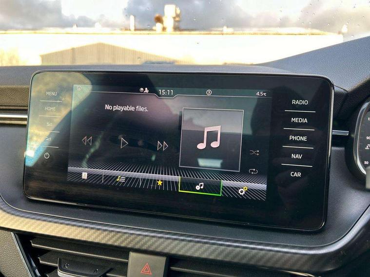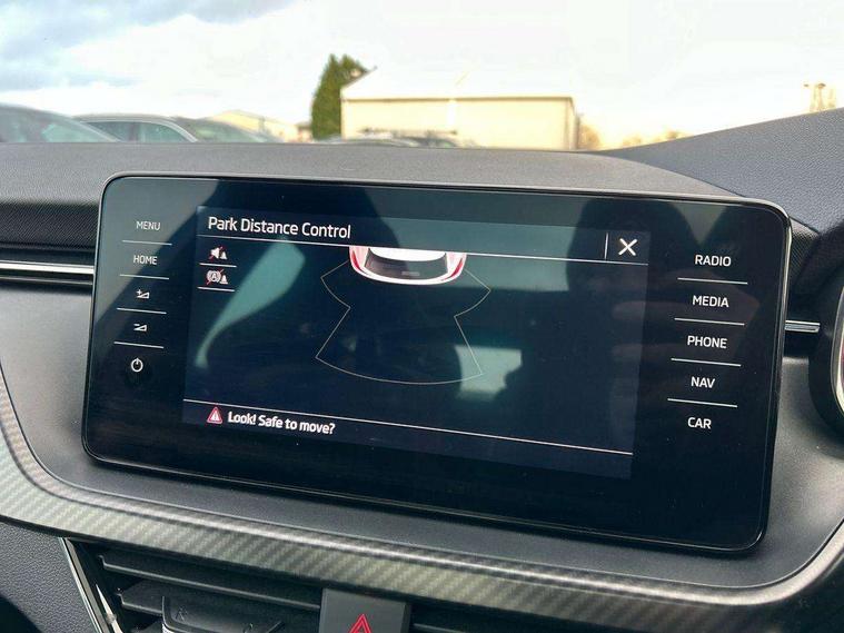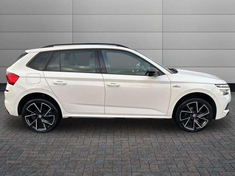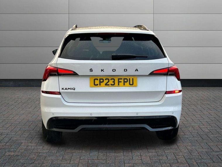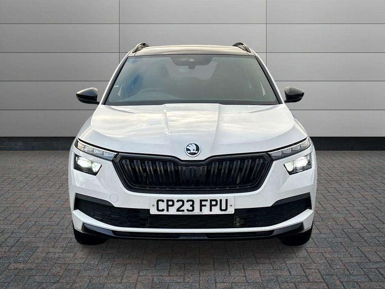Amundsen satellite navigation with 9.2" glass colour touchscreen display, web radio, voice control and traffic sign recognition, Bluetooth system, E-call, Front assist system, Gesture control, PAS, Service indicator, Speed limiter, Wireless Smartlink for Apple CarPlay (wired for Android Auto), 8 speakers, Auxiliary input socket, DAB Digital radio, Black door mirrors, Black radiator grille, Black rear diffuser, Body colour bumpers, Body colour door handles, Body colour roof spoiler, Boot lettering in black, Chrome grille surround, Dimming rear view mirror with black surround, Electrically adjustable and heated door mirrors, Front and rear electric windows, Front sport bumper, Full LED headlights with adaptive front light system, cornering function, fog lights and dynamic indicators, Headlight range control, Heated rear window, High functionality rear led lights with dynamic indicators, KAMIQ Door sills, LED daytime running lights, LED third brake light, Light sensors, Monte carlo plaque, Panoramic sunroof with black roof rails, Privacy glass, Rain sensor, Rear fog lights, Rear side wing doors, Rear wiper, 12V Accessory socket in centre console, 3 seat bench in 2nd row, Aluminium pedals, Black ceiling for black/beige interior, Black roof lining, Chrome inner door handles, Cloth upholstery, Front head restraints, Glove compartment with illumination, Ice scraper, Isofix child seat fittings on outer rear seats, ISOFIX on front passenger seat, Leather gear lever, Manual lumbar support for front seats, Rake/reach adjustable steering wheel, Reading lights, Single front passenger seat, Sports seats, Sun visors with illumination on front passenger, Textile floor mats, Third rear headrest, Top tether for front passenger seat, Umbrella in driver's door, 3x3 point rear seatbelts, Airbags - driver and front passenger, ESP, Front passenger airbag deactivation switch, Front side airbags with curtain airbags, Hill hold control, Manual parking brake, Manual rear child locks, One tone horn, Rear disc brakes, Seatbelt reminder for driver an co-driver, Traction control, Tyre pressure monitor, Anti-theft alarm system with interior monitoring, backup horn, towing protection and remote central locking with SAFE system, Anti-theft wheel bolts, Electronic engine immobilizer, Chrome air vent surrounds, 18" Vega alloy wheels in black,