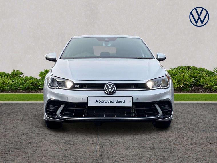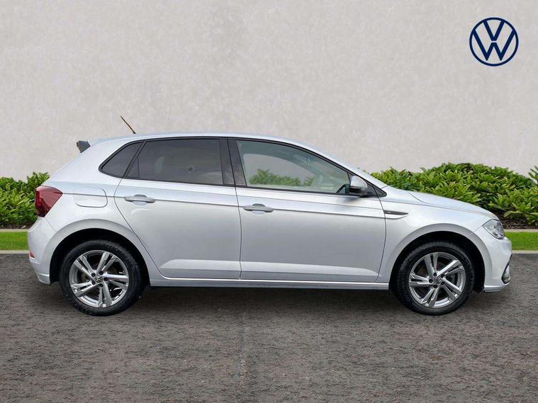 Adaptive cruise control with follow-to-stop and speed limiter, Advanced driver attention and drowsiness monitor, Bluetooth mobile phone interface, Digital Cockpit Pro with 10.25" Display, Dynamic road sign display, Emergency call service, Multifunction camera, Power assisted speed sensitive steering, Preparation for We connect and We connect plus, Speedo and rev counter, electronic odometer, trip, service interval display and fuel gauge, Standard rear axle, Travel Assist - Lane keeping system and traffic jam assist, Travel assist including emergency assist, Trip computer, Warning signal and warning light for front and rear seatbelts not fastened, Washer fluid level indicator, Wireless app connect, Front wheel drive, Rear shock absorpion, Start-stop system with battery regeneration (recuperation - energy recovery during braking), DAB Digital radio, Diversity antenna for FM reception, Front and rear 6 speakers, Body colour bumpers, Body colour door handles, Electric front windows, Front scuff plates with R-Line logo, Heat insulating glass windscreen, Power folding adjustable/heated exterior mirrors and front passenger exterior mirror lowering function, Rear electric windows, Rear fog light, Rear side wing doors, Rear windscreen washer and wiper with interval delay, Third brake light, 12V power socket in centre console, 2 USB-C ports in the front, 2 USB-C charging sockets on the center console in the rear, 3 rear head restraints, 60/40 split folding rear seat and rear seat bench not split, Air care climatronic air conditoning system with active combination filter and 2-zone temperature control, Black roof lining, Carpet mats, front and rear, Chrome plated radiator grille inserts, air vent surrounds and light switch surrounds, Door and side trim panel, Driver and front passenger seat height adjustment, Driver/passenger sunvisors with illuminated vanity mirrors, Front centre armrest, Front footwell illumination, Front seat backrest storage pockets, Front sports comfort seats, Handbrake lever handle in leather, Headliner in recycled material, Isofix child seat preparation easy-fit (for two outer rear seats, and front passenger seat) compatible with I-size, Karoso artvelours cloth upholstery, Leather trimmed gear knob, LED interior light with switch off delay and dimmer, 2 reading lights front and rear, Luggage compartment cover, Luggage compartment floor, Luggage compartment lighting, Lumbar adjustment for front seats, Single front passenger seat, Stainless steel pedals, Standard pedal cluster, Three spoke leather wrapped multifunction steering wheel with shifting paddles, Light and sight pack - Polo R-Line/Black Edition, 3 point height adj front seatbelts + pretensioners, 3x3 point rear seatbelts, ABS, Driver and front passenger airbag with front passenger airbag deactivation, Drivers and front passengers safety optimised head restraints, ESC (Electronic stability control) + EDL (Electronic Differntial lock) and ASR (Traction control), Extended and predictive pedestrian/ cyclist protection, Front curtain and side airbags with center airbag, Front/rear disc brakes, Hill hold control, Manual child lock in rear doors, Single tone horn, Tyre pressure loss indicator, Alarm with interior protection, Anti-theft alarm system with interior monitoring, backup horn, and towing protection, Anti-theft wheel bolts, Electronic engine immobiliser, Chrome applications on rotary light, mirror adjustment, window regulator switches, outlet with frame in black, Dark grey anodised matt decorative inserts in dash and front door panels, 16" Coventry alloy wheels, Low rolling resistance tyres,