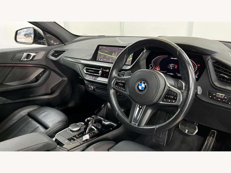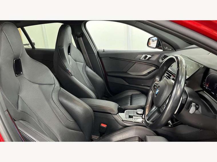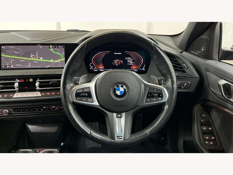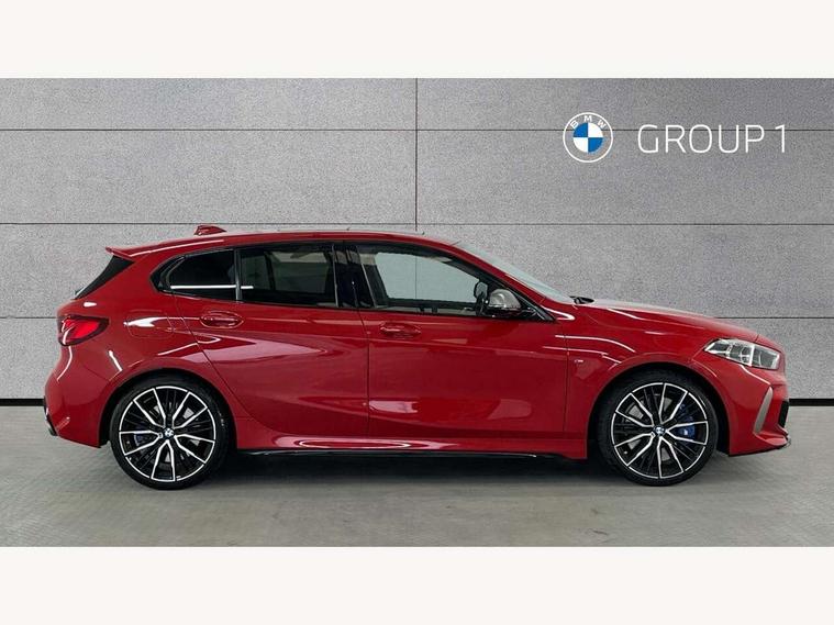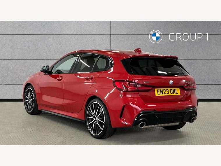 Active guard plus, Attentiveness assist, BMW ConnectedDrive online services, BMW Teleservices, Check Control warning system for monitoring of lights and door/luggage compartment open warning, Cruise control with speed limiter, Eco pro mode, Electric power steering, Electro hydraulically controlled multi-plate clutch transfers drive to rear axle and with power take-off device located on the front differential., Energy efficient operating strategy, Front axle single joint with specific axle kinematics to minimise drive influences on steering + provide increased rigidity agile driving behaviour, Gearshift time display in manual mode, Integrated owners handbook, Lane departure warning system, M Sports steering with M135i xDrive specific settings, Oil sensor for level and grade, On board computer, Optimum shift indicator, Personal Profile, Pull away assistant, Rigidly mounted rear subframe - Multi link construction with separate spring / damper configuration and excellent driving characteristics, Speed limit Info including no-overtaking indicator, Sporty fast gear shifting in sport mode, Aluminium lightweight construction, Anti roll bar front and rear, Balancer shaft, Double VANOS, Drive Performance Control, Eight speed sport automatic transmission with gearshift paddle switches, Electronic differential lock, Electronic selector lever, Engine cover with M performance designation, High precision injection, Larger fuel tank capacity (50 litres), Launch control, M135i specific heavily de-throttled engine intake air guide, M135i specific high-performance cooling package, M135i specific larger turbocharger with integrated divert-air valve, Petrol Particulate Filter, Twin tube gas filled shock absorbers with degressive characteristic curve, VALVETRONIC engine management, Variable, stepless and infinitely adjustable distribution of drive torque between the front and rear axles, xDrive intelligent all wheel drive with M135i specific reinforced components, DAB Digital radio, Auto dimming rear view mirror, Automatic headlight beam throw control, Automatic windscreen wipers and automatic headlight, Body colour door handles, Body colour roof trims, Cerium grey exterior mirror caps, Direction indicator side lights in exterior mirrors, Electrically adjustable exterior mirror with mirror adjustment switch on drivers armrest and aspheric on driver side, convex on passenger side, Exhaust tailpipe, Cerium Grey with bevelled finish - twin, round 100mm, left and right split, Fading support, Folding side mirrors with auto dimming/folding wing mirrors with auto dimming, Follow me home headlights, Front and rear bumper system with replaceable deformation elements, Front and rear electric windows with open and close fingertip control, anti trap facility and comfort closing, Front door sill finishers with M135i designation, Green tinted heat protection glazing, High gloss shadowline window frame, Recess cover mirror frames and B/C pillar embelisher trim, High level third brake light, Integrated front windscreen with washer jets, Kidney grille frame in Cerium Grey with Mesh design, LED daytime running lights, LED eyebrow turn indicators, Lightweight engineering, M logo designation side in cerium grey, M Performance exhaust system with valve control and minimised exhaust back pressure, M Performance specific setup, M Sport spoiler, Matt black air guide grilles, Matt black wheel arch trim, Model designation on electric bootlid includes xDrive designation for M135i xDrive, Nearside reverse light in rear light cluster, Preparation for high beam assistant, Rear fog lights, Rear side wing doors, Rear window wiper, Reinforced crank drive, new pistons and adapted con rods, Shark fin antenna, Trailer stabilisation logic, Visible VIN plate, Welcome lighting, 12V power socket in front centre console with blanking plug, 3 rear seat head restraints, 3 seat bench in 2nd row, 3 spoke sports leather steering wheel with black leather and stitching, pearl chrome decorative finish, specific M Badge, Anthracite headlining, Black boot net with lashing eyes, Cargo function on 2nd seat row, Child seat ISOFIX attachment for two outer rear seats and front passenger seat with anchorage points, Conditioned based service, Driver and front passenger backrest net on rear, Driver and front passenger seat heating, Driver side folding compartment in instrument panel, Folding rear clothes hook, Four grab handles integrated in roof lining, Front and rear door pockets with bottle holders, Front and rear side armrest integrated into door trim, Front armrest, Front M sports seats, Glove compartment, Height adjustable front head restraints, Luggage compartment for bag hooks on left and right, foldable luggage compartment liner and four lashing eyelets, Manual adjust steering wheel, Multi-function controls for steering wheel, Single front passenger seat, Storage compartment in centre console, Storage compartment in luggage compartment, Stowage of the parcel shelf in luggage compartment trim, Sun visors with vanity mirrors and insert tab, Two front centre console cupholders, Two zone automatic air conditioning, Type C two USB ports in rear centre console, Velour floor mats, Additional interior lighting pack - 1 Series M135i, BMW live cockpit professional pack- 1 Series, Connected pack professional - 1 Series, Interior lights pack - 1 Series, M Sport exterior styling aerodynamics pack - 1 Series 135i, 2 tone horn, 3 point seatbelts on all seats, front pyrotechnic belt tensioners, stopper and belt force limiters, rear coded belt buckles, Airbags - Front driver/passenger, front and rear curtain head protection, front side, manual deactivation of front passenger airbag, Anti lock braking system (ABS) with brake assist, BMW emergency call, Brake drying, Braking readiness, Child proof locking system in rear door, City braking function, Comfort modes, Cornering brake control, Crash sensor activating of airbags, Unlocking doors, hazard warning lights, interior light