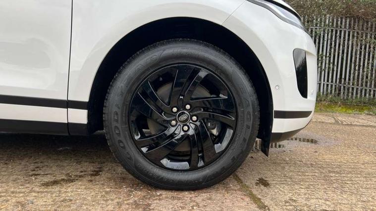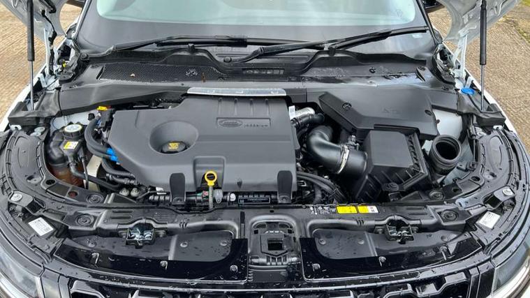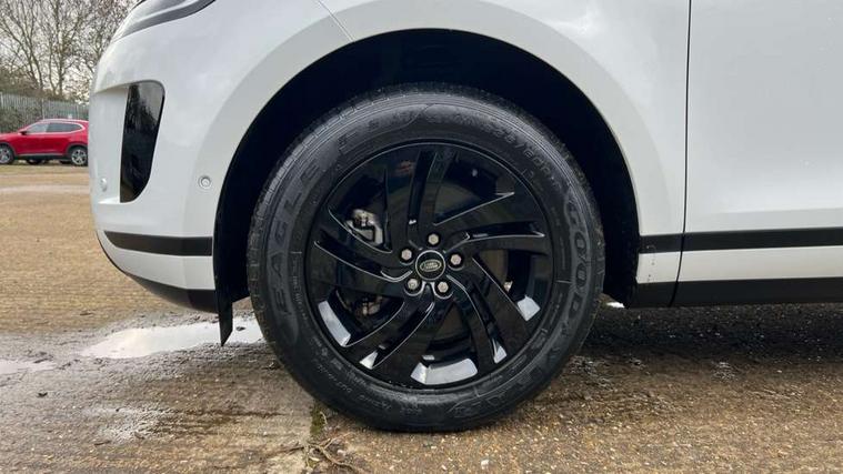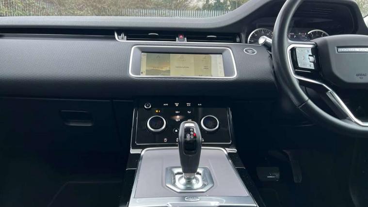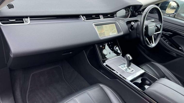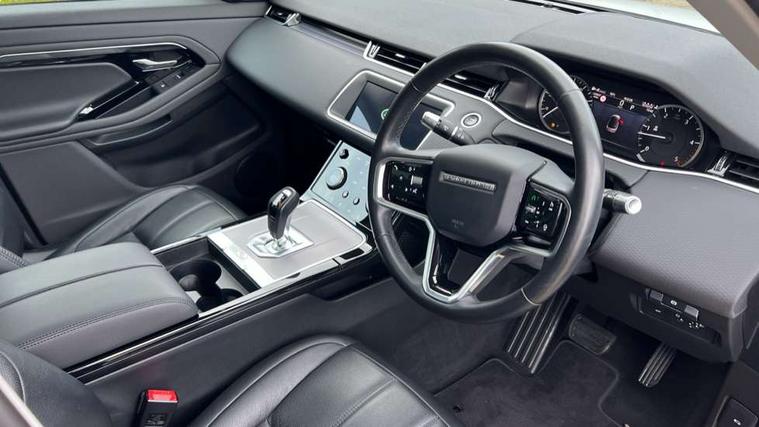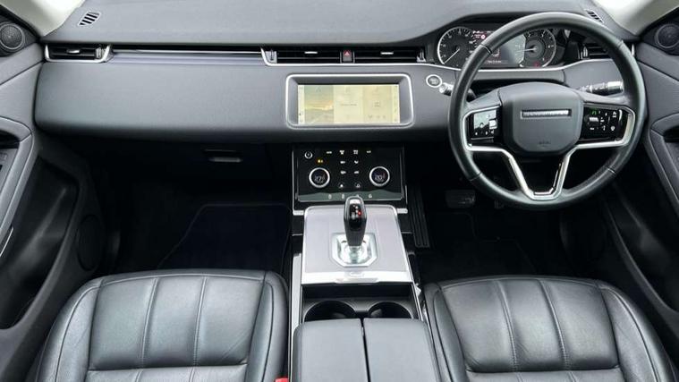 3D 360 degree surround camera, Android Auto, Apple car play, Bluetooth connectivity, Brake pad wear indicator warning light, Driver condition monitor, eCall emergency system, Electronic power assisted steering (EPAS), Front and rear parking aid, InControl remote, Land Rover InControl apps, Lane keep assist, Pivi pro connected includes upgraded infotainment, connected navigation pro, Nuance speech licence, Push button starter, Traffic sign recognition with adaptive speed limiter, Voice control system, Wade Sensing, All terrain progress control, Efficient Driveline, Passive suspension, Terrain Response 2 Auto, Digital Audio Broadcast radio-DAB, Steering wheel mounted controls, Auto headlights, Daytime running lights, Electric windows with one touch open/close and anti trap, Evoque badge, Flush deployable exterior door handles, Heated rear window with timer, Heated washer jets, Heated windscreen, Power fold, auto-dimming, heated door mirrors with approach lights and auto dimming driver side, Rain sensing windscreen wipers, Rear fog lights, Rear side wing doors, Rear wiper, Tailgate spoiler, Third brake light, 40:20:40 split folding rear seats with centre headrest and armrest, Ambient interior lighting, Isofix system on outer rear seats, Overhead lighting console, Overhead stowage for sunglasses, Passive front head restraints, Rear air vents, Rear centre headrest, Rear head restraints, Single passenger seat, Sunvisors with illuminated vanity mirrors, Twin sliding front centre armrest, 3 rear 3 point seatbelts, Anti-lock braking system (ABS), Customer configurable autolock, DSC - Dynamic Stability Control, Electronic brake force distribution, Electronic parking brake, Electronic traction control, Emergency braking, Front and rear seatbelt reminder, Hill descent control, Hill launch assist, Low traction launch, Power operated child locks, Roll stability control, Six airbags - Driver and passenger airbags/driver knee airbag/front side airbag and curtain airbags, Torque vectoring brake, Tyre pressure monitoring system, Alarm, Immobiliser, Intrusion sensor, Locking wheel nuts,