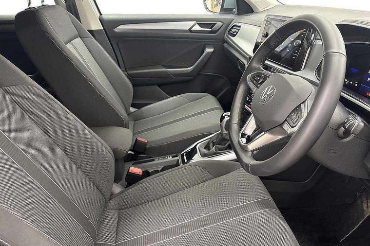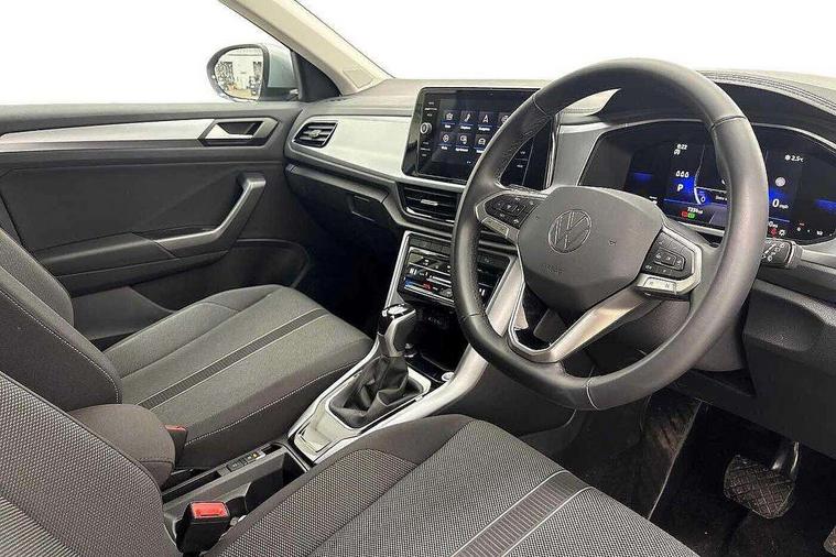 Advanced driver attention and drowsiness monitor, Dynamic road sign display, Emergency call service, Lane keeping system Lane Assist, Mobile phone interface, Modified key software - reduce switch off time for key status change to Long no motion, Online services, Park assist including front and rear parking sensors, Power assisted speed sensitive steering, Rear view camera, Service interval indicator, Tailgate/trunk lid release from outside, Think blue trainer driver tips and journey analysis, Warning sound and light for front seatbelts unfastened, Wireless app connect, Battery regeneration during braking, Front shock absorption, Rear shock absorption chassis with increased ride height, Start/stop function with battery regeneration, DAB Digital radio, Diversity antenna for FM reception, Front and rear 6 speakers, Music playback - MP3, WMA and AAC files, Premium USB cable in choice of either Apple or Android smartphone compatibility, SD card slot, Simultaneous pairing of 2 compatible mobile devices, Title and cover art display, We Connect and We Connect Plus functionality, Auto dimming interior rear view mirror, Automatic hazard lights activation under emergency braking, Automatic headlight control with LED separate daytime running lights with coming/leaving home function, Black roof rails, Body coloured bumpers and radiator grille with chrome trim and front fog lamps with chrome bezel, Body coloured exterior mirror housings and door handles, Electrically adjustable and heated door mirrors, Extended roof spoiler, Exterior mirrors aspherical on driver side, convex on front passenger side, External USB type C socket and charging sockets, Front windscreen wiper with intermittent wipe and 4 position delay, Heated rear window, LED 3rd brake light, LED rear combination lamps, LED rear number plate lights, Power windows with comfort operation and circuit breaker, Privacy glass for rear side windows and rear window, Rain sensor, Rear exhaust tailpipe, Rear fog light on one side and reversing lights on both sides, Rear side wing doors, Rear wash/wipe with intermittent wipe setting, Remote electrically foldable door mirrors, puddle lights and reverse activated passenger's door mirror, 12V power socket in centre console, 3 rear head restraints, 3 seat bench in 2nd row, 4 load lashing points in luggage compartment, Air care climatronic air conditoning system with active combination filter and 2-zone temperature control, Black stitching for floor mats, Ceramique roof liner, Cloth upholstery, Door and side trim panel in cloth, Drawer under drivers seat, Driver/front passenger seat height adjustment, Front centre armrest, Front comfort sports seats, Front cupholders x 2, Front reading light, Front seat back storage pockets, Glove compartment door with light, Instrument lighting, white adjustable panel illumination, Interior ambient lighting and surround lighting, Interior light delay, Isofix child seat preparation, Leather gearshift handle, Load-through provision with cup holder when folded down ('Unsplit rear seat bench, split folding backrest, with centre armrest), Luggage compartment lighting, Lumbar support for driver's and front passengers seat, Non-folding front passenger seat backrest, Single front passenger seat, Storage compartment in left and right luggage area, Storage compartment in rear doors, Storage compartments in driver and front passenger doors, Sunvisors with illuminated vanity mirrors, Variable boot floor, height adjustable and removable, Driver assistance pack without proactive passenger protection - T-Roc Life/Match, 3 point height adj front seatbelts + pretensioners, 3 point seatbelts in outer rear with ECE label, ABS, Child locks on rear doors, City emergency braking and pedestrian monitoring, Driver and front passenger airbag with front passenger airbag deactivation, Driver and front passenger safety-optimised head restraints, Drivers seatbelt reminder, Electronic parking brake, Electronic Stability Control (ESC) inc EDL (Electronic Differential Lock) and ASR (Traction Control), Front and rear passengers curtain airbag system including front side airbags, Front disc brakes, Hill start assist, Predictive pedestrian protection, Rear disc brakes, Two tone horn, Tyre pressure loss indicator, Volkswagen roadside assistance, Alarm with interior protection, Keyless locking and starting system keyless access with safelock, Pewter matt decorative inserts for intrument panel, centre console and door panels at the front, Trims for alloy wheels,