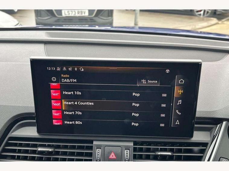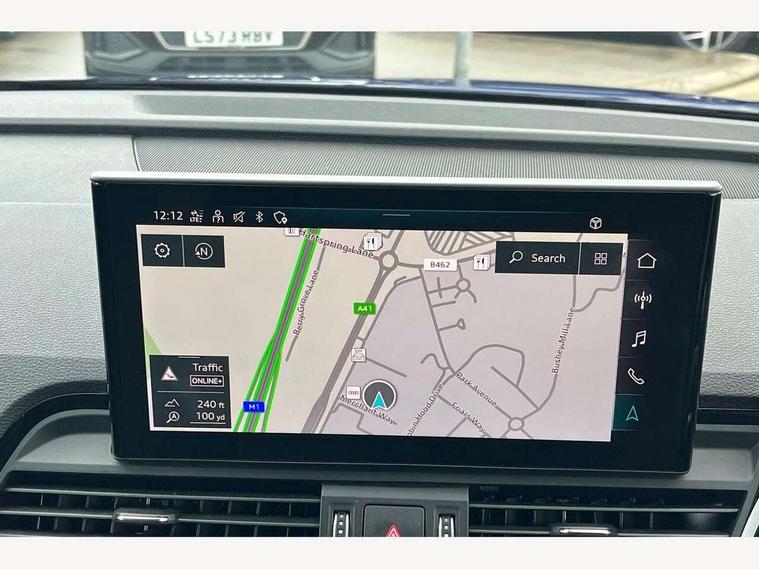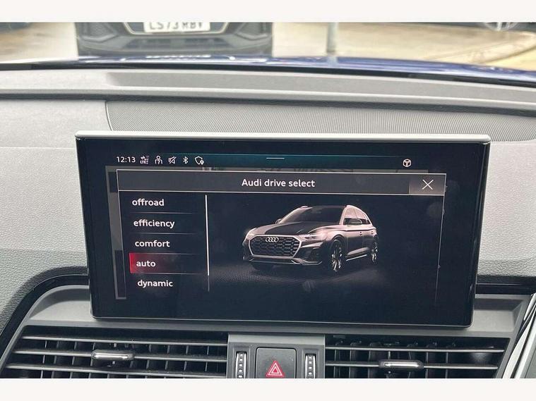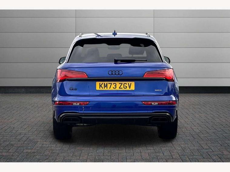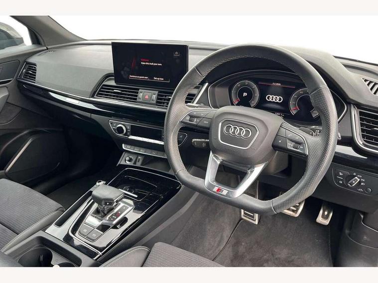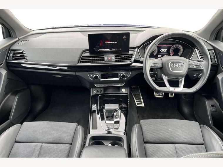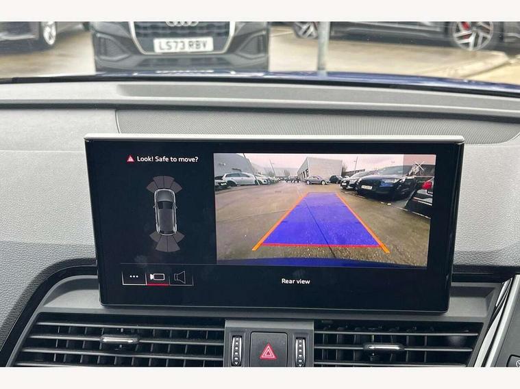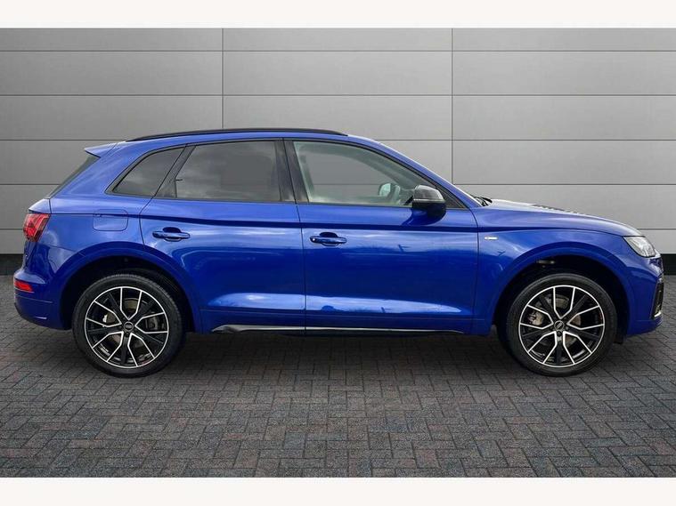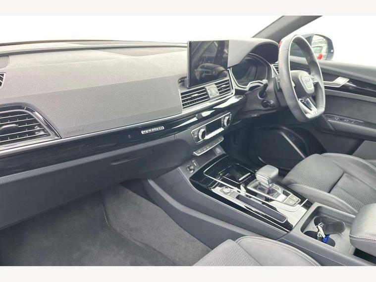 Acoustic front and rear parking sensor, Audi connect safety and service (e-call), Audi drive select, Audi virtual cockpit plus with 12.3" screen and three different layout designs, Audi wireless smartphone interface, Automatic start-stop system with coasting functionality and efficiency programme, Bluetooth interface, Camera based traffic sign recognition, Electro - mechanical power assisted steering, Lane departure warning, MMI navigation plus with 10.1" touch screen, Power tailgate, Reversing camera, Service interval indicator, Voice control system with Audi hotword activation "Hey Audi", Diesel particulate filter, Quattro on demand, S line sports suspension, 2 x USB charging port with aux input socket, 8 loudspeakers, DAB Digital radio, Acoustic windscreen, Auto dimming door mirrors, Auto dimming frameless rear view mirror, Automatic headlight adjustment, Automatic headlights and windscreen wipers, Black roof rails, Black styling with black rings, Body colour bumpers, Body colour rear diffuser with matt aluminium silver surrounds, Body colour underbody protection, Chrome plated exhaust trims, Daytime running lights, Door sills in Selenite silver, Electric adjustable/heated/folding door mirrors, Front air inlet surrounds in aluminium, Front and rear electric windows, Front radiator grille in honeycomb design, LED 3rd brake light, LED headlights and LED tail lights, Loading edge protection in stainless steel, Lower bumpers painted in contrast Manhattan grey, Rear chrome trim strip below lights, Rear privacy glass and rear side windows, Rear side wing doors, Rear wiper, Roof bars, S Line badges on the front wing panels, S Line front and rear bumpers, S Line rear spoiler, S Line side skirts, 3 rear headrests, Black cloth headlining, Comfort front centre armrest, Contrast stitching on seats, steering wheel and gear lever gaiter, Deluxe 3 zone electronic climate control, Front head restraints, Front sport seats with S embossed logo, Front/rear floor mats, Gear lever in black leather, Heated front seats, Height/reach adjustable steering column, Illuminated door sill trims with S logo, Luggage compartment cover, Manual seat adjustment with 4-way electric lumbar support, Single front passenger seat, Stainless steel pedals, Sunvisors with vanity mirrors, Top surface of the rear centre armrest in artificial leather, High gloss pack - Q5, LED interior light pack - Q5, 3 point seatbelts on all seats, 6 airbags - Driver, front passenger, curtain and side airbags, Attention and drowsiness assist, Electrically operated child locks on rear doors, Electromechanical parking brake, Electronic stabilisation control including ABS, ASR and EDL, First aid kit with warning triangle and vests, Front passenger airbag deactivation, Hill descent control, Hill hold assist, ISOFIX child seat mounting for front passenger seat and ISOFIX child seat mounting with Top Tether for outer rear seats, Multi collision brake assist, Pop-up bonnet for pedestrian protection, Pre sense city, Seatbelt monitoring, Tyre pressure warning, Anti theft alarm, Anti-theft wheel bolts, Remote central locking, Remote control key with SAFELOCK and keyless go, Air vents inserts and centre console in gloss black, Tool kit, Tyre repair kit,