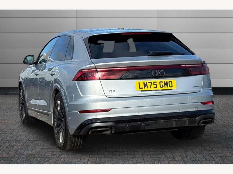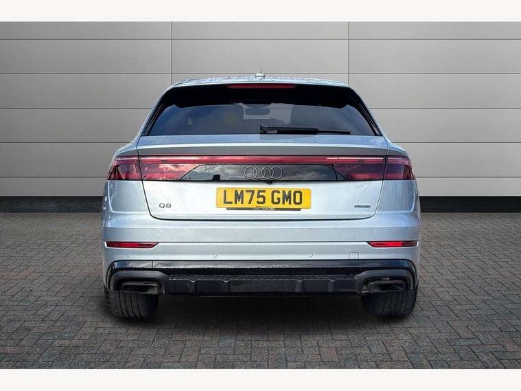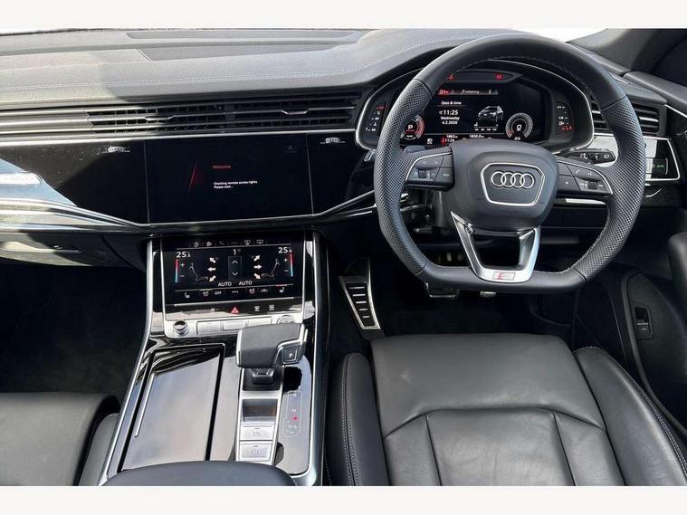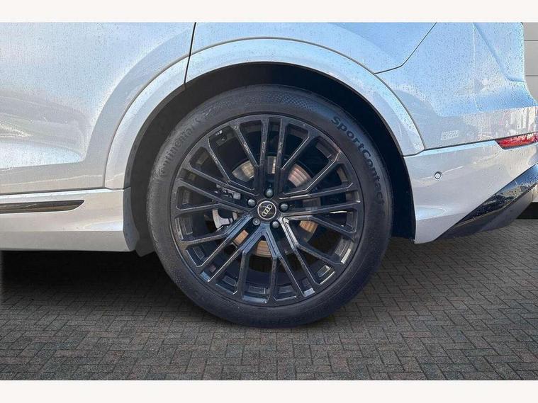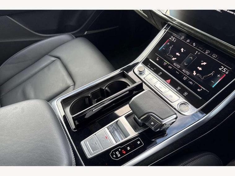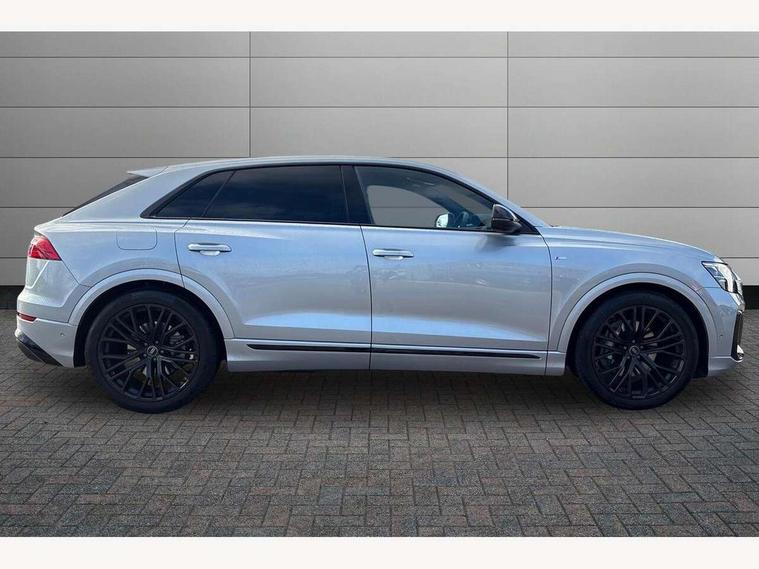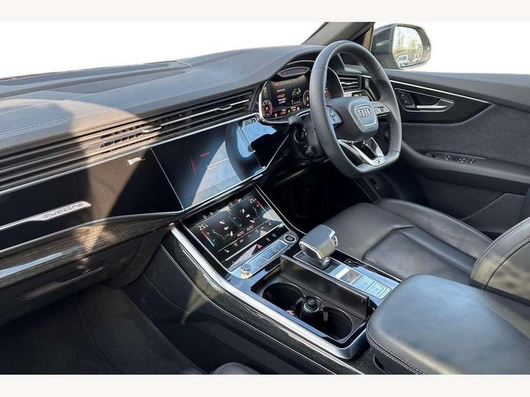 10.1" and 8.6" Dual colour touchscreens, Audi application store, Audi connect safety and service (e-call), Audi connect with Amazon Alexa Integration, Audi drive select, Audi parking system plus includes 360 degree display with front and rear sensors, Audi phone box light with wireless charging, Audi virtual cockpit - 12.3" high resolution LCD display with fully customisable instrument cluster, Automatic start/stop system, Bluetooth, Electro-mechanical PAS, Low washer fluid indicator, MMI navigation plus with MMI touch, Natural voice recognition, On board computer, Operating buttons in black, glass look with haptic feedback, Power operated tailgate, Rear view camera, Service interval indicator, Smartphone interface includes wireless Apple carplay/Android Auto, 48V Mild hybrid technology, Adaptive sport air suspension, Diesel particulate filter, Quattro all wheel drive with self locking centre differential, Audi music interface with 2 USB ports with charge and data functions, Audi sound system with 6 channel amplifier, 180 watt amplifying capacity and 10 loudspeakers including subwoofer, Aux-in socket, DAB Digital radio, 3rd brake light, Audi beam, Auto dimming frameless rear view mirror, Black exhaust tailpipes, Black single frame mask, Coming/leaving home lighting function, Electric front+rear windows, Electrically folding auto dimming/adjustable/heated door mirrors with memory function, LED side indicators and kerb view function for passenger side, Headlight washers, Heat insulating glass in windshield, LED rear light plus, LED signature daytime running lights, Loading edge protection in stainless steel, Matrix LED headlights with dynamic front and rear indicators, Platinum grey front spoiler lip and diffuser insert with honeycomb grille in black, Privacy glass - dark tinted rear and rear side windows from B-pillar backwards, Rain and light sensors, Rear side wing doors, Rear wiper, Singleframe grille surround in matte platinum grey, 2 zone automatic climate control, 3 bench rear seats in 2nd row, 4-way lumbar support for front seats, 40:20:40 split folding rear bench seat, Black cloth headlining, Comfort front centre armrest, Driver seat memory function, Electrically adjustable front seats, Front head restraints, Front/rear floor mats, Heated front seats, ISOFIX child seat mounting for front passenger seat and 2 outer rear seats with top tether child seat mounting for all 3 rear seats, LED interior ambient lighting, Luggage compartment sill protection in stainless steel, Rear centre armrest with 2 cupholders, Rear headrests, Seat cushion displaceable by 100mm in the ratio 60:40, Single front passenger seat, Stainless steel pedals, Sunvisors with illuminated vanity mirrors, Black styling pack plus - Q8, 3 point seatbelts on all seats, Audi pre sense front, Convenience key with safelock, Driver and front passenger, front side and curtain airbags, Electromechanical parking brake, Electronic Stability Control (ESC) including ABS, ASR and EDL, Front passenger airbag deactivation, Hill descent control, Hill hold assist, Predictive pedestrian protection, Seatbelt monitoring, Traction control, Tyre pressure loss indicator, Warning triangle and first aid kit, Anti theft alarm with tow away protection, Anti-theft wheel bolts and wheel loosening detection, Electronically operated child lock, Immobiliser, Keyless go with remote central locking, Polished oak trim with grey finish inlay, Tool kit, Tyre repair kit,