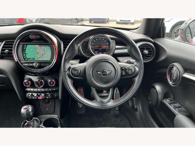 Acoustic seat-belt warning, Basic bluetooth function with USB audio, Brake fluid level warning light, Brake pad wear indicator warning light, DTC - Dynamic traction control, Exterior temperature gauge, Intelligent emergency call, MINI TeleServices, Oil level indicator, On board computer, Personal Profile, Service interval indicator, Servotronic PAS, Stop/start button, Electronic differential lock, 6.5" touchscreen, Auxiliary input socket, DAB digital radio module, Anti dazzle mirror, Anti trapping/one touch open close front windows, Body coloured bumpers, Chrome bezels around rear lights and headlights, Chrome door handles, Chrome exhaust tailpipe, Chrome plated radiator grille, Electric front windows, Electrically adjustable door mirrors, Follow me home headlights, Heated door mirrors, Heated rear window with auto timer, Heated windscreen washer jets, High gloss black tailgate handle, LED fog lights, LED rear lights, Metal look door sill finishers, White indicator lights, 2 rear head restraints, 4 boot load lashing points, 50/50 split folding rear seats, 6-way manually adjustable driver's seat, Active carbon filter, Auxiliary socket in centre console storage compartment, Centre console storage, Driver/passenger sunvisors and vanity mirrors, Easy entry seats, Front and rear cupholders, Front head restraints, Gear/selector and handbrake in artificial leather, Glovebox, Internal chrome door handles, Isofix child seat preparation, Luggage compartment lighting, Multifunction steering wheel, Reach + rake adjustable steering column, Stainless steel pedals with rubber inserts, Storage compartments in doors, Toolkit in luggage compartment, 3 point seatbelts, ABS/EBD, ASC+T, Cornering brake control (CBC), Crash Sensor - activates hazard/interior lighting + unlocks doors, Driver and passenger airbags, Driver/front passenger side airbags, DSC - Dynamic Stability Control, Fuel cut off safety device, Head airbags, Hill start assist, Passenger airbag deactivation system, Seatbelt pretensioners, Tyre pressure warning, Drive away door locking, Keyless Start, Locking wheel bolts, Remote central locking/doors+fuel cap+tailgate, Second remote key, Thatcham category 1 alarm + immobiliser,