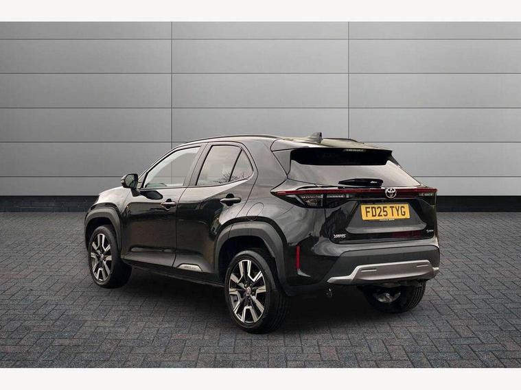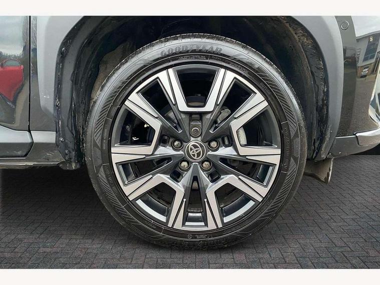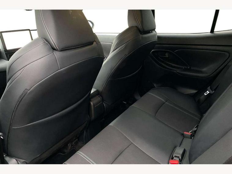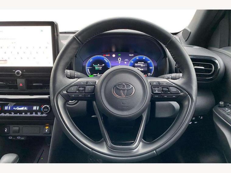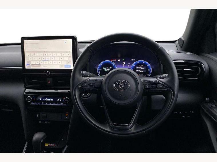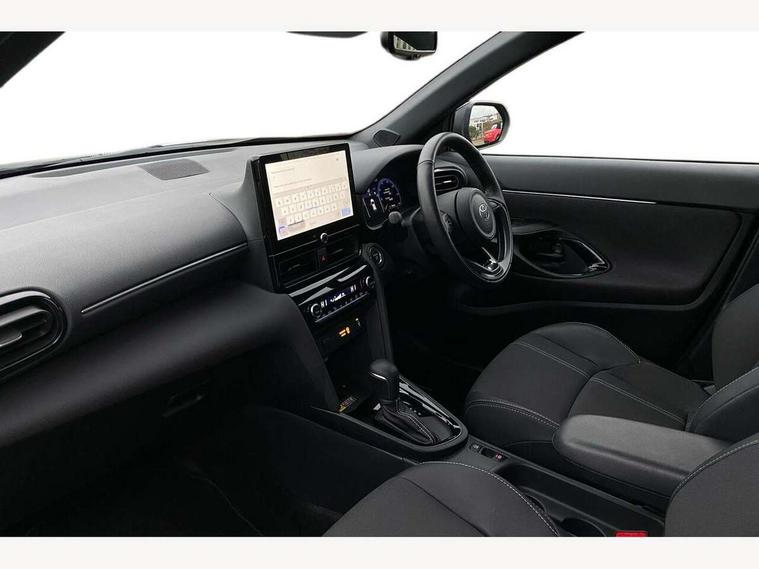 10.5" Multimedia display screen, 10.5" Toyota smart connect+ with navi multimedia system with wireless Smartphone integration incl Apple CarPlay, 360 degree panoramic view monitor, 7" Multi information display screen, Adaptive cruise control, multi info switches on steering wheel, Adjustable speed limiter, Advanced parking assist, Blind spot monitoring, Bluetooth connectivity, Color multi-information display, Digital speedometer, Digital tachometer, Drive mode selector, Driver attention alert system, Dynamic guide lines on reversing camera, eCall emergency system, Electric power steering, Emergency driving stop system, Full range intelligent adaptive cruise control, Hybrid system indicator, Intelligent front and rear parking sensors with clearance sonar and automatic braking, Intersection turn assist, Key reminder warning, Lane change assist, Lane trace assist, My T Connected services, Power tailgate, Pre-collision system enhanced with emergency steering assist, Rear cross traffic alert, Remote boot door release in cabin, Road sign assist - RSA, Safe exit assist, Tailgate, Telephone switch on steering wheel, Wireless Mobile Phone Charger, Steering assisted vehicle stability control, 6 speakers, DAB Digital radio, Front USB Type-C connector, Front USB-C device charger, Acoustic windscreen glass, Anti-jam protection on power windows, Auto dimming rear view mirror, Auto high beam [AHB] with on/off switch, Auto intermittent windscreen wipers, Automatic headlights, Automatic headlights cut-off, Automatically retractable door mirrors, Black door moulding, Black lower front grille, Black protection moulding on side doors, Black roof rails, Black wheel arch mouldings, Body colour door handles, Body colour front bumper, Body colour rear bumper, Electric adjustable heated door mirrors, Follow me home headlights, Front and rear electric windows with auto up/down function, Gloss black upper front grille, Headlight cut off reminder, Indicators integrated on door mirrors, Intermittent rear wiper, Kick activated power back door, LED 3rd brake light, LED daytime running lights guide, LED front fog lights, LED front light guide, LED Indicators, LED projector headlights, LED rear lights with sequential indicators, Manual headlight levelling, Meshed shape upper front grille, Noise reduction layer on windscreen, Pre wiring for towing hook, Privacy glass, Rain sensor, Rear roof spoiler, Rear side wing doors, Rear window defogger, Shark fin antenna, 12v power outlet - front, 12V power point in boot, 2x Rear coat hooks, 3 seat bench in 2nd row, 3 spoke leather steering wheel, 40/60 split deckboard, 40:20:40 split folding rear bench seat, Adjustable rear headrests, Adjustable speed limiter switch on steering wheel, Boot light, Central armrest, Driver and front passenger personal lights, Driver and front passenger Whiplash injury Lesseing seats, Driver and passenger seatback pockets, Dual zone automatic air conditioning, Fabric door trim, Front console box, Front cup holders, Front door pockets, Front head restraints, Front sport seats, Front/rear assist grips, Gear shift indicator, Grey roof lining, Heated driver and passenger seats, Heated steering wheel, Height adjustable driver's seat, Height adjustable front passenger seat, Hooks for luggage holding belts, ISOFIX child restraint system, Lane departure alert switch on steering control, Leather gearshift, LED centre room light, Light on driver and passenger sun visor, Manual telescopic and tilting steering wheel, Mirror on driver and passenger sun visor, Nanoe-X air purifier, Partial synthetic leather upholstery, Pollen air filter, Power adjustable lumbar support on driver seat, Rear cup holders, Rear door pockets, Rear head restraints, Remote air-conditioning system, Single compartment glovebox, Single front passenger seat, Soft tonneau cover, Storage box under boot floor, Voice recognition switch on steering wheel, White ambient lighting in centre console, White ambient lighting in footwell, White ambient lighting on front doors, Yaris cross floor mats, Tech pack - Yaris Cross, 3x3 point rear seat belts, ABS+EBD+Brake assist, Downhill Assist Control (DAC), Driver and passenger central airbags, Driver and passenger front airbags, Driver and passenger side airbags, Electronic parking brake, Emergency brake light system (EBS), Front seat belt reminder, Hill start assist control (HAC), Passenger airbag on/off switch, Pre-collision system with pedestrian and cyclist detection, Rear door child safety locks, Rear passenger side airbags, Rear seat belt reminder, Traction control, Tyre pressure warning system, Immobiliser, Intrusion alarm, Keyless smart entry with push button start, Power door locks, Power passenger window lock, Remote door lock, Gloss black side air vent surrounds, Tyre repair kit,