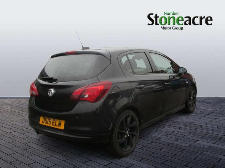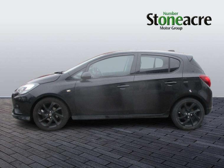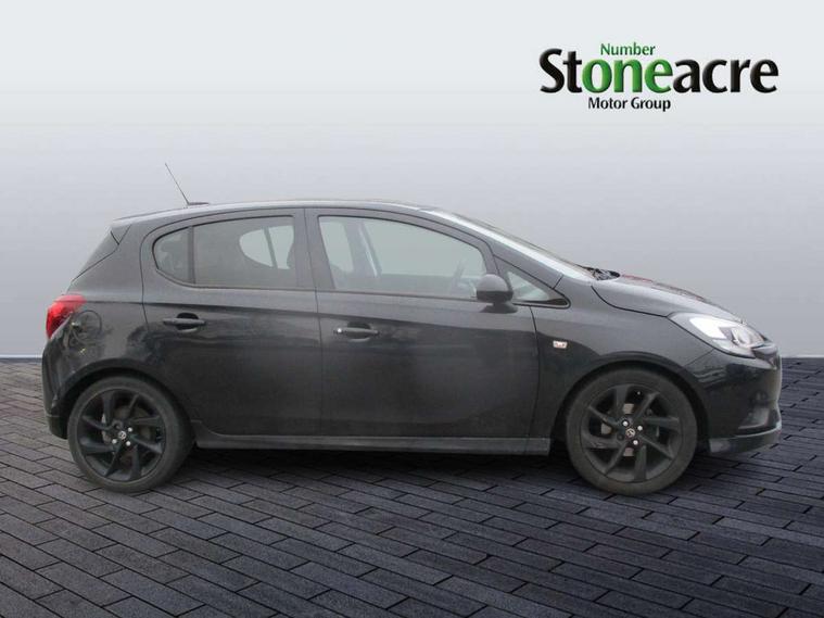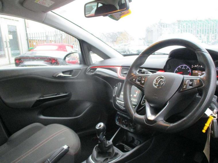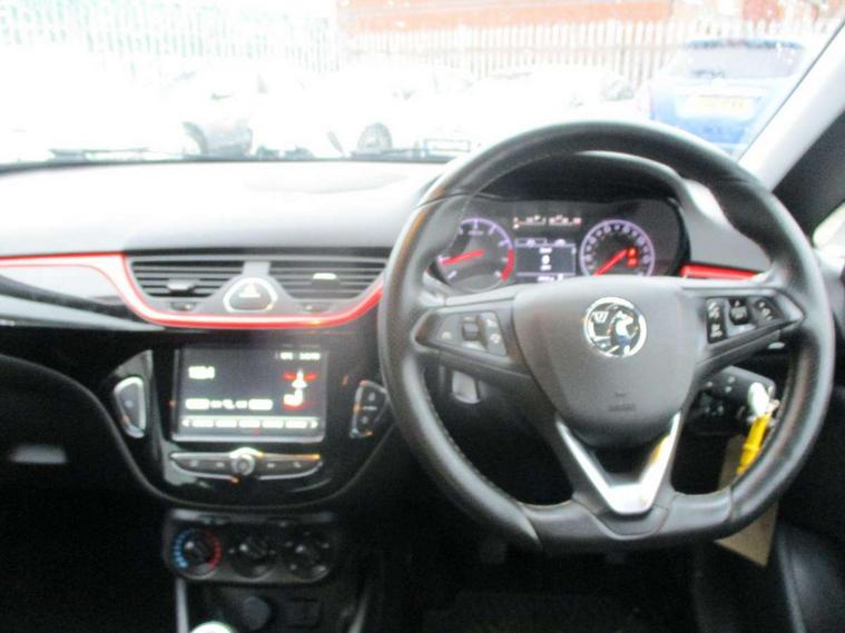 Apple car play/Android Auto, Central facia display, Cruise control + speed limiter, Digital fuel gauge with low fuel warning light, Digital water temperature gauge, Electric speed sensitive power steering, Exterior temperature gauge, Lights on audible warning, Multi function trip computer, Navi 4.0 IntelliLink navigation with 7" touchscreen, traffic program, DAB , USB, Bluetooth audio streaming, Apple CarPlay/Android auto, and microphone, Rev counter, Service indicator, Speed warning indicator, Speedometer, White graphics on black background, Front anti roll bar, Sports suspension, Steering wheel mounted audio/cruise controls, Black door mirrors, Black foil on B-pillars, Black front grille, Black roof, Body colour bumpers, Body colour door handles, Body colour front lower spoiler/side sills/rear lower skirt, Chrome effect tailpipe extension, Dark tinted rear windows, Dipping rear view mirror, Door to door illumination, Electric adjustable/manual folding heated door mirrors (wide angle on driver's side), Electric headlight beam leveling, Electrically operated front windows with safety auto reverse/one touch facility, Front fog lights with black surround, Halogen headlights, Hazard warning lamps, Headlamp levelling, Heated rear window, Heated windscreen, High level LED centre brake light, Intermittent rear wash/wipe, Laminated windscreen, LED daytime running lights, Mineral black door mirror housings, Rear fog lights, Rear wiper, Side window demist vents, Two speed windscreen wipers with variable intermittent wipe, Welcome lighting, Windscreen demist vents, 12V electrical accessory socket in front, 3 spoke steering wheel, Anti submarining ramps in all seats, Centre console with cupholders, Chrome interior door handles, Driver's and front passenger's sunvisors, Driver's and front passenger's tiltable assist handles, Driver's and passenger's vanity mirrors with flip up cover, Driver's vanity mirror, Four adjustable facia vents, Front courtesy lights, Front door pockets, Front map reading lights, Front seat belt pre-tensioners with load limiters, Glovebox with lid, Grab handles, Height adjustable driver's seat, Height adjustable front headrests, Height adjustable rear head restraints with adjustable backrest, Illuminated luggage compartment, Instrument panel light dimmer, Interior tailgate handles, Isofix child seat mounting points on outer rear seats, Leather gear knob and handbrake grip, Load restraining lashing points, Luggage compartment cover, Multi function steering wheel, Passenger make up mirror, Pollen filter, Reach + rake adjustable steering column, Rear courtesy lights, Rear door pockets, Rear reading lights, Reclining front seats, Sports front seats, Storage box on driver's side lower facia, Stowage facility for luggage compartment cover behind rear seats, Twin gas assisted tailgate struts, Sight and light Pack - Corsa, Anti-lock braking system (ABS), Brake assist function, Electronic brake force distribution, Electronic Stability Programme, Energy absorbing steering column, Front and rear seatbelt reminder, Front and rear seatbelt unfastened audible warning and warning light, Front seatbelt force limiters, Gas pressure dampers, Height adjustable front seatbelts, Hill start assist, Manual passenger airbag deactivation function, Pedal release system, Rear child proof door locks, Reinforced passenger safety cell, Side impact protection beams, Six airbags - Driver's dual stage airbag/front passenger's dual stage airbag/front seat side impact airbags/full size curtain airbags, Three 3 point rear seatbelts, Three inertia reel lap/diagonal seatbelts, Traction control, Tyre pressure monitoring system, Electronically protected audio, Engine Immobiliser & Deadlocks, Key left in ignition audible warning, Locking wheel bolts, Remote control central locking, Visible vehicle identification number, Piano black facia with white inserts, 17" Gloss black alloy wheels, Low rolling resistance tyres, Tyre inflation kit,