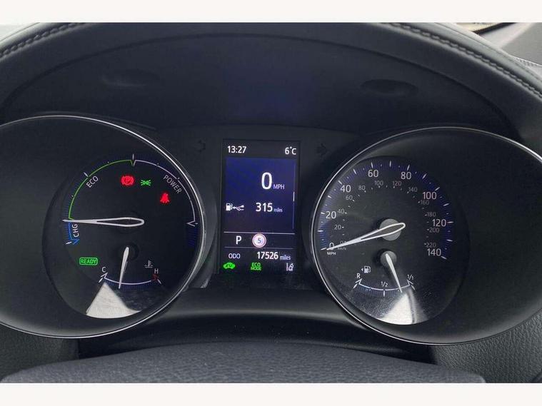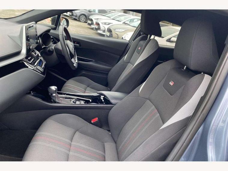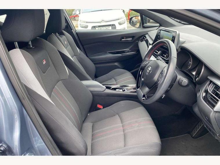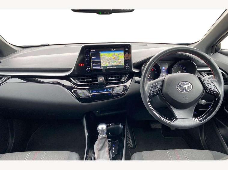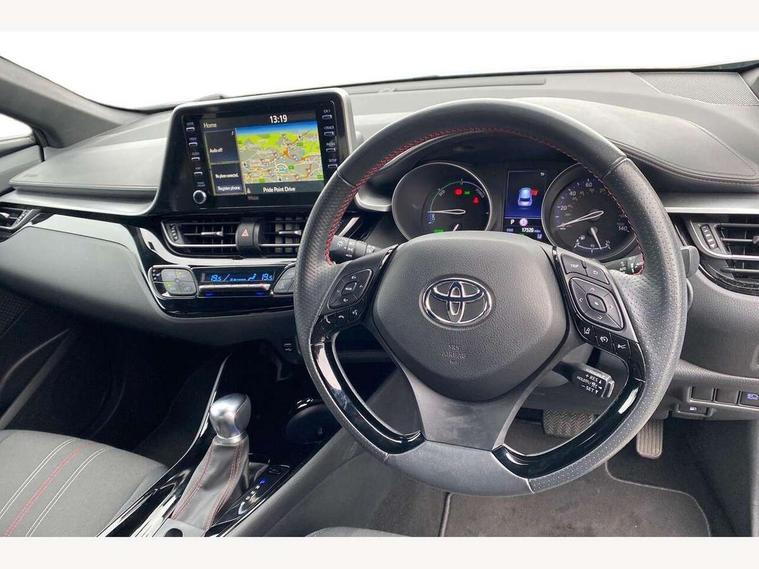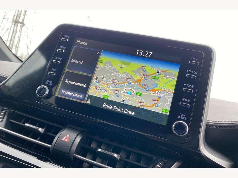 4.2" coloured TFT screen for multi-information display, Adaptive cruise control, Bluetooth connectivity, Electric power steering, Hybrid system indicator, Lane departure alert with steering control, Remote boot door release in cabin, Remote boot door release in key, Reversing camera, Road sign assist - RSA, Simple Intelligent parking assist, Touch 2 Go navigation system, Trip computer, Voice recognition, Vehicle Stability Control (VSC), 6 speakers, AM/FM radio, DAB Radio (Digital Audio Broadcasting), Toyota touch 2 multimedia system with 8" display, USB connector, Wi-fi connectivity, Adaptive front light system, Adaptive LED Headlights, Anti-jam protection on power windows, Auto high beam, Auto up and down function on all power windows, Automatic headlight levelling, Automatic headlights, Automatic headlights cut-off, Black and body coloured rear bumper, Black upper front grille, Body colour door handles, Body colour door mirrors, Body coloured front bumper, Boot door release with push button, Chrome front lower bumper, Electric heated door mirrors, Follow me home headlights, Front and rear power windows, Front spoiler lip in black, Honeycomb lower front grille, LED daytime running lights, LED fog lights, LED front light guide, LED High mounted stop light, LED rear brake lights, LED rear combination lights, Noise reduction layer on front windows and windscreen, Power adjustable door mirrors, Privacy glass, Rear sequential indicators, Rear spoiler, Rear tailgate, Rear window defogger, Rear window wiper, Shark fin antenna, UV-filter on driver and passenger windows, UV-filter on rear windows, 12v power outlet - front, 3 rear headrests, 3 spoke perforated leather steering wheel, 60/40 split folding rear seat, Adjustable rear headrests, Adjustable speed limiter switch on steering wheel, Assist grips front and centre pillar, Audio and telephone switches on steering wheel, Black front door assist grips, Blue ambient lighting on front cup holders, Blue ambient lighting on front doors, Boot light, Chrome interior door handles, Driver and front passenger personal light, Driver and front passenger Whiplash Injury Lessening seats, Driver and passenger seatback pockets, Dual zone automatic air conditioning, Fabric upholstery, Front cupholders, Front head restraints, Front sports seats, Glovebox with internal light, Hard tonneau cover, Heated driver and front passenger seats, Hooks for luggage holding net, Humidifying Nanoe air purifier, Illuminated entry system, Isofix attachments on outer rear seats, Leather gearshift, Light on driver sun visor, Light on passenger sun visor, Manual telescopic steering wheel, Manual tilt steering wheel, Manually height adjustable driver seat, Manually height adjustable front passenger seat, Manually reclining driver seat, Manually reclining front passenger seat, Manually sliding driver seat, Manually sliding front passenger seat, Microphone on front personal light, Mirror on driver sun visor, Mirror on passenger sun visor, Multimedia switches on steering wheel, Pollen filter, Power adjustable lumbar support on driver seat, Shopping bag hooks, Slow opening on lower glovebox, Voice recognition switch on steering wheel, Tech with parking sensor pack - C-HR, 16 Disk front wheel brake, 3x3 point rear seatbelts, ABS+EBD+Brake assist, Electronic parking brake, Front and rear seatbelt reminder, Front passenger airbag on/off switch, Hill start assist control (HAC), Pre collision system with pedestrian detection, Pre-tensioners and force limiters, Rear door child safety locks, SRS Airbags - Driver + Front passenger, front side, front and rear curtain and driver's knee airbags, Toyota safety sense, Tyre pressure monitoring system, Acoustic vehicle alert system (AVAS), Glass-breaking alarm sensors, Immobiliser, Intrusion alarm, Intrusion sensor, Motion sensor alarm, Power door locks, Power passenger window lock, Remote central locking, Black lower dashboard, Black upper dashboard, Piano black console, Silver deco line on upper dashboard, 19" Black machined alloy wheels, Tyre repair kit,