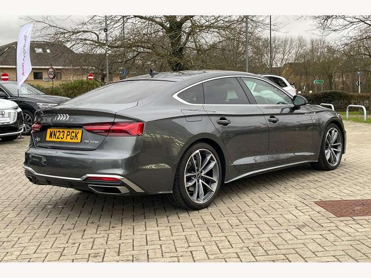 Audi connect safety and service (e-call), Audi connect with Amazon Alexa Integration, Audi drive select (Auto, Comfort, Dynamic and Individual), Audi parking system plus with front and rear sensors, Audi smartphone interface, Audi virtual cockpit - 12.3" full colour digital instrument cluster, vehicle/engine speed, Radio/media information+Driver assistance systems, Automatic start-stop system with coasting functionality and efficiency programme, Bluetooth interface, Electro-mechanical power steering, Email, calendar and text messages displayed via MMI, MMI nav+ with MMI touch - 10.1" high resolution MMI display, touch sensitive, 3D map, route/country info, dynamic route guide, personal route assist, Power operated tailgate, Rear view camera, Service interval indicator, Voice control system, Sports suspension lowered by 23mm, 8 passive loudspeakers, CD player, DAB digital radio reception, Two additional USB ports for rear passenger in rear centre console, Two SDXC card slots, Audi matrix LED headlights with LED rear lights + dynamic front and rear indicators, Auto dimming door mirrors, Auto dimming rear view mirror, Body colour bumpers, Body colour door handles, Body colour front spoiler lip, Body colour side sill trim, Body coloured door mirrors, Electric adjustable heated door mirrors, Electric folding door mirrors, Electric front windows, Front fog lights, Honeycomb structure radiator grille in grained matt black, Kerb-view function for passenger side, LED daytime running lights, LED side indicator lights integrated into door mirrors, LED third brake light, Matt aluminium silver tailpipe trim, Privacy glass, Rain and light sensors, Rear side wing doors, S line badges on front wings, S line front and rear bumpers with side skirts, S Line rear diffuser in matt anthracite black with trim strip in matt aluminium silver, Side air inlets in grained matt black with matt aluminium silver inlay, Variable front intermittent wipers, Windscreen with acoustic glazing, 3 seat bench in 2nd row, 3 spoke high multifunction leather sport steering wheel with paddle shfit and S badging perforated leather grips, 4 way electric lumbar support for driver and front passenger, 40/20/40 split folding 3 seater rear bench seat, Adjustable steering column, Black cloth headlining, Black perforated leather gearknob, Contrast stitching on seats, steering wheel and gear lever gaiter, Deluxe 3 zone electronic climate control, Front centre armrest, Front head restraints, Front/rear floor mats, Heated front seats, Illuminated door sill trim with S logo, ISOFIX child seat mounting and top tether, Luggage compartment mat, Manual seat adjustment, Rear centre armrest, Rear headrests, Single front passenger seat, Stainless steel pedals, Sunvisors with vanity mirrors, LED interior light pack - A5/RS5, 3x3 point rear seatbelts, 6 airbags - Driver, front passenger, curtain and side airbags, Electromechanical parking brake, Electronic Stabilisation Control (ESC) including ABS, ASR and EDL, Front passenger airbag deactivation, Height adjustable front seatbelts, Hill hold assist, Manual child lock in rear doors, Multi collision brake assist, Pop-up bonnet for pedestrian protection, Pre sense city, Seatbelt monitoring, Tyre pressure warning, Variable restraint system, Warning triangle and first aid kit, Anti theft alarm system, Anti theft wheel bolts, Immobiliser, Keyless Go, Remote central locking, Matt brushed aluminium inlays, Tool kit, Tyre repair kit,