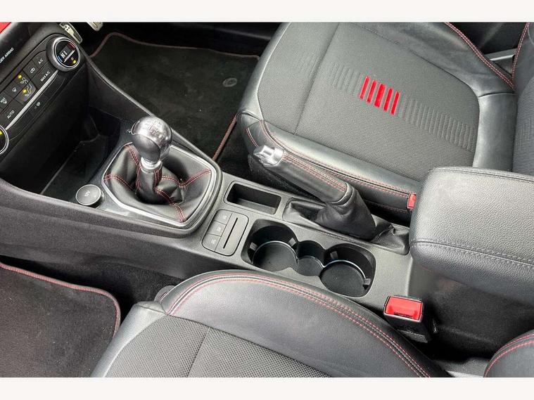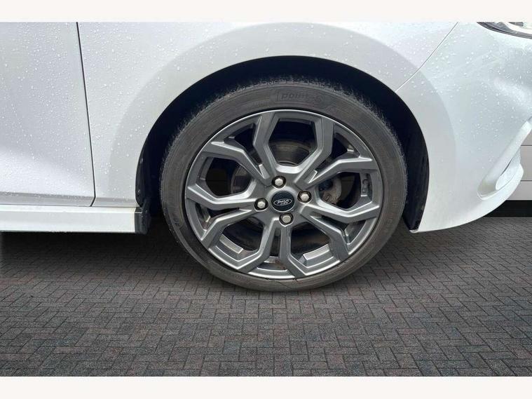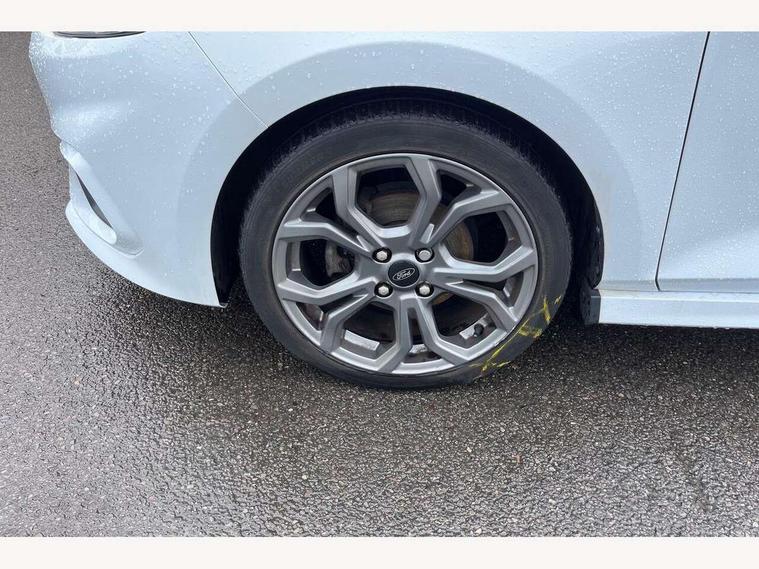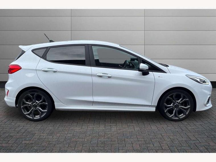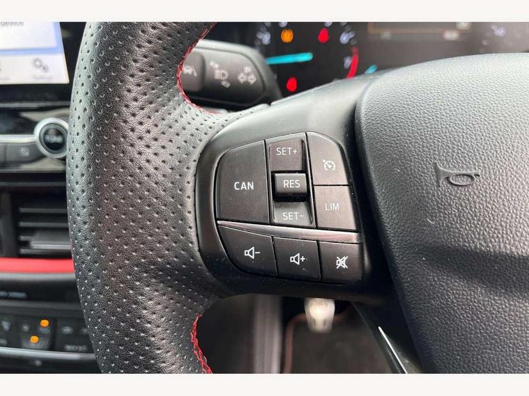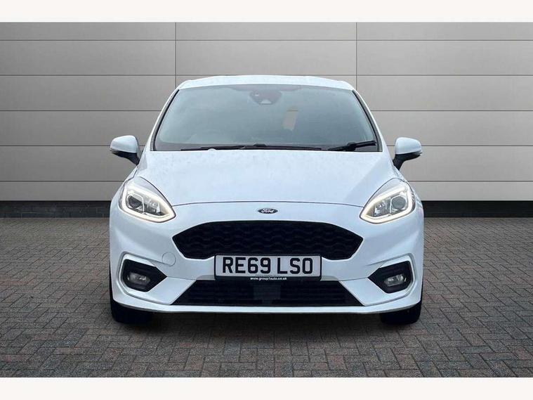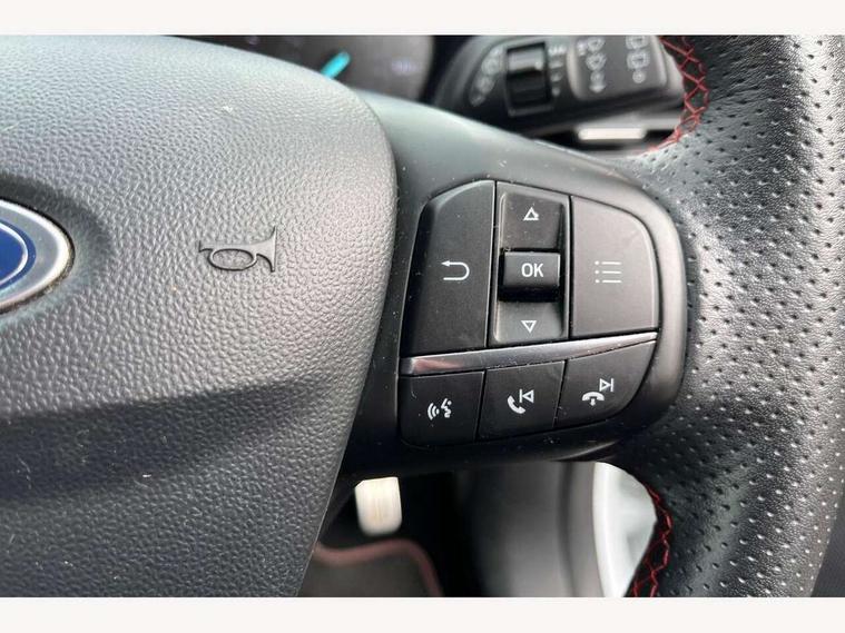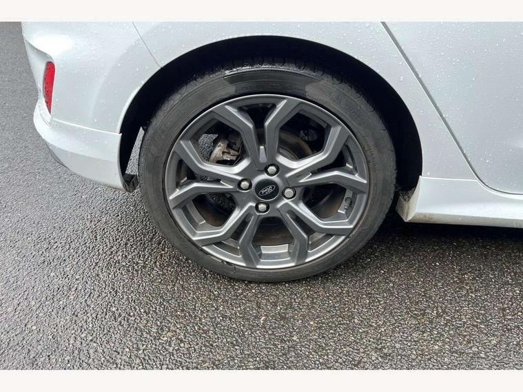 Bluetooth system, Electric power steering, Ford easy fuel, Trip computer, Sports suspension, 2 USB ports, Auxiliary input socket, DAB Digital radio, Steering wheel mounted controls, Auto dimming rear view mirror, Body colour bumpers, Body colour door handles, Body colour large rear spoiler, Chrome door handles, Chrome lower window surround, Cornering front fog lights, Electric front windows/one touch facility, LED Night signature to rear lights, LED rear lights, Power foldable door mirrors with puddle lights, Privacy glass, Quickclear heated windscreen, Rain sensing wipers and auto dimming rear view mirror, Rear privacy glass, Rear wiper, Rugged body styling kit with active front wing badges, Tinted glass, Unique ST-Line upper grille & full bodystyling kit with ST-Line wing badges, 12V Accessory socket in centre console, 3 spoke flat bottomed leather steering wheel, 60/40 split folding rear seat, Adjustable head restraints, Black headlining, Boot carpet, Centre console with armrest and illuminated cupholders, Chrome inner door handles, Drivers and Passenger lumbar support, EATC - Electronic Auto Temperature control, Footwell illumination, Front and rear velour floor mats, Front map reading lights, Front seat and rear pockets, Illuminated glovebox, Leather gear knob, Leather trimmed handbrake handle, Load area light, Overhead console with sunglasses holder, Pollen filter, Rake/reach adjustable steering wheel, Rear centre head restraint, Sports front seats, Sports pedals, Driver assistance pack - Fiesta/Titanium/Titanium X/Active B+O/Active X/ST-Line X, NCAP Pack - Fiesta, Red pack - Fiesta ST-Line X, 3 point seatbelts on all rear seats, ABS+EBA, Curtain airbags, Driver and passenger airbags, Drivers knee airbag, Electronic stability control with hill start assist, Front passenger airbag deactivation, Front side airbags, Seatbelt warning, Tyre pressure monitoring system, MyKey system, Remote central locking & engine immobiliser, Thatcham Cat.1 alarm,