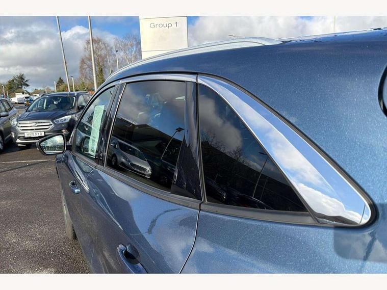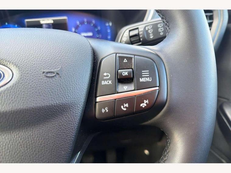 12.3" digital colour instrument cluster, Ford easy fuel, Ford SYNC 3 with 8" TFT LCD touchscreen, App Link, andriod auto/apple carPlay, emergency assistance and navigation with Ford pass connect, Front and rear parking sensors, Hands free power tailgate, Lane keeping aid with lane departure warning, Power assist steering, Rear view camera, Selectable drive modes, Service interval indicator, Standard suspension, Twist beam rear suspension, B&O premium audio system with 10 speakers and subwoofer, 2 USB ports, DAB radio/CD, Auto dimming rear view mirror, Auto headlamps with high and low beam, Auto wipers, Front LED fog lamps, LED daytime running lights, LED rear lights, Power folding heated door mirrors with puddle lights, Power front/rear windows with global close, Privacy glass, Quickclear heated windscreen, Rear side wing doors, Rear spoiler, Rear wiper, Silver roof rails, Third brake light, Twin exhausts, 10 way power adjustable drivers seat, 2nd row sliding seats with 60:40 split, 8 way manual passenger seat including lumbar support and height adjust, Ambient lighting, Centre console with electronic parking brake, Electronic automatic temperature control (EATC), Front and rear floor mats, Front and rear head restraints, Partial premium touch sensico leather upholstery with black cloth inserts, Rear charging point, Single front passenger seat, Sports seats, 3x3 point rear seatbelts, Airbags - front driver/passenger, front and rear curtain, Drivers knee airbag, Electronic stability control (ESC) and ABS, Ford MyKey Gen 2 safety system, Manual child proof rear door locks, Post collision braking, Pre collision assist with autonomous emergency braking, Rear seat Occupancy alert, Tyre pressure monitoring system, Engine immobiliser, Keyless entry and Ford power start button (Keyless start), Locking wheel nuts, Remote powered central double locking doors, Thatcham category 1 alarm, 18" 5x2 spoke magnetic and machined finish alloy wheels,