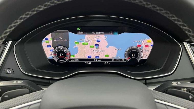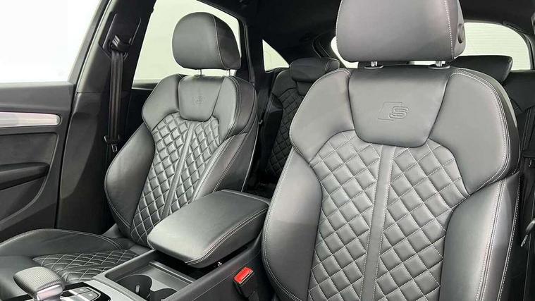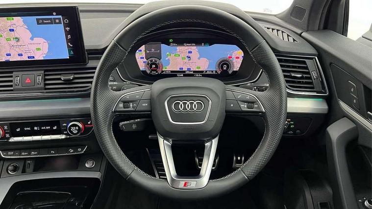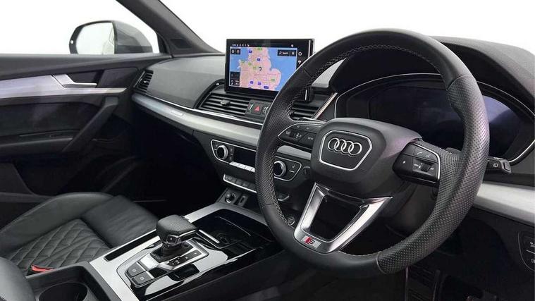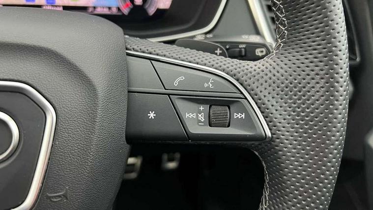 Audi connect safety and service (e-call), Audi connect with Amazon Alexa Integration, Audi drive select, Audi virtual cockpit plus with 12.3" screen and three different layout designs, Audi wireless smartphone interface, Automatic start-stop system with coasting functionality and efficiency programme, Bluetooth interface, Electro - mechanical power assisted steering, MMI navigation plus with 10.1" touch screen, Power tailgate, Reversing camera, Service interval indicator, Voice control system with Audi hotword activation "Hey Audi", Diesel particulate filter, Quattro on demand, S line sports suspension, 2 x USB charging port with aux input socket, DAB Digital radio, Acoustic windscreen, Aluminium roof rails, Audi matrix LED headlights with dynamic front and rear indicators, Auto dimming door mirrors, Auto dimming rear view mirror, Automatic headlight adjustment, Automatic headlights and windscreen wipers, Body colour door mirrors, Body colour rear diffuser with matt aluminium silver surrounds, Body colour underbody protection, Chrome plated exhaust trims, Daytime running lights, Door sills in Selenite silver, Electric adjustable/heated/folding door mirrors, Front air inlet surrounds in aluminium, Front and rear electric windows, Front radiator grille in honeycomb design, Headlight washers, High level LED brake light, Lower bumpers painted in contrast Manhattan grey, Rear chrome trim strip below lights, Rear privacy glass and rear side windows, Rear side wing doors, Rear wiper, Roof bars, S Line badges on the front wings, S Line front and rear bumpers, S Line rear spoiler, S Line side skirts, 3 rear headrests, 40:20:40 split folding 3 rear bench seat in 2nd row with rear centre armrest, Black cloth headlining, Comfort front centre armrest, Contrast stitching on seats, steering wheel and gear lever gaiter, Deluxe 3 zone electronic climate control, Front head restraints, Front/rear floor mats, Gear lever in black leather, Heated front seats, Height/reach adjustable steering column, Illuminated door sill trims with S logo, ISOFIX child seat mounting and top tether, Manual seat adjustment with 4-way electric lumbar support, Removable luggage compartment floor, Single front passenger seat, Stainless steel pedals, Sunvisors with vanity mirrors, Trunk roller cover, High gloss pack - Q5, LED interior light pack - Q5, 3 point seatbelts on all seats, 6 airbags - Driver, front passenger, curtain and side airbags, Electrically operated child locks on rear doors, Electromechanical parking brake, Electronic stabilisation control including ABS, ASR and EDL, Front passenger airbag deactivation, Hill descent control, Hill hold assist, Multi collision brake assist, Pop-up bonnet for pedestrian protection, Pre sense city, Seat belt force limiter, Seatbelt monitoring, Tyre pressure warning, Warning triangle and first aid kit, Anti theft alarm, Anti-theft wheel bolts, Keyless Go access/ignition system, Remote central locking, Matt brushed aluminium inlays,
