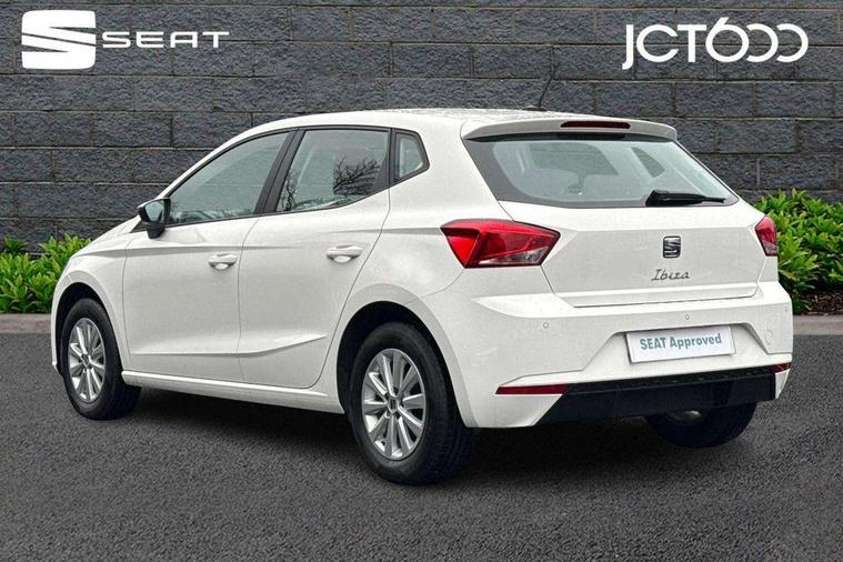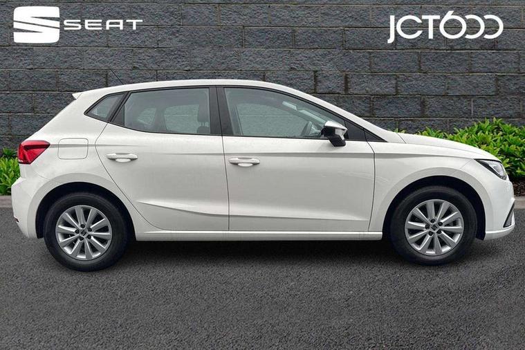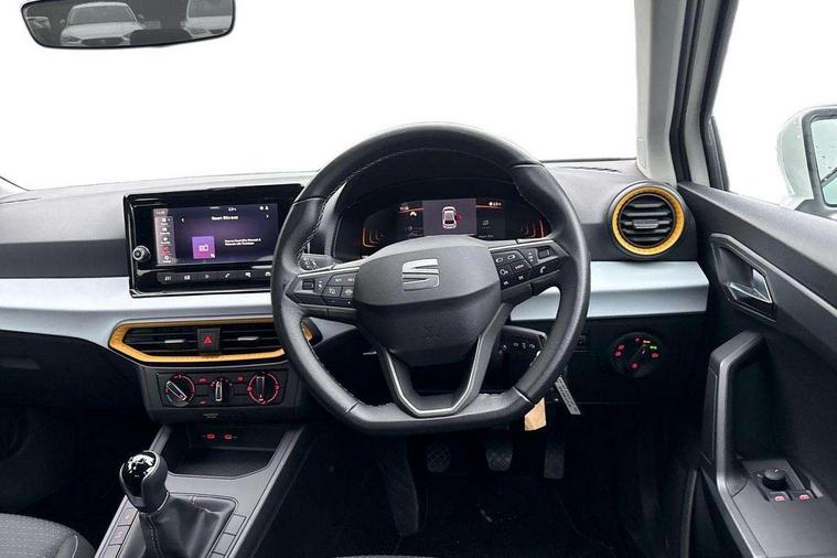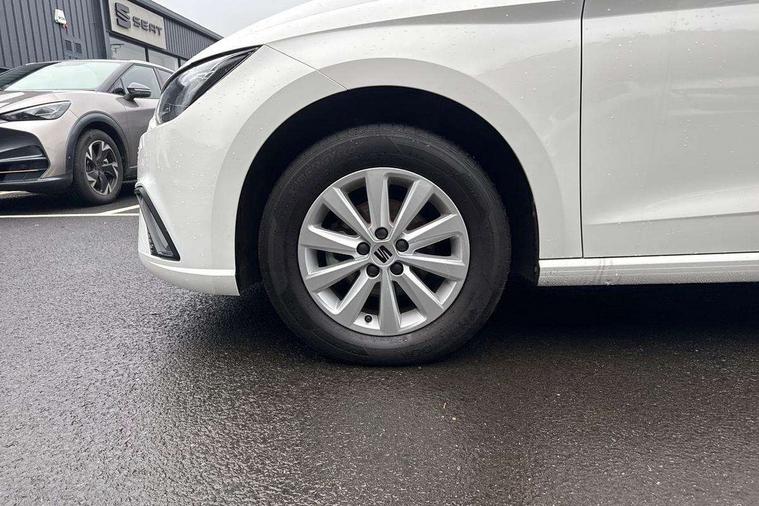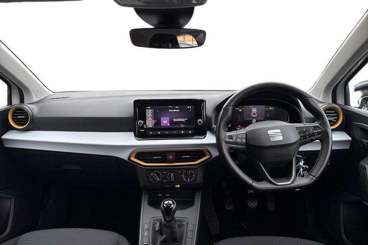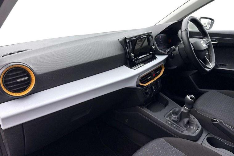 'Lights On' Reminder warning buzzer, 8" Digital cockpit, 8.25" touchscreen display with type C USB socket and DAB/AM/FM radio, Auto start and stop system, Bluetooth audio streaming with handsfree system, Cruise control, Digital clock, E-call, Full link smartphone integration with mirror link, wireless apple carplay, Google android auto + USB Type C cable for apple and android devices, Lane assist, Low fuel warning light, Outside temperature gauge, Power Steering, Rear parking sensor, Seat connect with safety, service and remote, SEAT logo boot release, Speed limiter, Traffic sign recognition, Trip computer, Comfort suspension, 6 speakers, Auxiliary input socket, Radio/MP3 player, Steering wheel mounted controls, Anti theft roof antenna, Body colour bumpers, Body colour door handles, Body colour door mirror caps, Dimming interior rear view mirror, ECO LED automatic headlights and LED daytime running lights, Electric front windows, Electric headlight adjustment, Electrically adjustable door mirrors, Front/rear fog lights, Halogen tailights, Rain sensor, Rear side wing doors, Rear wiper, Third brake light, 3 seat bench in 2nd row, 60/40 split folding rear seat, Air conditioning with dust and pollen filter, Chrome interior detailing and grey headlining, Cloth upholstery, Comfort seats, Front courtesy lights, Front cupholders x 2, Front reading lights, Gear shift indicator, Glovebox, Height adjustable front and rear headrests (five), Height adjustable front seats, Height/reach adjust steering wheel, Illuminated boot, Instrument lighting with brightness control, Isofix, Leather multifunction flat bottomed sports steering wheel, Passenger sunvisor, Single front passenger seat, Sunvisors with mirror and driver side card holder, Safety and driving pack (S) - Ibiza, 3 point seatbelts on all 3 rear seats, ABS, Active front headrests, Child locks on rear doors, Electronic stability control, Energy recovery system, Front assist forward collision warning and autonomous emergency braking, Front driver and passenger side airbags with curtain airbag and front passenger airbag deactivation, Hill hold control, Multi-Collision braking, Seat belt reminder for front and rear seats, Tiredness recognition system, Tyre pressure monitoring system, Locking wheel bolts, Remote central locking + deadlocks, 15" Enjoy alloy wheels in Brilliant silver,