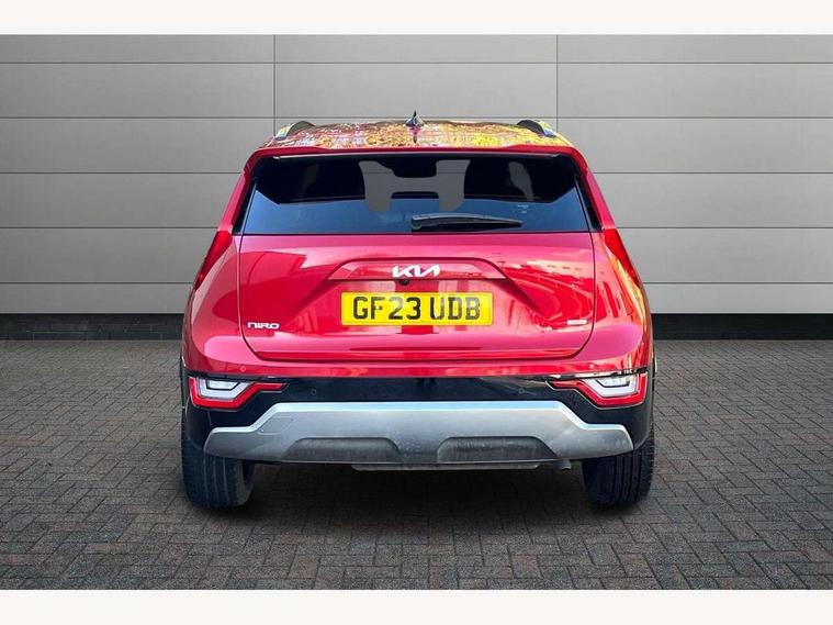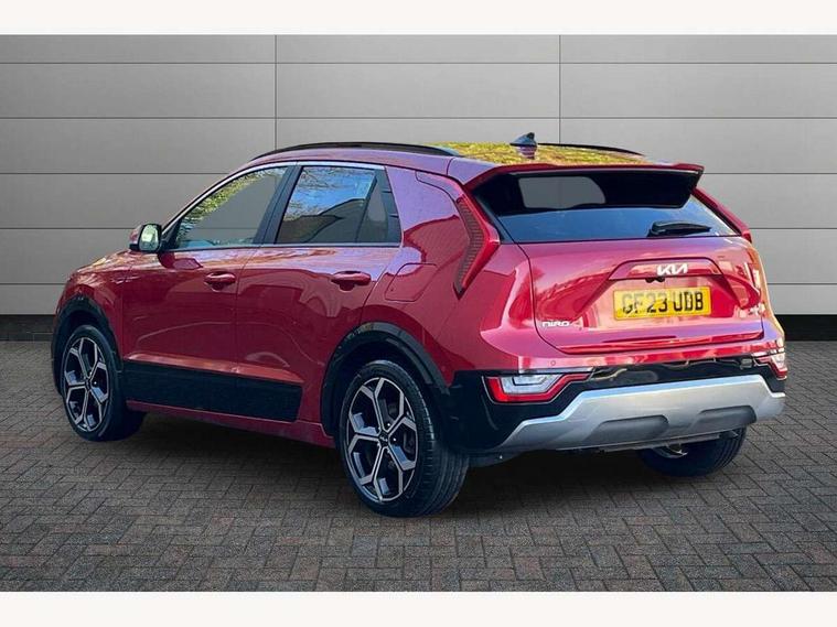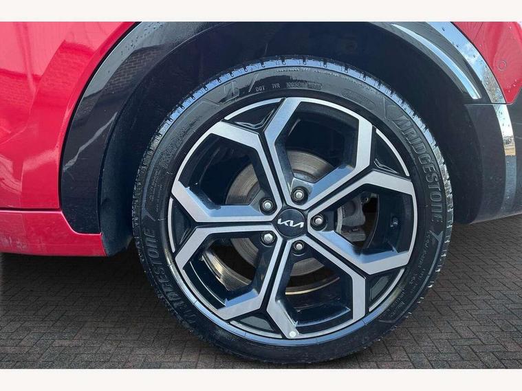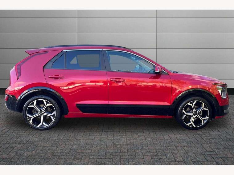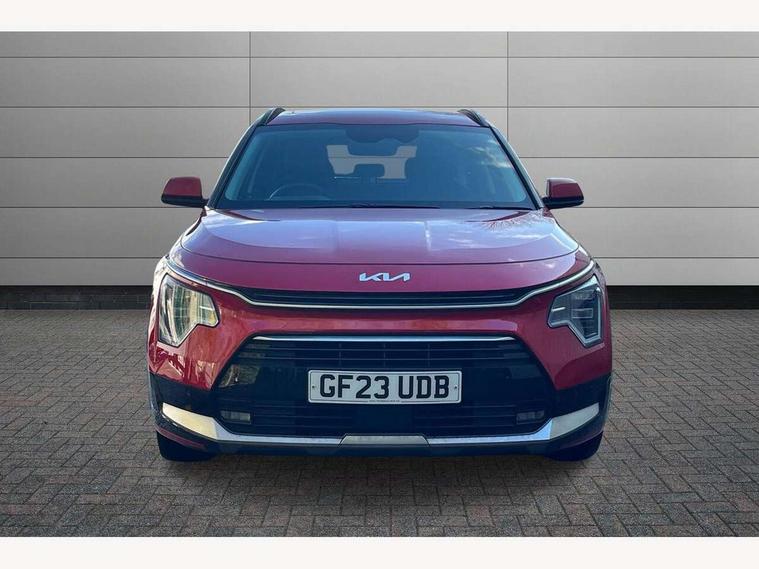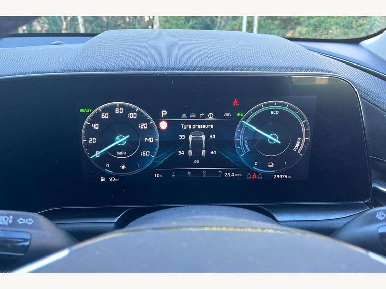 10.25" Supervision colour cluster display, 10.25" touchscreen satellite navigation, Adaptive smart cruise control function (SCC) with stop and go, Apple car play/Android Auto with voice control, Blind spot collision avoidance assist, Drive mode select (Eco, sport), E-call, Emergency stop signalling system, Forward Collision-Avoidance Assist (FCA) 1.5 - City/Pedestrian/Cyclist/Junction turning, Front parking sensors, Head up Display, Highway Driving Assist (HDA), Kia Connect (UVO), Lane Following Assist (LFA), Lane keep assist, Motor driven power steering, Parking collision avoidance assist (PCA), Power opening/closing tailgate, Rear cross traffic alert, Rear parking sensors, Remote smart parking assist, Reversing camera with dynamic guide lines, Safe exit warning (SEW), Speed limit assist, Trip computer with distance/fuel consumption/average speed, Wireless Smartphone charger, 220v AC Inverter, 'Shark fin' mobile antenna, 2 Front USB Charge port (one for C-type/one for USB), 2 type C USB ports on front seats, 6 speakers, Bluetooth with music streaming, DAB Digital radio, Steering wheel mounted controls, Acoustic windshield, All round electric windows with drivers and front passenger auto up/down and safety function, Auto dimming rear view mirror, Automatic defog system, Automatic headlight control system, Black grille with chrome surround, Body colour bumpers, Body colour exterior door handles, Deluxe door scuff plates, Dual LED headlights (low and high projection), Electric heated door mirrors, Electrically folding door mirrors, Front and rear chrome skid plates, Front fog lights, Heated rear window with timer, High gloss black cladding, High gloss black door mirrors, LED daytime running lights, LED rear combination lights, LED third brake light, One touch single tilting/sliding power sunroof, Privacy glass - Rear windows and tailgate, Rain sensing front wipers, Rear fog lights, Rear side wing doors, Rear spoiler, Rear wiper, Roof rails, Solar glass windscreen, Welcome and follow-me home light functionality, Windscreen Washer Level Warning, 12V socket in front, 12V socket in luggage compartment, 3 seat bench in 2nd row, 60:40 split remote folding rear seats, All-round height adjustable headrests, Aluminium pedals, Artificial leather centre console storage box, Artificial leather steering wheel, Centre console cupholder, Chrome coating interior door handles, Driver and front passenger power adjusted seat, Driver power adjusted memory seat, Driver/passenger sunvisors with illuminated vanity mirrors, Drivers seat power lumbar support, Dual zone automatic air conditioning, Front and rear door storage, Heated front seats, Heated outer rear seats, Heated steering wheel, Illuminated glovebox, Interior door lock/unlock function, ISOFIX Child seat top tethers and anchor fixings, LED overhead console, 2nd row and luggage lamp, Luggage area load cover, Luggage board, Paddle shifts, Passenger premium relaxation seat, Power adjustable lumbar support on front passenger seat, Rear armrest, Seatback pocket - driver, Seatback pocket - front passenger, Shift by wire SBW, Single front passenger seat, Tilt/telescopic adjustable steering wheel, Vegan leather upholstery, Ventilated front seats, Ventiliation ducts to rear compartment, Towing pack - Niro, 3 point seatbelts on all seats, ABS, Automatic unlocking of doors in case of impact, Centre side front airbags, Curtain and side airbags, Drivers knee airbag, Dual shell horn, Electric parking brake with auto hold function, Electronic stability control, Front passenger airbag deactivation, Height adjustable front seatbelts, Hill start assist control (HAC), Manual rear child locks, Rear seat alert system, Traction control, Tyre pressure monitoring system, Alarm system and engine immobiliser, Deadlocks, Engine Start/Stop Button with Smart Entry System, Locking wheel nuts, Visible vehicle identification number, Warranty - 7 Years/ 100, 000 miles, Centre fascia chopped carbon, 18" Alloy wheels, Tyre mobility kit,