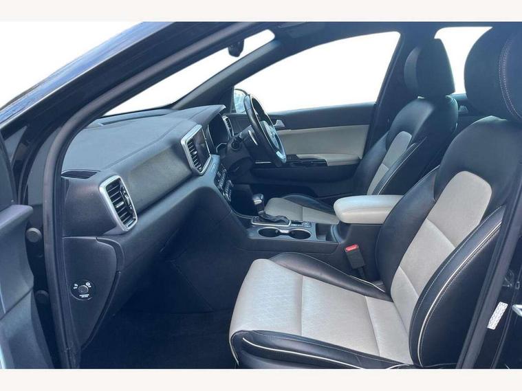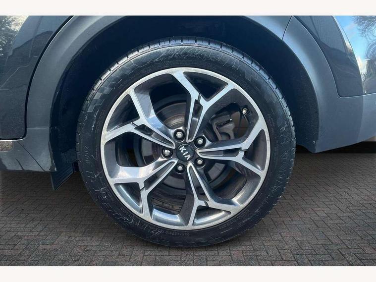 4.2" supervision colour cluster display, 8" touchscreen satellite navigation with European mapping and traffic messaging channel, Android auto with voice control, Apple car play with voice control, Cruise control + speed limiter, Drive mode selector, Driver attention warning, Emergency stop signalling system, Front parking sensor, Kia connected services featuring TomTom live, Lane keep assist, Rear parking sensor, Reversing camera, Speed limit information, Speed sensitive power steering, Telematics system with UVO connect services, Trip computer, Windscreen washer level indicator, Intelligent Stop and Go, 6 speaker audio system, Bluetooth audio streaming, DAB Radio with MP3, Rear USB port, Steering wheel mounted audio controls, USB/iPod/auxiliary input connections, All round electric windows with drivers auto up/down function, Auto dimming rear view mirror, Automatic lighting control, Automatic window defogger, Black wheel arch body mouldings and side sills with dark chrome insert, Body colour door handles with chrome inserts, Body colour door mirrors, Chrome window surround, Dark chrome front bumper insert, Dark chrome front grille surround, Electrically adjustable/heated/folding door mirrors with LED indicators, Front wiper de-icer, High beam assist, High gloss black blade mesh radiator grille, LED Bi-Function headlights, LED daytime running lights, LED ice cube front fog lights, LED rear lights, LED third brake light, Privacy glass - Rear windows and tailgate, Rain sensing front wipers, Rear spoiler, Rear wiper, Roof rails, Shark fin antenna, Silver painted front and rear skid plates, Tinted glass, Trailer stability assist, Welcome and follow-me home light functionality, Wide view drivers door mirror, 12V power in front and rear centre console, 3 x passenger assist grips, 60/40 split folding rear seat, Air filter, All-round height adjustable headrests, Aluminium door scuff plates, Aluminium pedals, Black headlining, Centre cabin light, Centre console storage box, Chrome boot sill guard, D-Shaped sports leather steering wheel and perforated inserts with GT-Line logo, Driver and front passenger side sunvisors with illuminated vanity mirrors, Driver's seat manual height adjust, Drivers seat power lumbar support, Dual zone automatic air conditioning, Front and rear door storage, Front cabin LED map light with sunglasses case, Front door courtesy reflectors, Front seat and rear pockets, Front/rear centre armrests, Gear shift indicator, Glovebox illumination, Heated front and outer rear seats, Interior door lock/unlock function, ISOFIX Child seat top tethers and anchor fixings outer rear seats, Leather trimmed door armrests, Leather trimmed gearshift, Luggage area light, Luggage area load cover, Luggage net with hooks, Paddle shift controls, Rear centre armrest with cupholder, Rear coat hooks, Satin chrome interior door handles, Tilt/telescopic adjustable steering wheel, Two tone leather upholstery, Ventilation ducts to rear compartment, Active front headrests, All round 3-point seatbelts, Anti-lock braking system with electronic brakeforce distribution, Dual front side airbags, Electronic parking brake, Electronic stability control with downhill brake control, Front passenger airbag cut-off switch, Front seatbelt pretensioners + load limiters, Height adjustable front seatbelts, Hill start assist control (HAC), Impact sensing auto door unlocking, Rear door child safety locks, Traction control, Twin curtain airbags with roll over sensor, Twin front airbags, Tyre pressure monitoring system, Advanced anti-theft system including immobiliser and alarm, Door deadlocks, Engine Start/Stop Button with Smart Entry System, Locking wheel nuts, Speed sensitive auto door locking, Visible vehicle identification number, High gloss black centre fascia, 19" alloy Wheels B-type, Tyre mobility kit,