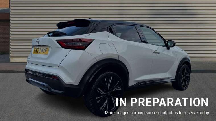 7" full colour TFT screen combimeter, Apple CarPlay and Google Android auto, Drive modes select (Eco, normal and sport), Emergency and breakdown call, Front parking sensor, Idle start/stop system, Intelligent lane intervention, Lane departure warning system, Nissan connect 8" touch screen entertainment system, Nissan connect nav with TomTom traffic, Nissan connect services and Wifi connection, Outside temperature sensor, Power Steering, Rear parking sensor, Traffic sign recognition, Trip computer, Voice recognition, Gasoline particulate filter, 10 Bose speakers 6 speakers and 2 headrest speakers for driver/passenger seats, Bluetooth system, USB, Aux-in and 12V socket, Bose personal sound stage control, DAB Digital radio, Rear console USB port, Auto dimming interior rear view mirror, Auto headlights, Automatic hazard signal with emergency stop signal, Body colour bumpers, Body colour door handles, Electrically adjustable door mirrors with integrated indicators, Follow me home headlights, Front and rear electric window with one touch driver window, Heated and auto folding door mirrors, High beam assist, LED daytime running lights, LED front fog lights, LED headlamps, LED rear fog lamp, LED rear lamps, Rain sensor windscreen wipers, Rear privacy glass, Rear side wing doors, Rear wiper, Satin silver front bumper finisher, Thermaclear heated windscreen, Three blink turn signal, 3 height adjustable rear headrests, 3 seat bench in 2nd row, 60/40 split folding rear seat, Automatic climate control, Card holder on driver sunvisor, Door ambient lighting, Driver and passenger sliding and reclining seats, Driver seat back pocket, Driver side rear coat hanger, Driver/passenger sunvisors and vanity mirrors, Front and rear cabin lights, Front armrest, Front door pockets with bottle holders, Front head restraints, Front passenger isofix child seat anchorage point, Front/rear passenger grab handles, Gear console ambient circle lighting, Grey synthetic leather kneepad, Heated front seats, Height adjustable driver's seat, Height adjustable passenger seat, Internal chrome door handles, Leather gearshift knob, Leather steering wheel, Luggage board, Luggage space lighting, Monoform sporty seats, Multifunction steering wheel, Passenger seat back pocket, Rear door bottle holders, Single front passenger seat, Telescopic steering wheel adjustment, Two cupholders in front centre console, Two rear isofix child seat anchorage points with top tether, Welcome light and console tray ambient lighting, Advanced safety shield pack - Juke, ABS with EBD and brake assist, Active ride control, Active Trace Control, Driver and passenger airbags, Driver and passenger side airbags, Electric handbrake with auto hold function, Electronic Stability Programme (ESP), Front and rear curtain airbags, Height adjustable seatbelts, Hill start assist, Intelligent emergency braking with pedestrian and cyclist recognition, Rear door child safety locks, Seatbelt reminder for driver/front passenger and rear seats, Single tone horn, Three 3 point rear seatbelts, Traction control, Tyre pressure monitoring system, VDC Dynamic Vehicle Control, Ventilated rear brake discs, Alarm, Immobiliser, Intelligent key and start push button with walk away lock and approach unlock functions, Remote central locking, 19" Akari alloy wheels,