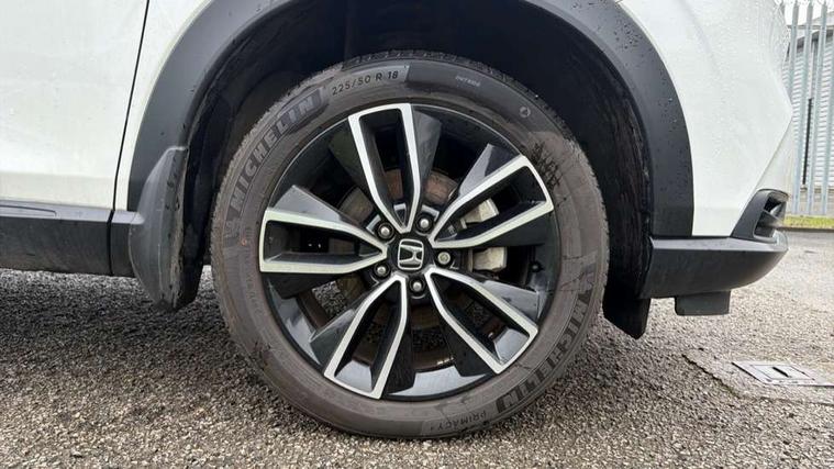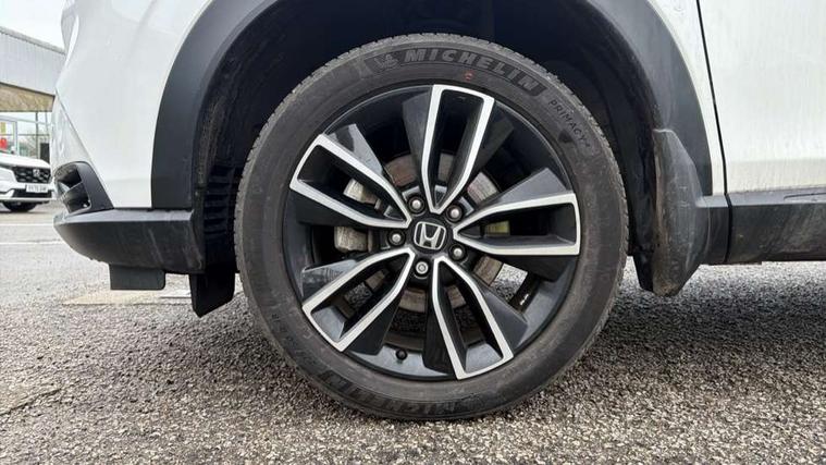 7" TFT instrument cluster, Adaptive cruise control, Adjustable speed limiter, Agile handling assist, Bluetooth hands free telephone connection, Drive modes select (Eco, normal and sport), eCall emergency system, Electric power steering, Emergency stop signalling system, Forward collision warning, Front parking sensors, Honda CONNECT with navigation, 9" touchscreen, AM/FM/DAB/Apple Carplay and android auto, Idle stop, Intelligent speed limiter, Lane departure warning, Lane keep assist, Low speed following, Multi info display, Power meter, Rear parking sensors and rear view camera, Road departure mitigation, Tachometer, Tailgate, Traffic sign recognition, WiFi connectivity, Vehicle stability assist, 'Shark fin' mobile antenna, 2x USB Front socket (1 data & 1 charge), 4 speakers, Steering wheel mounted remote controls, Auto folding door mirrors, Auto high beam, Automatic coming home lighting, Automatic headlights, Automatic rain sensing wipers, Body colour bumpers, Body colour tailgate spoiler, Body coloured door handles, Body coloured door mirrors, Body coloured front grille, Electric front and rear windows, Electrically adjustable and heated door mirrors, Exclusive styling in lower bumper non painting black, Fog garnish non paint gloss black, lower door garnish bumper skid garnish non paint silver, Front sequential turn, Headlight washers, Heated front windscreen, Heated rear window, High level third brake light, LED daytime running lights, LED headlamps, Low gloss window garnish, Manual headlight levelling, Rear side wing doors, Rear wiper, Red and clean lens LED rear lights, Variable front intermittent wipers, Windscreen shadeband, 3 rear headrests, 3 seat bench in 2nd row, 60/40 split folding rear seat, Ambient interior lighting, Automatic air conditioning, Cargo net hooks, Courtesy lights, Driver's seat height adjustment, Driver/passenger sunvisors with illuminated vanity mirrors, Front and rear map reading lights, Front head restraints, Front seat armrests, Heated front seats, Isofix points, Luggage area under floor storage box, Magic seat flexibility system, Manual height/reach adjust steering wheel, Meter illumination light, Paddle shift controls, Passenger seat back pocket, Rear centre armrest, Rear ventilation, Silver interior door handles, Single front passenger seat, Tonneau cover, Trunk light, 3x3 point rear seatbelts, ABS+EBD+Brake assist, Anti-whiplash front headrests, Auto hold function, Collision mitigation braking system, Collision mitigation throttle control, Deflation detection system, Dual front SRS airbags, Electric child locks, Electronic parking brake, Front and rear curtain airbags, Front and rear safety belts with Emergency Locking Retractor, Front side airbags, Hill descent control, Hill start assist, Low speed safety system, Paddle deceleration control, Passenger SRS airbag cut-off device, Regenerative braking system, Door deadlocks, Honda super locks, Immobiliser, Keyless smart entry with push button start, Remote central locking with 2 remote folding keys, Security alarm, Windows key fob operation, 18" Black cut alloy wheels, Tyre repair kit,