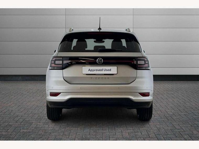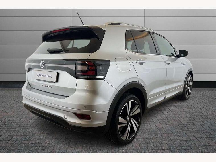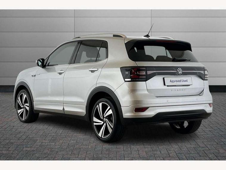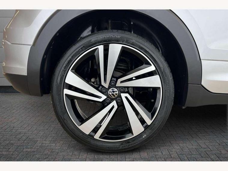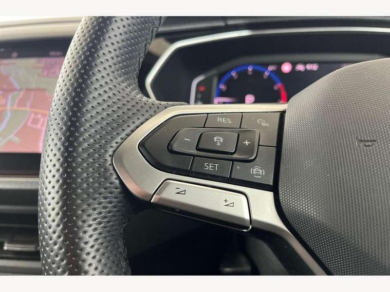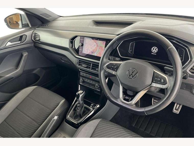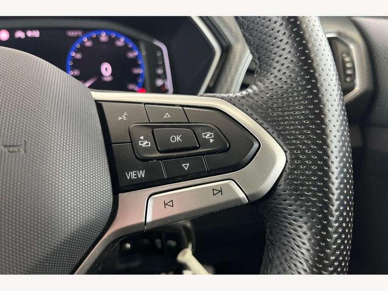 'Lights On' Reminder warning buzzer, 2D/3D map view, Adaptive cruise control including front assist, forward collision warning, autonomous emergency braking, speed limiter, Blind spot monitoring, Bluetooth telephone and audio connection for compatible devices, Car information display, Digital Cockpit Pro - Active info display, Driver alert system, eCall emergency call system, Lane assist, Low washer fluid warning light, Multifunction computer with visual gear change recommendation for fuel consumption, Operating permit alteration, Power assisted speed sensitive steering, Speed limit display, Speedo, rev counter, electronic odometer, trip, service interval display, exterior temperature and fuel gauge, Stop/start system, Warning sound and light for doors and tailgate open, Warning sound and light for front seatbelts unfastened, We connect plus preparation, Wireless Car net app connect with Apple CarPlay, combined functionality of Apple CarPlay/Android Auto and MirrorLink, Battery regeneration during braking, Misfuel prevention device, 2x USB connection with USB charging sockets and in rear centre console, DAB Digital radio receiver, Diversity antenna for FM reception, Multi device interface (MDI) with USB connection, Music playback - MP3, WMA and AAC files, Premium USB cable for Apple or Android smartphone compatibility, Simultaneous pairing of 2 compatible mobile devices, SMS Functionality, Three route options - Fast, Short, Eco, Title and cover art display, Automatic hazard lights activation under emergency braking, Body colour door handles, Body colour rear roof spoiler, Body coloured bumpers, Dusk sensor + automatic driving lights, Electrically foldable, adjustable and heated door mirrors with reverse activated kerb view adjustment on passenger's side, Front and rear electric windows, Front fog lights with static cornering function, Galvanised body, Heated rear window, High level 3rd brake light, Lower door sills and door pillars in black, Radiator grille with chrome trim and chrome bezel front fog lamp, Rear fog light on one side, reversing light on both sides, Rear lights incorporating LED technology, Rear tinted glass 65% approx light absorbing from B pillar backwards, Rear window aerial, Rear windscreen washer and wiper with interval delay, Reflectors in all doors, Silver roof rails, Stainless steel door sill protection, Tailgate with integrated roof spoiler, Unique R Line badging, Windscreen wipers/ intermittent wipe + 4 position delay, 12V Accessory socket in centre console, 2 Front and rear reading lights incorporating LED technology, 2 Zone electronic climate control with automatic air recirculation, 3 rear head restraints and 3 rear three point seat belts with ECE label, 60/40 split folding rear seat backrest, Ambient lighting and sourround lighting, Black headlining, Branded points of interest, Brushed stainless steel pedals, Carbon flag cloth upholstery, Drawer under drivers seat, Driver and front passenger sunvisor with vanity mirror, Driver's sunvisor with ticket holder, Dust and pollen filter, Front and rear carpet mats with contrast stitching, Front centre armrest with storage compartment, Front footwell illumination, Front seat back storage pockets, Front seat R Line logo with rear seat backrest, Front sports seat with height and lumbar adjustment, Glovebox, Heating and fresh air system with 4 stage blower, Height/reach adjust steering wheel, Instrument lighting white adjustable panel illumination, Interior light with delay, Isofix child seat preparation for 2 rear child seats, Leather trimmed three spoke multifunction steering wheel with contrast stitching and aluminium inserts with R Line logo, Luggage compartment cover, Luggage compartment lighting, Moveable and foldable Rear bench seat, Scuff plates in door apertures, Steering wheel paddle shift, Storage compartment in drivers and front passengers door, Variable boot floor, R Line styling pack - T-cross, Anti-lock Braking System (ABS) with Hydraulic Brake Assist (HBA), Automatic post collision braking system, Driver and front passenger safety-optimised head restraints, Drivers and Front Passengers airbags with front passengers airbag deactivation switch, ESC with EDL, ASR, EDTC and trailer stabilisation function, Extended and proactive pedestrian protection, Front and rear curtain airbags, Front seat side impact airbags, Height adjustable 3 point automatic front seatbelts with pretensioners, Hill start assist, Pre crash preventive occupant protection, Rigid safety cell with front and rear crumple zones, Single torn horn, Tyre pressure loss indicator, Volkswagen roadside assistance, Alarm with interior protection and deactivation via infotainment system, Child security locks in rear doors, Electronic engine immobiliser, Remote tailgate unlocking using key fob, Race decorative inserts in dash and doors, 18" Nevada black alloy wheels, Breakdown kit,