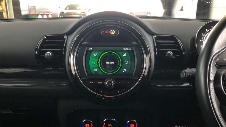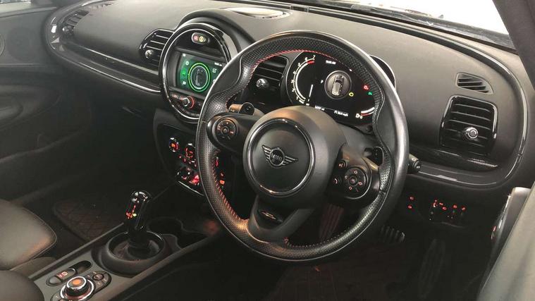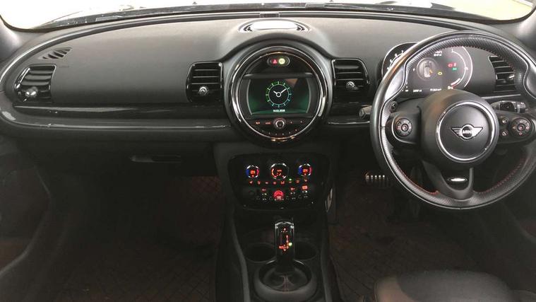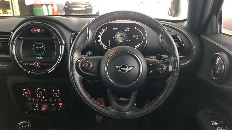 Active Guard incl speed limiting and lane departure functions with auto steering, and front collision warning with brake intervention, Automatic start/stop function with brake energy recuperation, Compatible mobile phone bluetooth with audio streaming, Digital cockpit, Electro-mechanical speed dependant steering assistance, Instrument cluster, Mini E-call, MINI TeleServices, On board computer, Rear parking distance control, Double Vanos system, Fully variable valve control, High precision injection, Performance Control, Steptronic sport transmission with double clutch and steering wheel paddles, FM tuner and DAB digital radio, Bonnet scoop, Chrome fuel filler cap, Dynamic brake lights, Electric windows, Heated rear window, Heated windscreen washer jets, John Cooper Works - aerodynamic kit (front and rear apron, spoiler), front and rear sport bumpers and part-painted side sills with door sill finishers, John Cooper Works rear spoiler, LED headlights with closed ring as daytime driving lights, LED rear light with union jack design, Metal door sill strips with Cooper S imprint, Model logo, Model logo on rear doors, Radiator grille, Rain sensor with auto headlights, Rear fog lights, Rear window wiper, Side scuttle panel with integrated indicator, Split rear doors, Sun/heat protection glass, Twin exhaust tailpipe, White indicator lenses, 12V Accessory socket in centre console, 360L luggage compartment capacity, 4 lashing eyes in luggage compartment, 60/40 split folding rear seat, Anthracite headlining with grab handles and clothes hooks, Chrome interior highlights, Cupholders, English handbook, Glove compartment, Height and length steering column adjustment, Interior lighting with 12 basic colours selectable via toggle switch in roof, Isofix rear child seat preparation, John Cooper Works perforated leather steering wheel with contrast stitching in chilli red and John Cooper Works logo, John Cooper Works sports seat with integrated headrest, adjustable thigh support and John Cooper Works logo, Leather gearshift lever and handbrake gaiters, LED reading lights, vanity mirror lights, front foot well light and spotlight on front seats, Manual air conditioning, Multifunction steering wheel, Storage compartments in doors, Sunvisors with vanity mirrors, Toolkit, Excitement pack - Clubman, Navigation pack - Clubman, 2 tone horn, 3 point seatbelts on all seats, 6 Airbags - front, side, head and seat belt tensioners, Anti-lock braking system (ABS), DSC - Dynamic Stability Control, Electronic handbrake, Front and rear disc brakes, Tyre pressure monitoring system, Alarm system with tilt sensor, monitoring doors, bonnet interior and tailgate, Auto drive away locking, Deadlocking function, Electronic vehicle immobiliser, Locking wheel bolts, Start/stop toggle with keyless go,