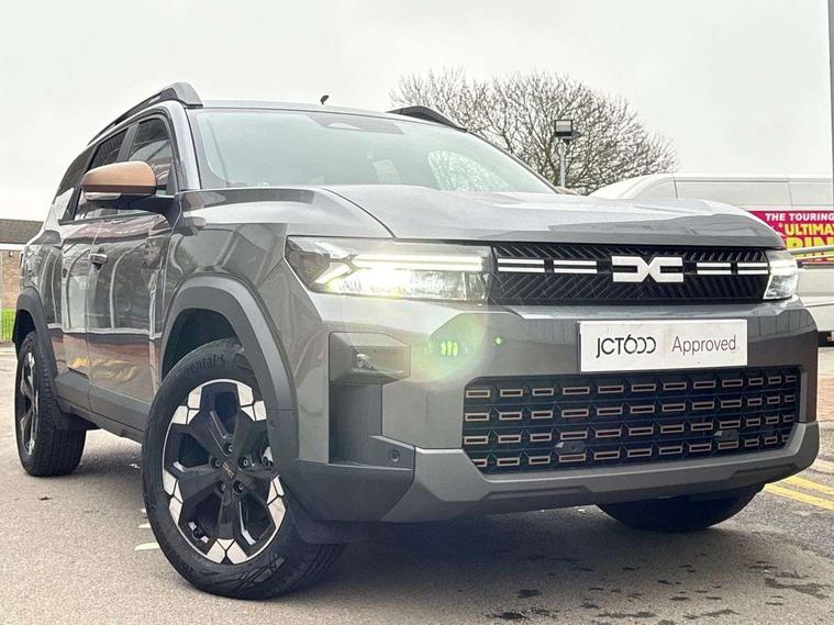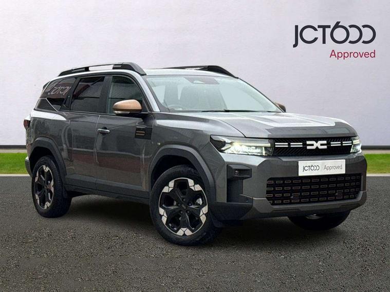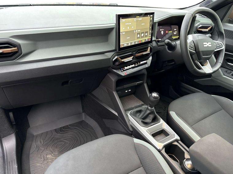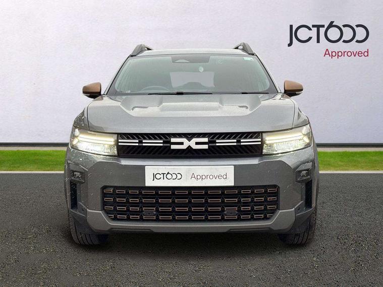 10" Digital Cluster, 10" digital driver display, ADAS Disconnect (advance driving systems disconnect) - My Safety, Apple CarPlay and Android Auto, Blind spot warning, Cruise control and speed limiter, Driver attention warning, eCall emergency system, Eco mode, Electric power assisted steering, Emergency Stop Signal (ESS), Energy smart management, Event data recoder, Forward collision warning, Front and rear parking sensors, Lane departure warning with lane keep assist, Multi view camera, Rescue code, Stop/start system, Traffic sign recognition with speed alert/Intelligent speed assist (ISA), Wireless phone charger, 10.1" media nav live with connected navigation, DAB, smartphone replication, bluetooth, connected services, USB-C plug (front and rear), plus app store, Arkamis sound system with 6 speakers, Auto lighting system, Automatic wipers, Black with white trim radiator grille, Body coloured door handles, Copper rear Dacia lettering, Copper Y-Shaped air vents inserts, Dark glass, ECO LED Front foglights, Electric adjustable/heated door mirrors, Electric front windows with driver's one touch operation, Electric rear windows, Front and rear body coloured bumpers, Grey modular roof bars, Heated rear windows with wash wipe, High beam assist, High level third rear brake light, LED automatic daytime running lights, Panoramic opening sunroof, Privacy rear window, Rain sensor, Rear side wing doors, Shark fin antenna, Side protection, Tinted acoustic windshield, Turning signal integrated in door mirrors, Wheel arch protection and snorkel in starkle, Y-shaped LED lighting signature, 3 rear height adjustable headrests, 3 seat bench in 2nd row, 4 way adjustable front passenger seat, 40/20/40 rear bench with an easy fold function, 6 way adjustable driver seat, Central armrest, Dual zone automatic air conditioning, False floor, Front and rear rubber floor mats, Front head restraints, Gear shift indicator, Grey gear lever deco part, Heated front seats, Heated steering wheel, Height adjustable front headrests, Height and depth adjustable steering wheel, Isofix points for child seats in both outer rear seats, MicroCloud fabric washable TEP upholstery, Mid centre console micro cloud with soft feel, Rear 12v plug in boot, Removable parcel shelf, Rubber reversible boot mat, Single front passenger seat, Sunvisor for driver and passenger with mirror/ticket holder and light, Synthetic leather steering wheel, White steering wheel logo, 3x3 point rear seatbelts, 6 airbags - front and side driver and passengers including curtain airbags, ABS and Emergency brake assist, Advanced emergency braking system, Alcohol imoboliser predisposal, Child locks on rear doors, Door open visual and audible warning, Driver and passenger seatbelt warning, Electric parking brake, Front seatbelt pretensioners, Height adjustable front seatbelts, Hill start assist, Protective rear brake disc, Side impact protection, Tyre pressure monitor, Vehicle dynamic control, Automatic central locking, Central door locking, Engine immobiliser, Keyless entry, Cast forming khaki dashboard decopart, Cast forming khaki door deco part, 18" Diamond cut tagasan black alloy wheels, Copper brown centre caps,