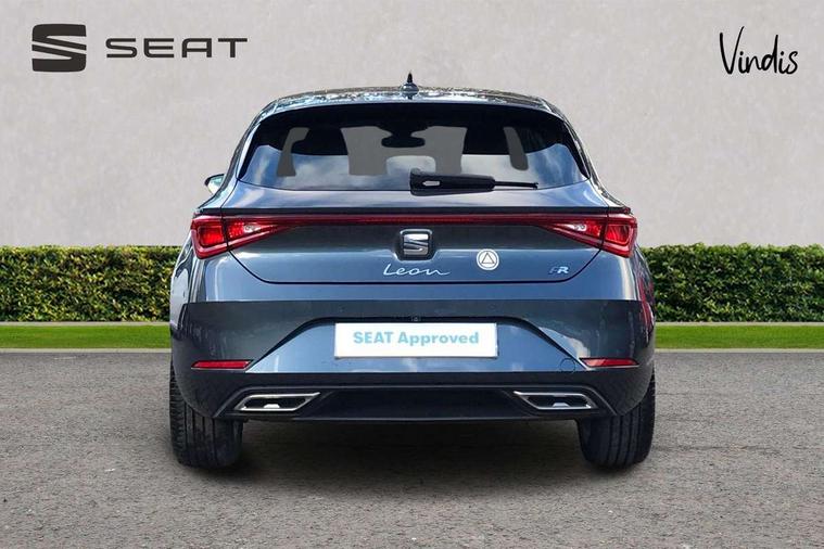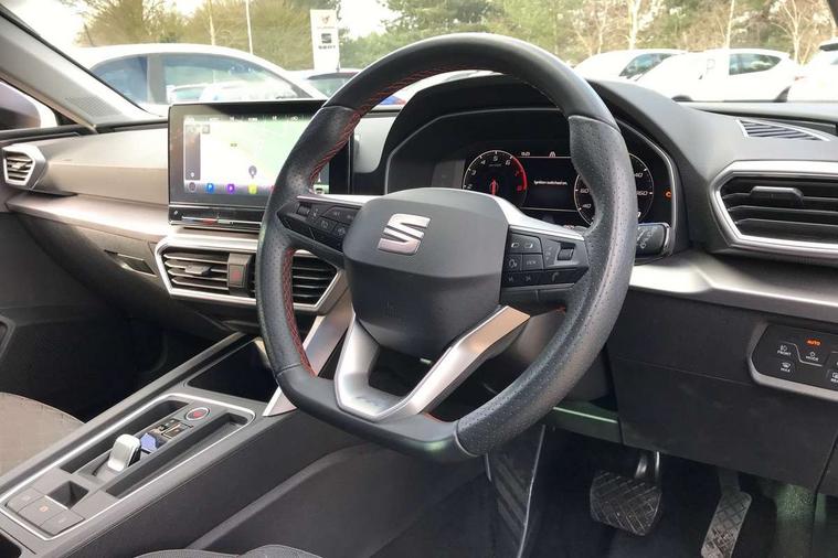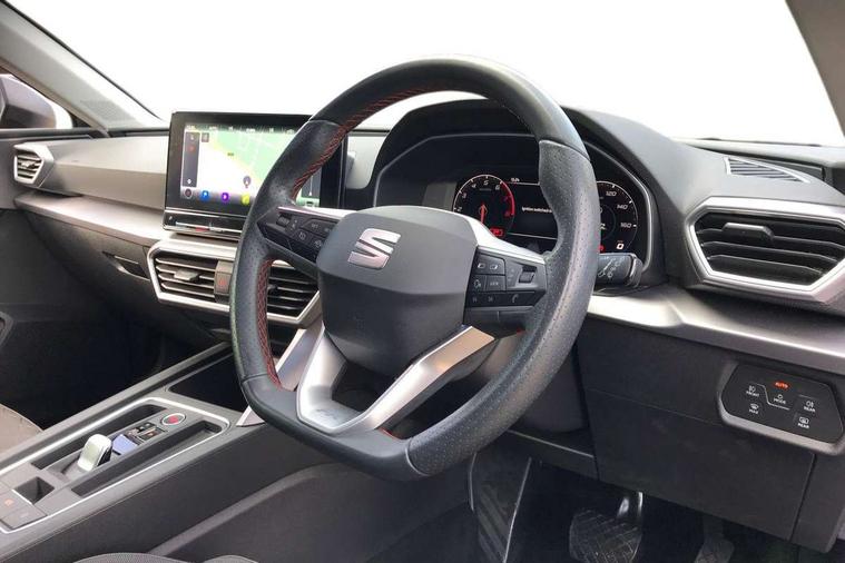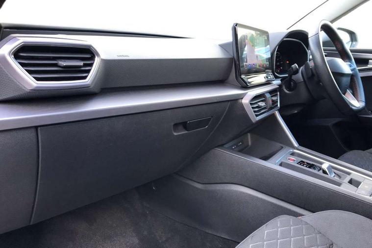 Digital cockpit, E-call, Front assist with forward collision warning braking reaction to vehicles, pedestrians and cyclists, Full link smartphone integration with Mirror Link, wireless Apple CarPlay and wired Google Android Auto, Lane assist, Lockable tailgate, Park assist (inc front/rear parking sensors), Power assisted speed sensitive electro-mechanical steering, Rear view camera, RPM, trip computer, outside temp gauge, instrument light brightness, low fuel warning light, lights on reminder, gearshift indicator, SEAT drive profile with 4 modes (Eco/Normal/Sport/Individual), throttle response and gearshift mode, Service interval indicator, Start/stop system with regenerative braking, Sports suspension, XDS electronic differential lock and dynamic traction support, 7 speakers, Auxiliary input socket, Auto dimming rear view mirror, Body colour door handles, Body coloured bumpers, Cosmo grey exterior mirrors with integrated LED indicators, Dark tinted rear windows, Dynamic headlight range control, Electric front/rear windows, Electrically adjustable, heated and folding door mirrors, FR sports bumper, Illuminated front door sill, LED front fog lamps, LED Headlights with dynamic turn signals, LED tail lights and rear fog lights with rear coast to coast lighting, Rear side wing doors, Rear wash/wipe, Separate daytime running light with automatic headlight control and coming home feature, Third brake light, Welcome light silhouette from exterior mirrors, Windshield wiper intermittent control with light/rain sensor, 12v power point in centre console, 3 seat bench in 2nd row, 60/40 split rear bench seat with armrest, Ambient lighting with glovebox, footwell and single monocolour, Driver/passenger manual seat height adjustment, Dust/pollen filter, Folding boot cover, Four x USB Type C ports, Front and rear height adjustable headrests, Front and rear reading lights X 4, Front centre armrest, Front seatback storage pockets, Height/reach adjust steering wheel, ISOFIX points in outer rear seats with top tether anchorage points, Luggage tie-down hooks, Lumbar adjustment for front seats, Single front passenger seat, Sunvisors with covered illuminated mirror, Three zone climate control, Two tone cloth upholstery, Media system plus with navigation - Leon, 3 point seatbelts on all rear seats, ABS, Brake control system - ESC and brake booster, Child proof door locks, Driver and front passenger airbags with front passenger airbag de-activation, front side and curtain airbags, Electronic parking brake, Extended safety system - seat belt tensioner, window closure and hazard lights, Hill hold control, Rear disc brakes, Seat belt reminder for front and rear seats, Tiredness recognition system, driver alert system, Tyre pressure monitoring system, Anti theft alarm system with interior monitoring in cab, backup horn and towing protection, KESSY Go (Keyless start), Locking wheel bolts, Wireless phone charging, Chrome interior detailing, 17" Dynamic Bi-spoke alloy wheels with 91W tyres, Tool kit,
