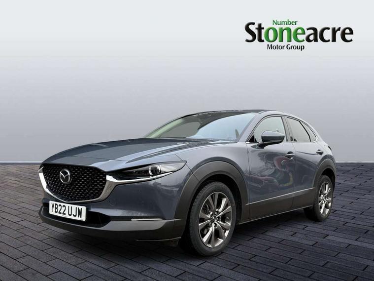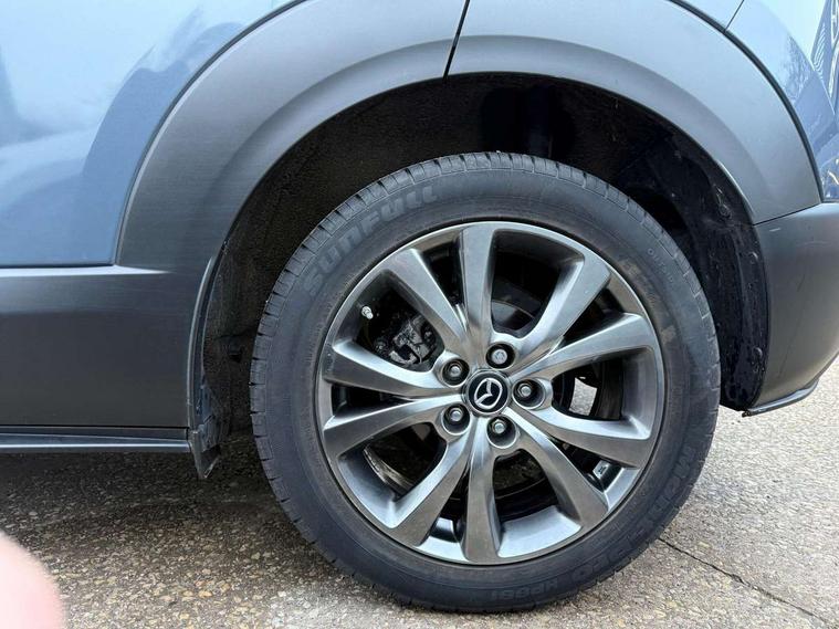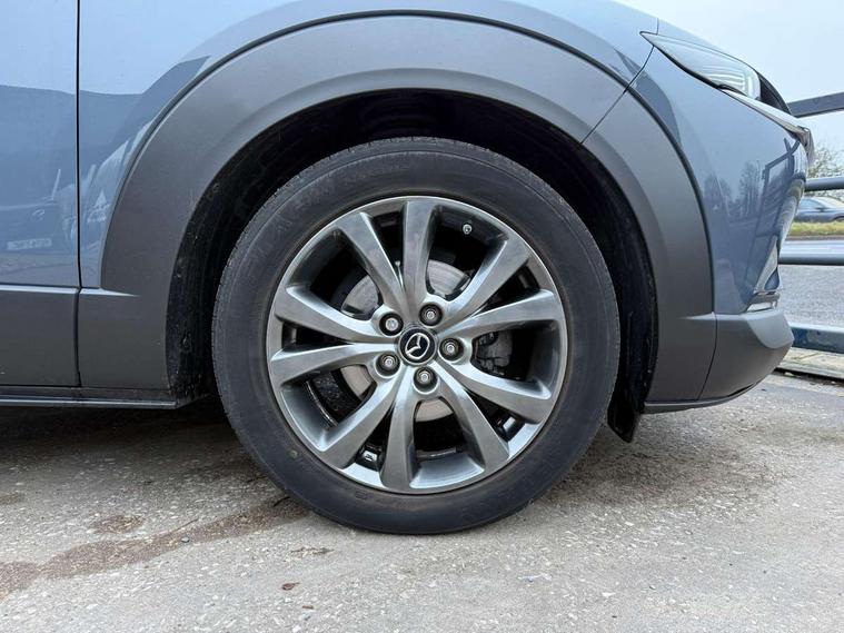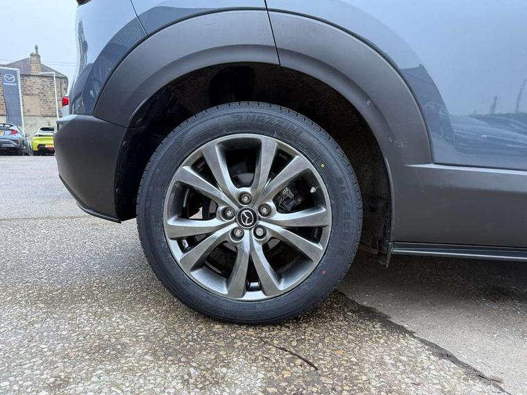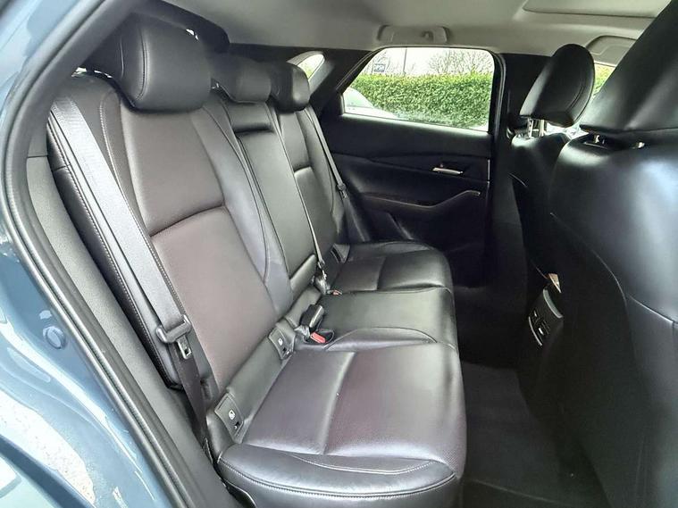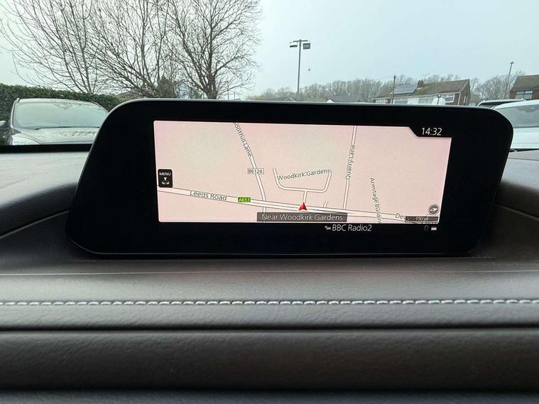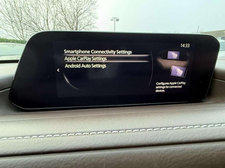 7" TFT Colour driver instrument panel display, 8.8" Colour centre touch screen display with Mazda Connect infotainment, Adaptive cruise control (Mazda radar cruise control), Apple car play/Android Auto, Blind spot monitoring with rear cross traffic alert, Driver attention alert system, E-call with GPS, Emergency stop signalling system, Engine start/stop button, Front and rear parking sensors, Integrated bluetooth, Integrated Mazda navigation system, Intelligent speed assist, Lane keep assist system (LAS) with Lane departure warning system (LDWS), Mazda connected services, PAS, Power lift gate, Reversing camera, Service indicator, Tailgate, Traffic sign recognition, Trip computer, Windscreen projected colour active driving display (HUD), i-stop, 2 USB charging ports in front inner central armrest, AM/FM and DAB radio, Bose surround sound system with 12 Speaker, Bose center point, Bass match and audio pilot technology, Multimedia Commander including separate volume dial, Steering wheel mounted audio/bluetooth controls, Adaptive LED Headlights, Auto dimming driver's door mirror, Auto headlight levelling, B-pillar and C-pillar garnishes in piano black finish, Body coloured, electrically adjustable, heated auto power folding door mirrors with integrated indicators, Chrome finish signature wing in front grille, Coming/leaving home lighting function, Door mirrors with adjustable memory and tilt-down function when reversing, Dual chrome exhaust, Dusk sensing headlights, Electric front/rear windows with one touch auto up/down, Frameless auto dimming interior rear view mirror, Front kodo turn signal, Gloss black front grille, Gloss black rear roof spoiler, High beam assist, LED signature daytime running lights, Power tilt/slide sunroof, Privacy glass (rear side windows and rear screen), Rain sensing front wipers with adjustable speed and intermittent wipe, Rear fog lights, Rear side wing doors, Rear wiper, Signature LED rear combination lights, Third brake light, 12V power outlet in centre console, 3 seat bench in 2nd row, 60/40 split fold down rear seats, Chrome horn pad ring, Chrome interior trim accents with steering wheel centre bezel, surround of engine start / stop button and glove box handle, Dashboard, door cards and front centre armrest in rich brown leather, Driver and front passenger visors with covered vanity mirror and driver ticket holder, Driver's seat, power tilt, slide, recline, height and lumbar adjustment, Driver, front passenger and two rear door storage, Driver, Front passenger and two rear grab handles with coathooks, Dual zone climate control air conditioning with rear air vents, Folding rear centre armrest with two cup holders, Front and rear (x3) head restraints, Front and rear LED lighting, Front armrest, Front centre storage with two cupholders with lid, Front passenger seatback pockets, Front passengers seat manual slide, recline and height adjustment, Gear shift indicator, Glovebox illumination, Heated front seats with 3 stage setting, Heated steering wheel, ISOFIX child seat anchorage points attached on outer rear seats, Leather upholstery with interior accents, Leather wrapped gear shift knob, Leather wrapped steering wheel with telescopic and tilt adjustment, LED luggage compartment lighting, Light roof headlining and pillars, Rear armrest inner material in cloth, Roof mounted sunglasses holder, Single front passenger seat, 3 point ELR front seat belts x2 with pretensioners, 3 point ELR rear seat belts, Anti-lock braking system (ABS), Drivers knee airbag, DSC - Dynamic Stability Control, Electronic parking brake with auto disengage function and auto hold function, Front and rear curtain airbags, Front dual stage driver and single stage front passenger airbags, Front passenger airbag cut-off switch, Front side airbags, Front smart city brake support, G-Vectoring control plus, Hill launch assist, Manual child lock in rear doors, Mild Hybrid system with regenerative braking, Seatbelt reminder for driver/front passenger and rear seats, Traction control system (TCS), Tyre pressure monitoring system (TPMS), Remote central locking with deadlocking and automatic door lock when driving, Smart keyless entry, Thatcham accredited alarm and immobiliser, Dark vinyl door panel inserts, 18" Bright alloy wheels, Emergency tyre repair kit,