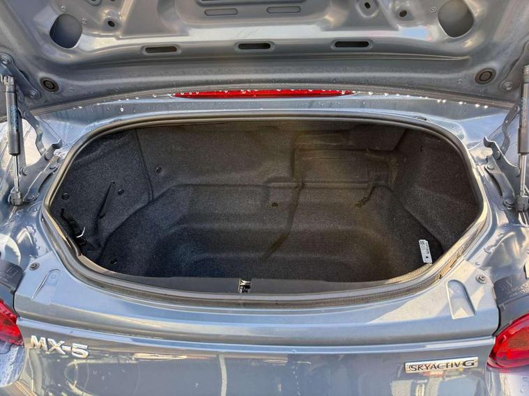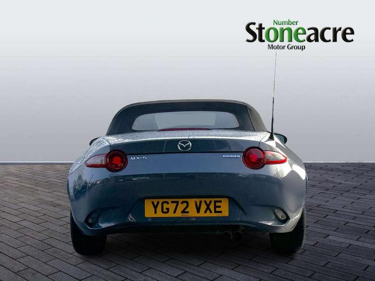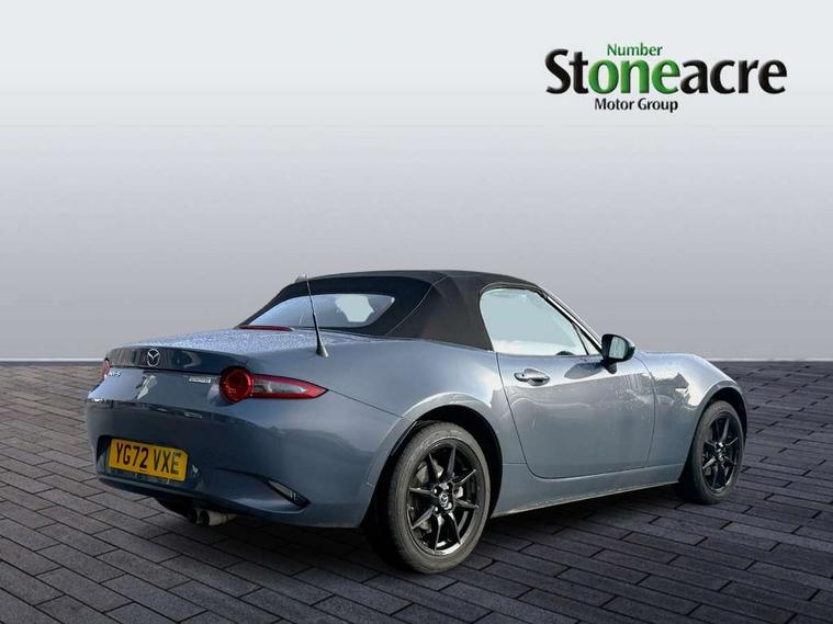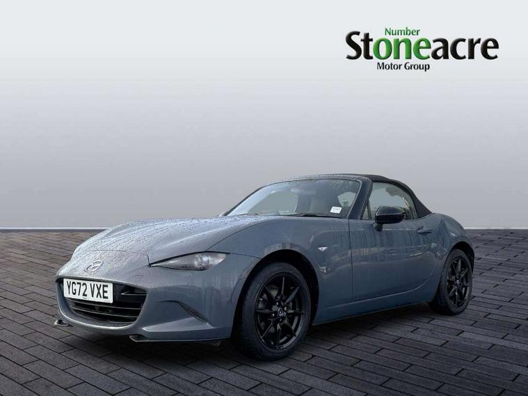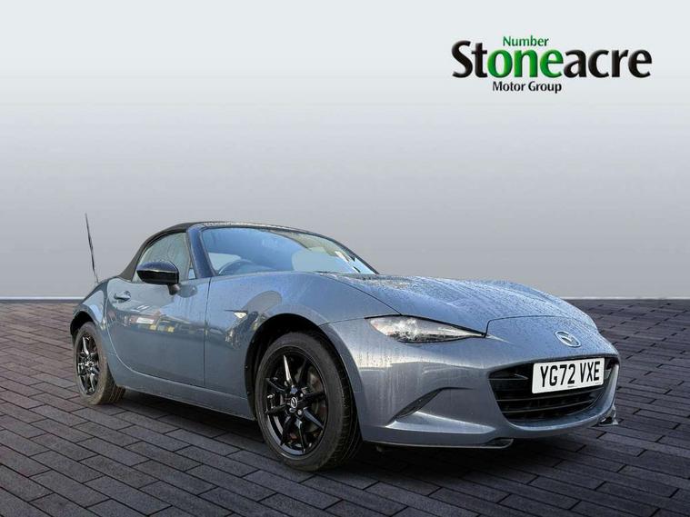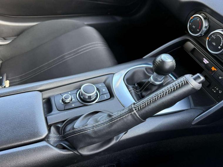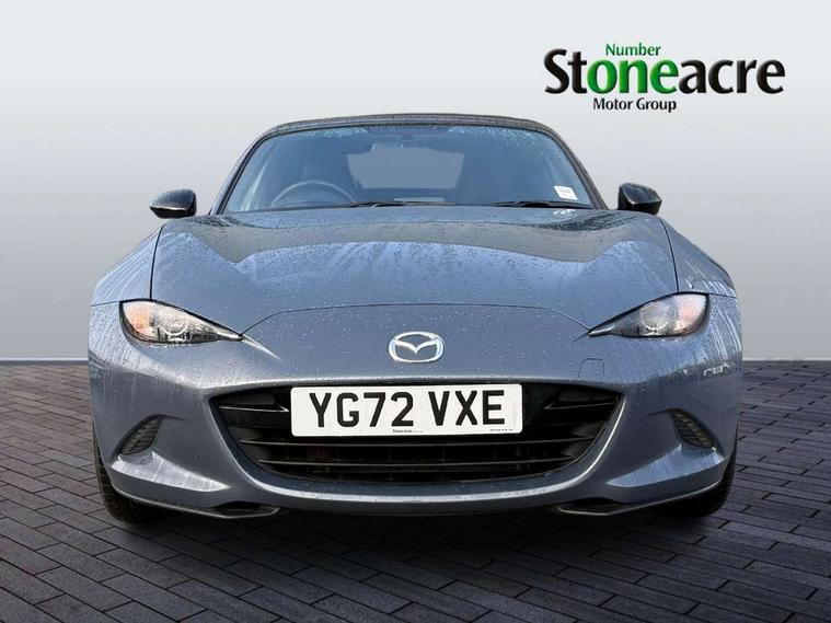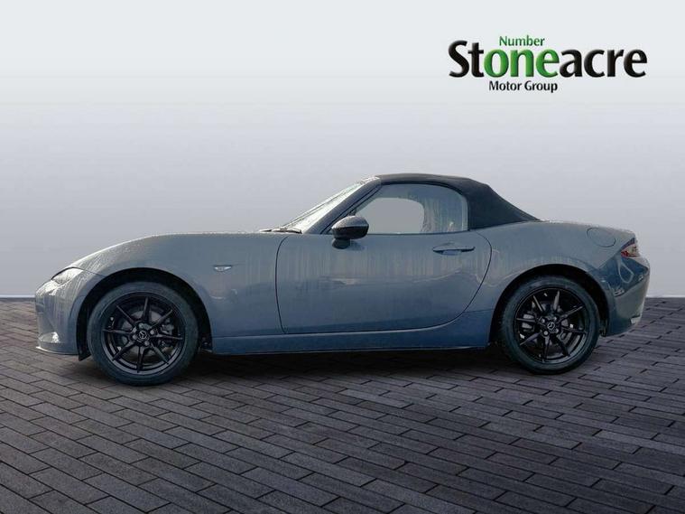 7" colour touch screen with Mazda connect infotainment, Aha and stitcher app, Analogue speedometer, Apple car play/Android Auto, Cruise control + speed limiter, eCall emergency call system, Electronic odometer, Emergency stop signalling system, Engine start/stop button, Hands free phone preparation, Integrated bluetooth with hands-free calling, bluetooth audio and easy access to phone contacts, Integrated navigation system, PAS, Service indicator, Tachometer, Trip computer, Water temperature gauge, I-ELOOP, i-stop, 2 USB/aux input socket, Audio system with 6 speakers with 2 in driver headrest, AM/FM/DAB radio and MP3, Multimedia Commander including separate volume dial, Steering wheel mounted audio/bluetooth controls, Automatic headlamp levelling, Body colour bumpers, Body colour co ordinated interior upper door trim, Coming/leaving home lighting function, Dual exhaust pipes, Electric front windows/one touch facility, Front intermittent wipers, High mounted rear brake light with Black coloured cover, LED 3rd brake light, LED daytime running lights, LED Headlights, LED indicator lights, LED rear lights, Manually operated black premium cloth soft top with heated rear glass window, Piano black electric/heated door mirrors, Piano Black fashion bars, Plastic black scuff plates, Rear boot, 12V socket, Centre console storage box, Chrome Air conditioning dials, Climate control air conditioning, Cloth upholstery, Coin Box, Driver and front passenger sunvisors with covered vanity mirror and driver ticket holder, Driver seat manual slide, recline and tilt adjustment, Front centre armrest, Front head restraints, Gear shift indicator, Heated front seats, in 3 heat levels, Interior courtesy light, ISOFIX front passenger seat child seat compliance, Leather gear knob, Leather handbrake lever, Leather steering wheel, Lockable rear centre box with lid, Passenger seat + manual slide/recline adjust, Side door trim in black vinyl with silver stitching, Single front passenger seat, Sports seats, Tilt/telescopic steering column, Two cupholders, Windblocker, 3 point ELR front seatbelts with pretensioners, ABS+Electronic Brake force Distribution, Deployable Hood System (DHS), Driver and front passenger airbags, Driver and passenger seatbelt reminder audible warning, Front dynamic yaw stability control, Hill hold assist, Passenger airbag deactivate switch, Side airbags, Traction control, Tyre pressure monitor, Remote central locking with deadlocking and remote boot release, Superlocking, Thatcham category 1 alarm + immobiliser, Black air vent surround, Black dash trim, Chrome meter rings, 16" black metallic alloy wheels, Tyre puncture repair kit,